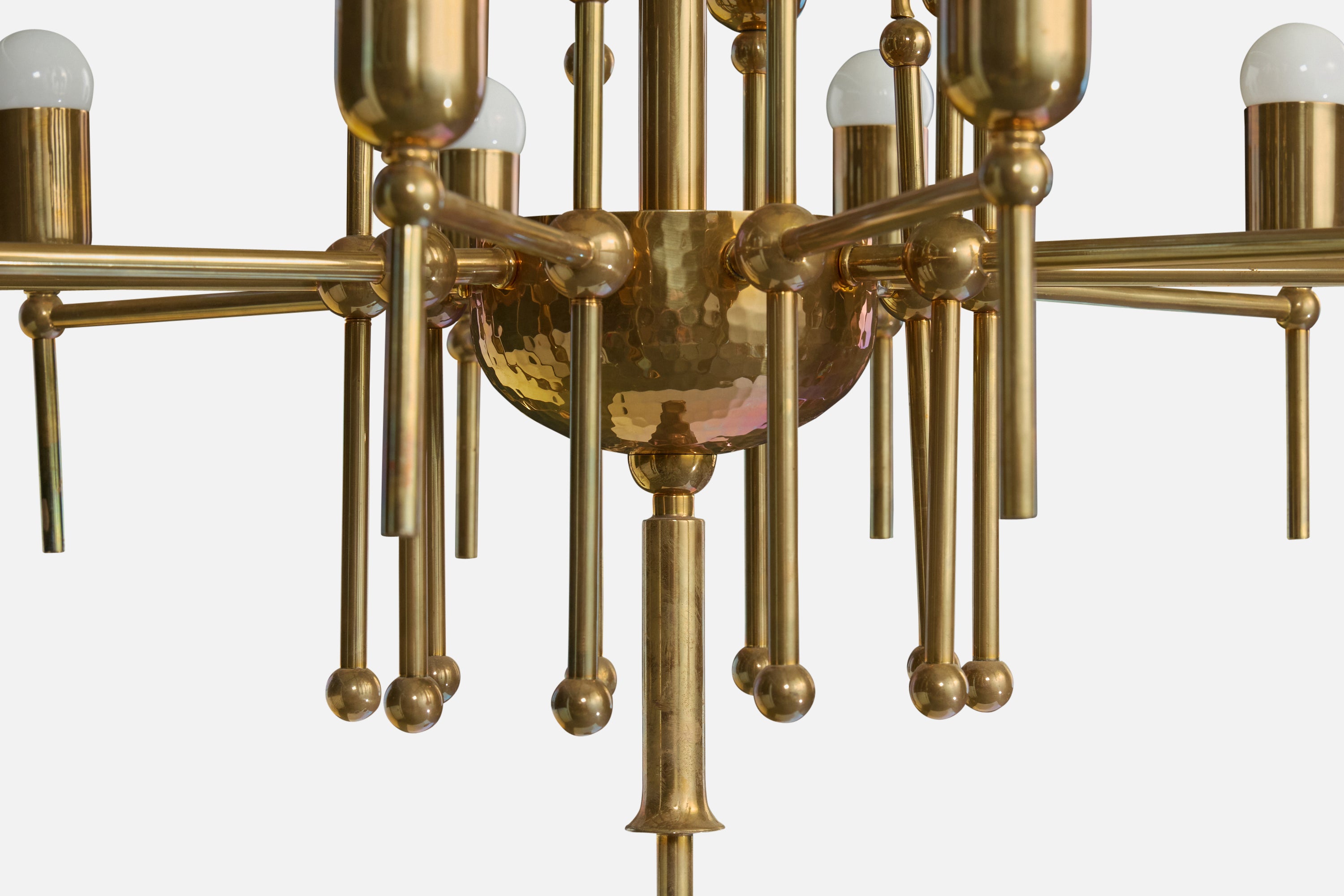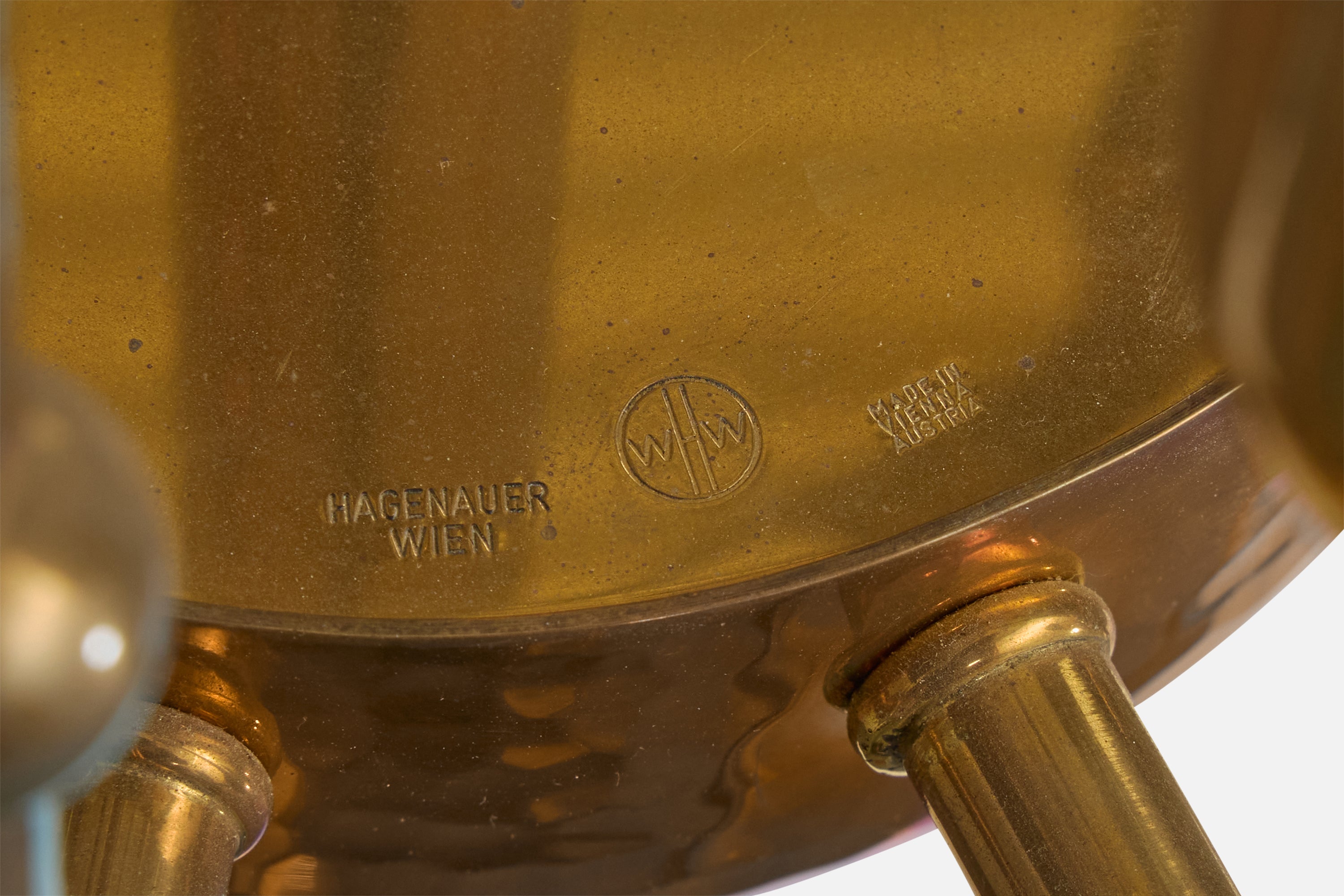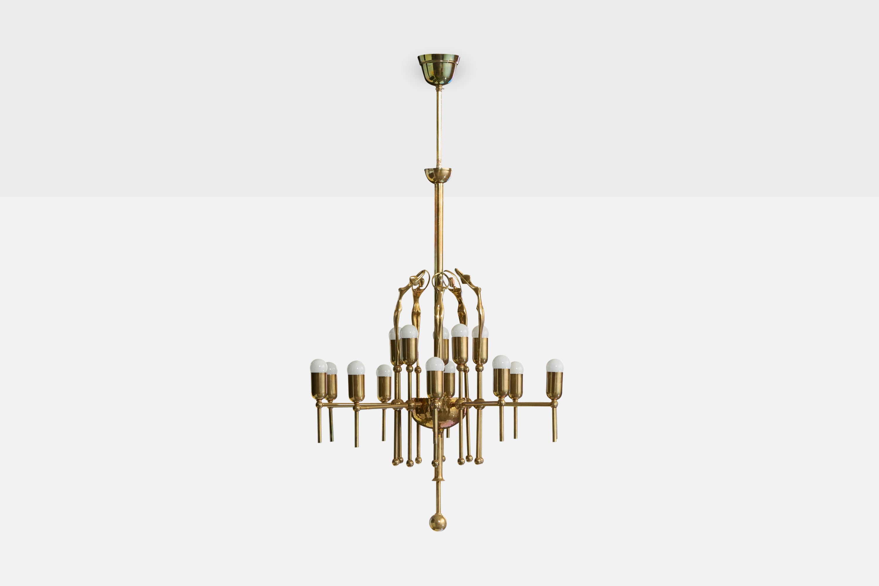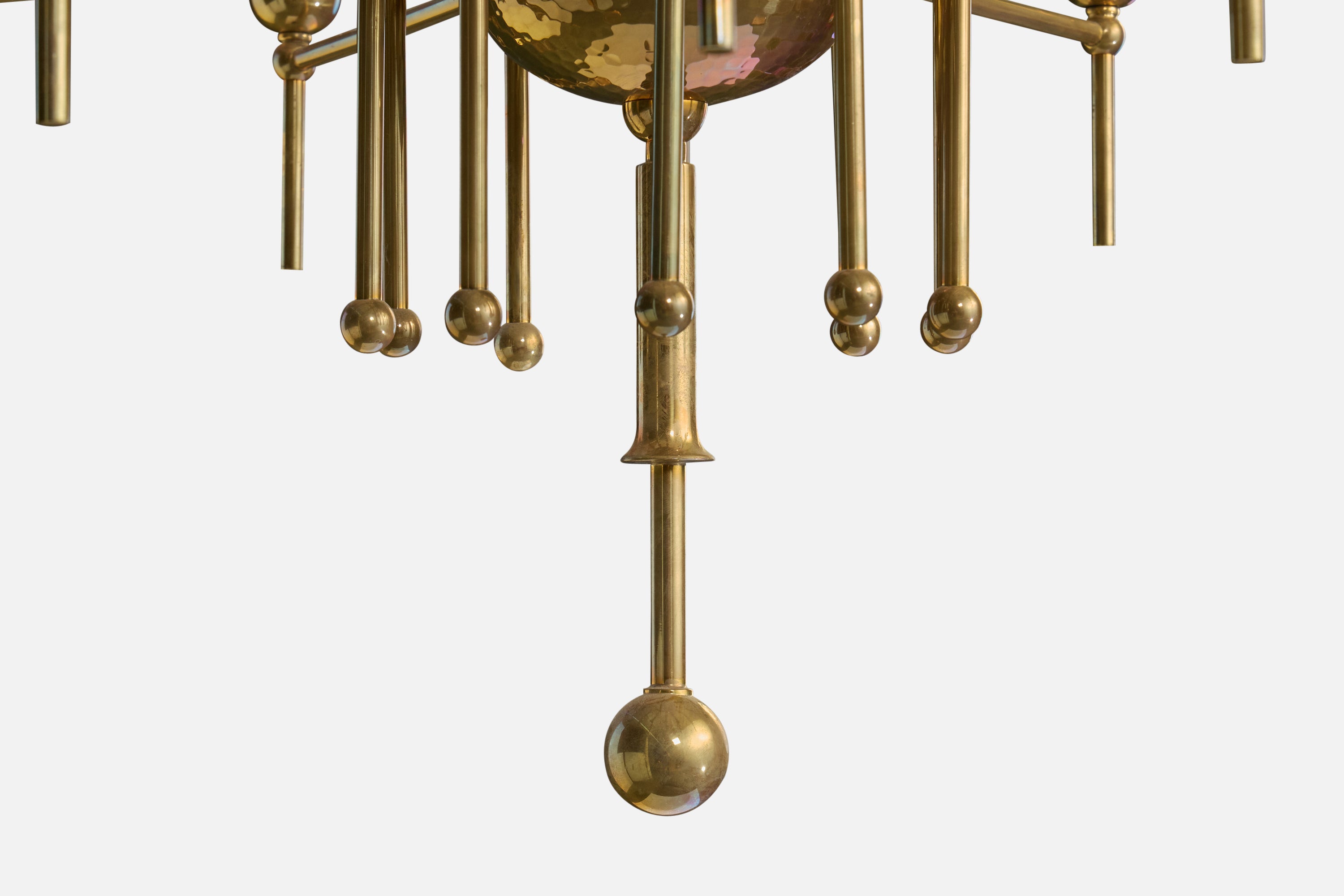 A brass chandelier produced by Werkstätte Hagenauer Wien, Vienna, Austria, c. 1950s.