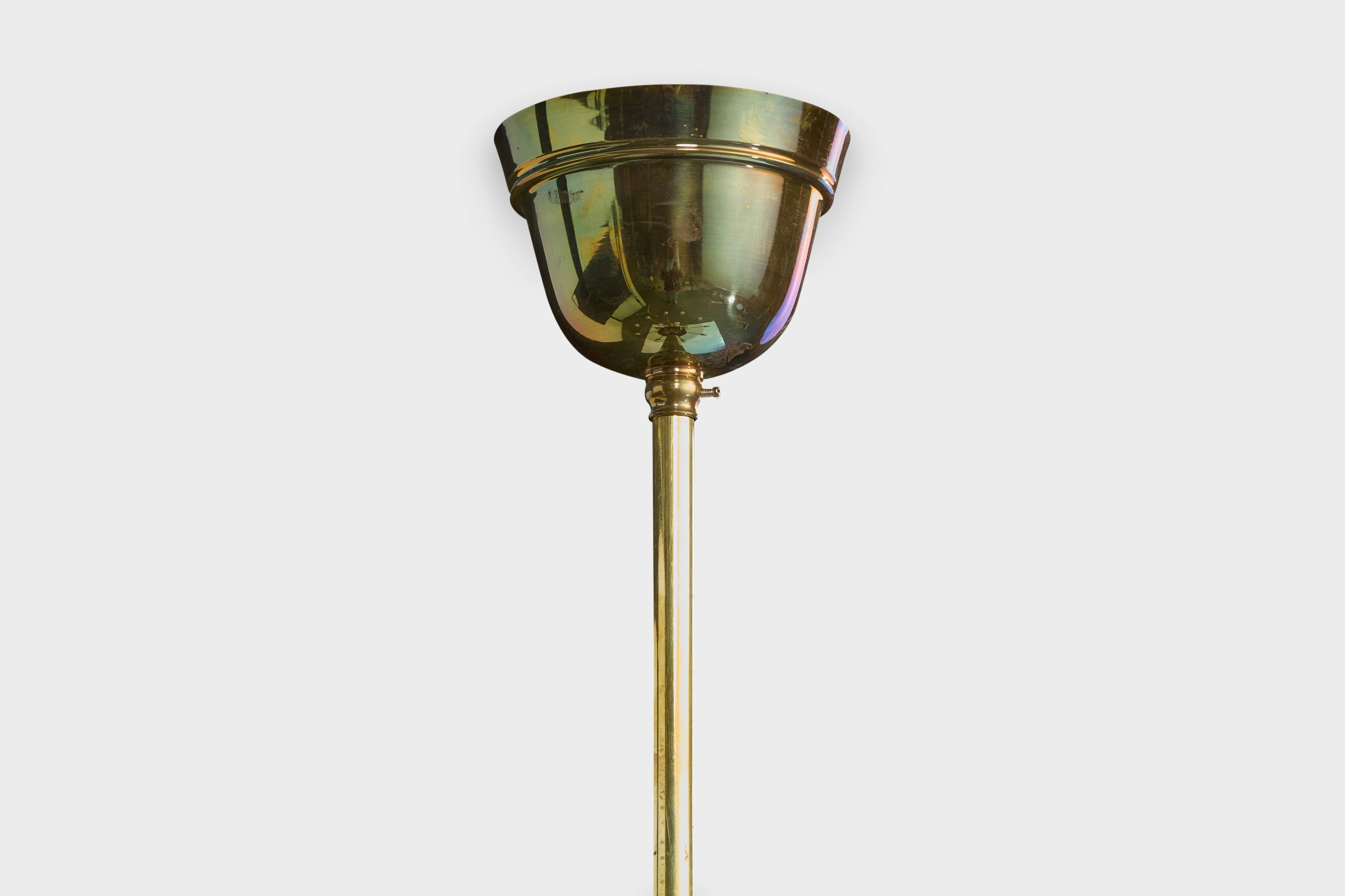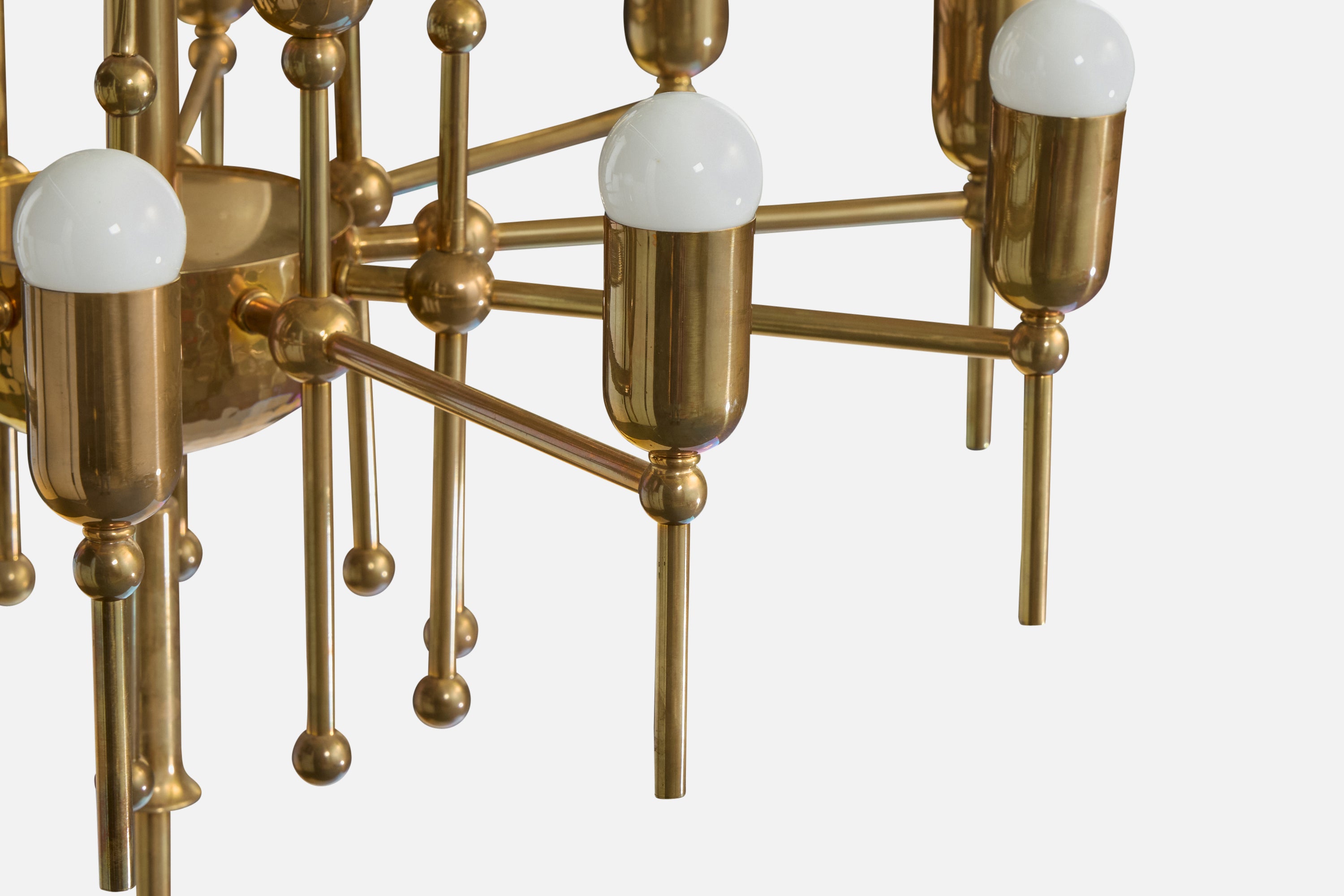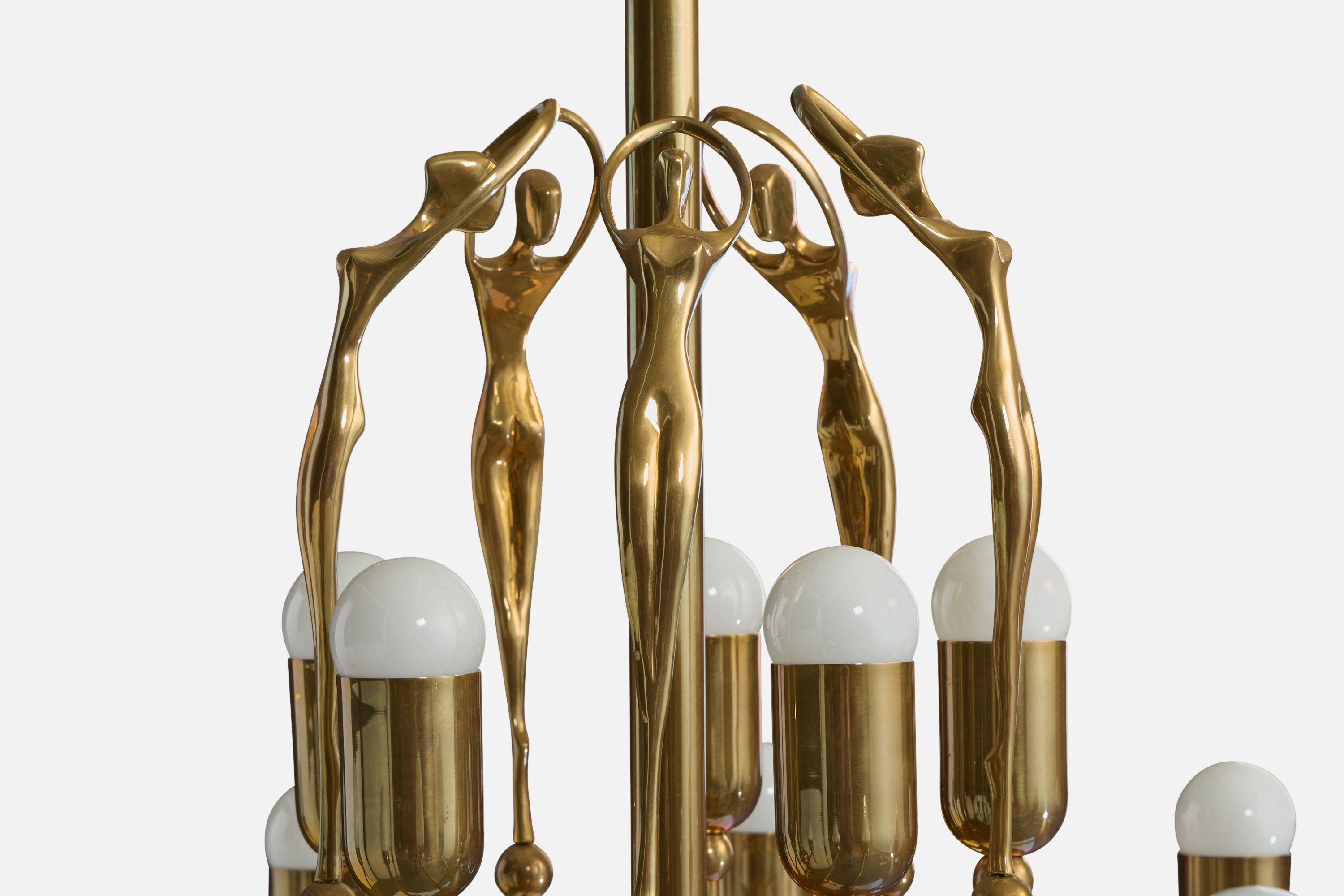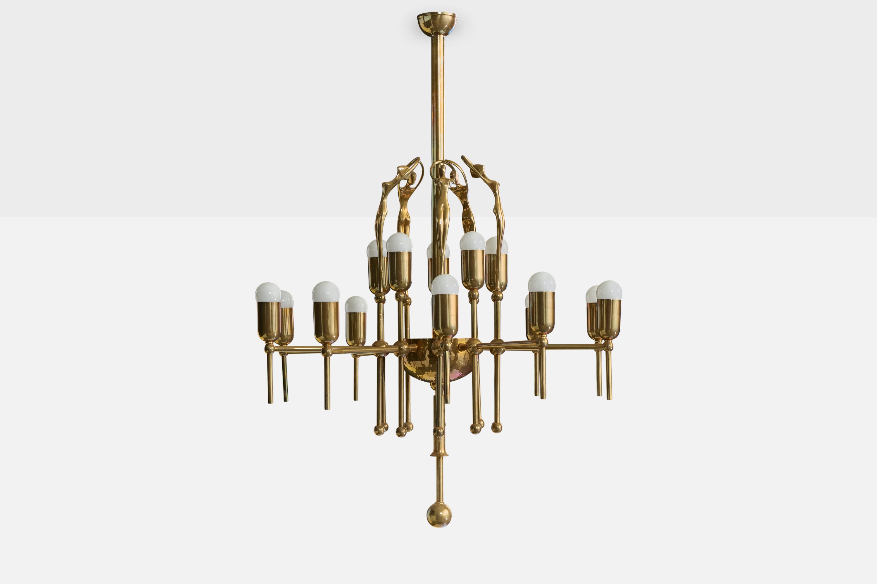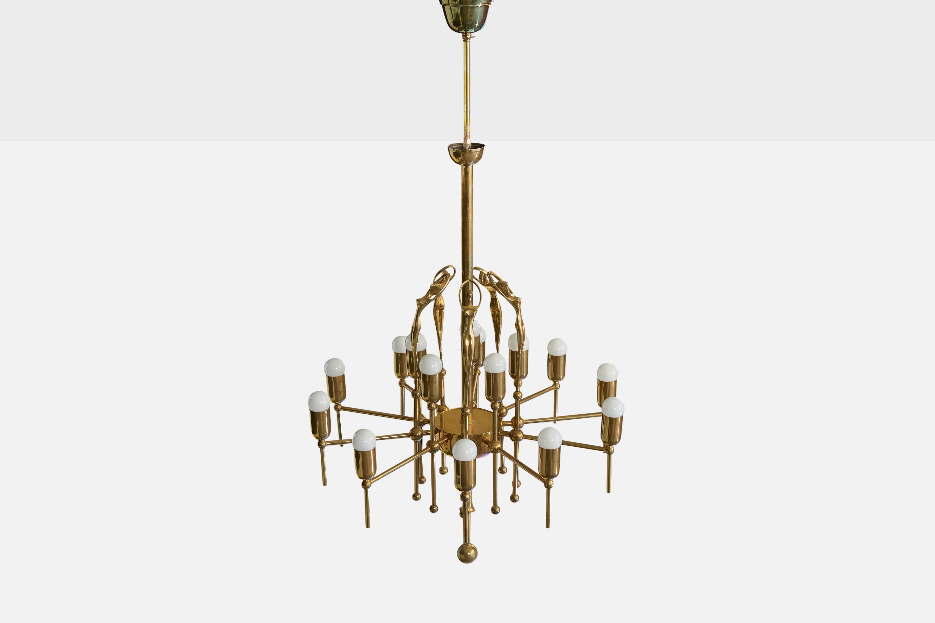 A brass chandelier produced by Werkstätte Hagenauer Wien, Vienna, Austria, c. 1950s.