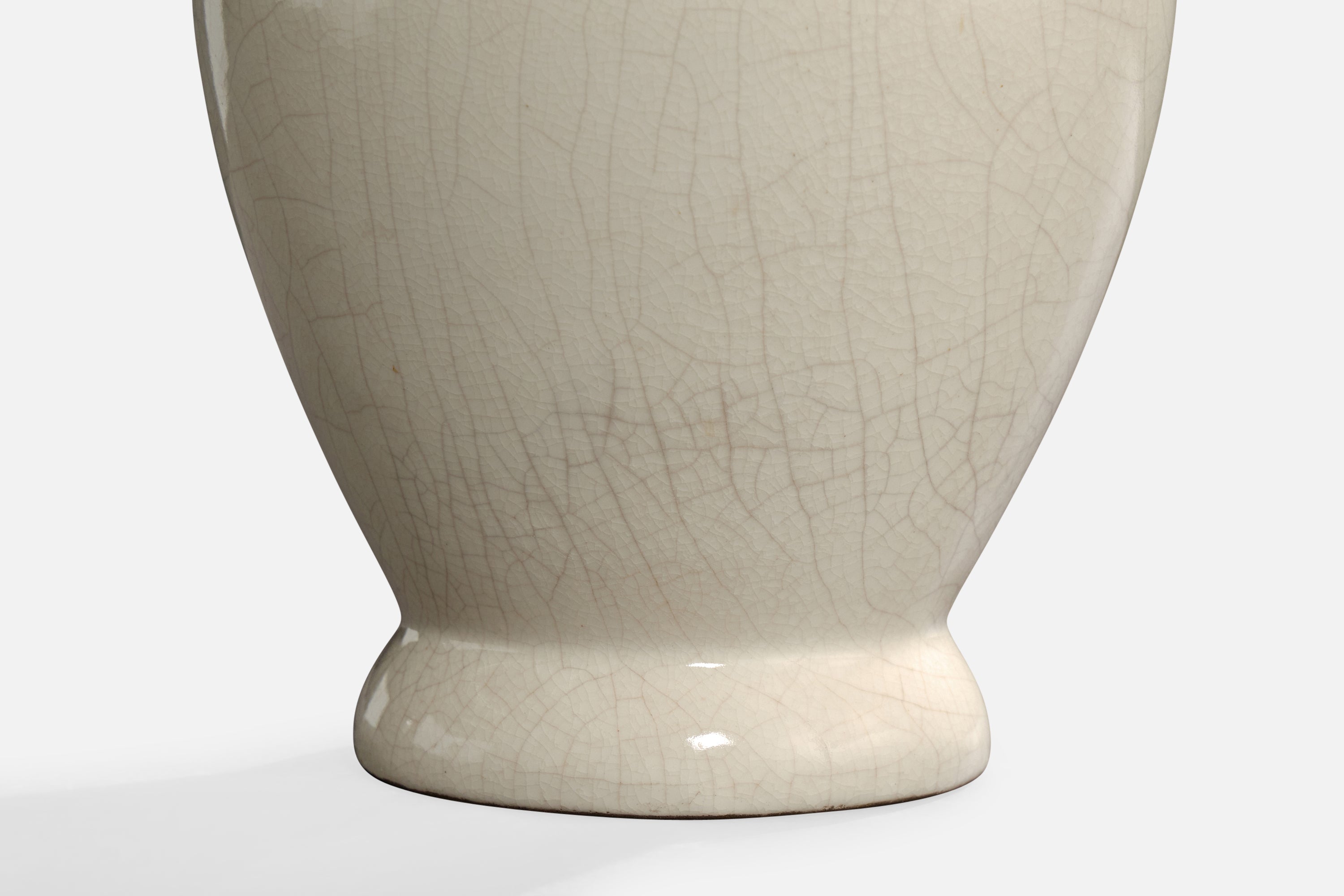French Designer, Table Lamp, Ceramic, Brass, France, 1940s
