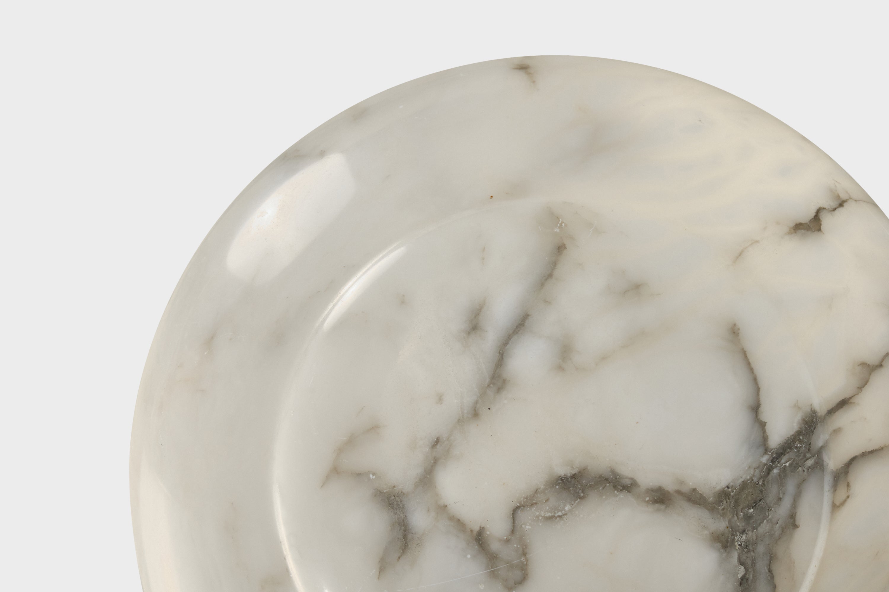 Some staining to fabric canopy. Minor scratches on alabaster. Wear consistent with age and use.