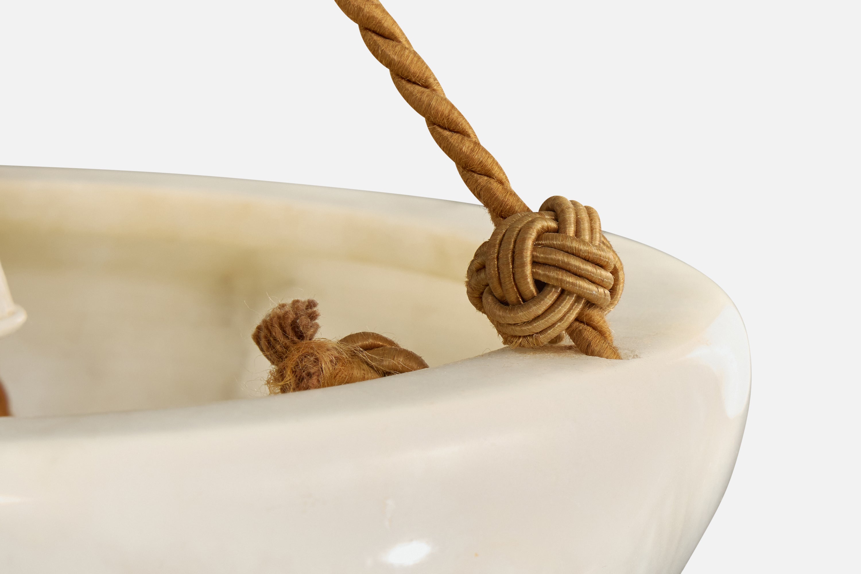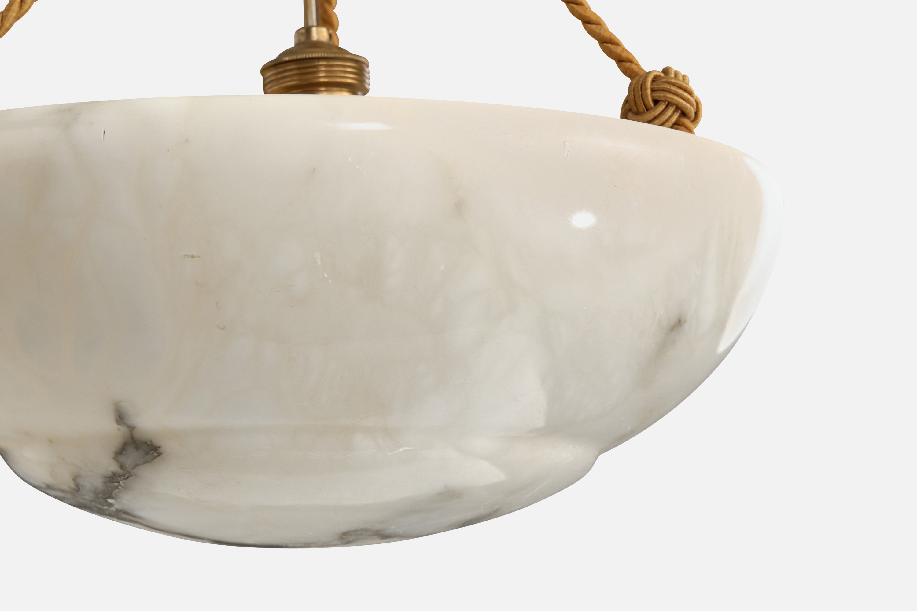 French Designer, Pendant Light, Alabaster, Rope, France, 1930s