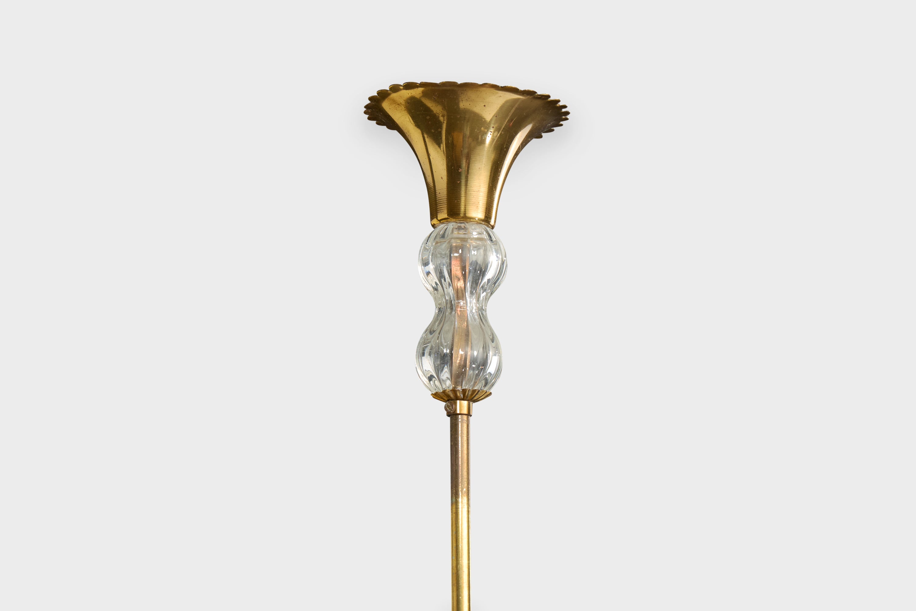 A brass and glass pendant light designed and produced in France, c. 1950s.