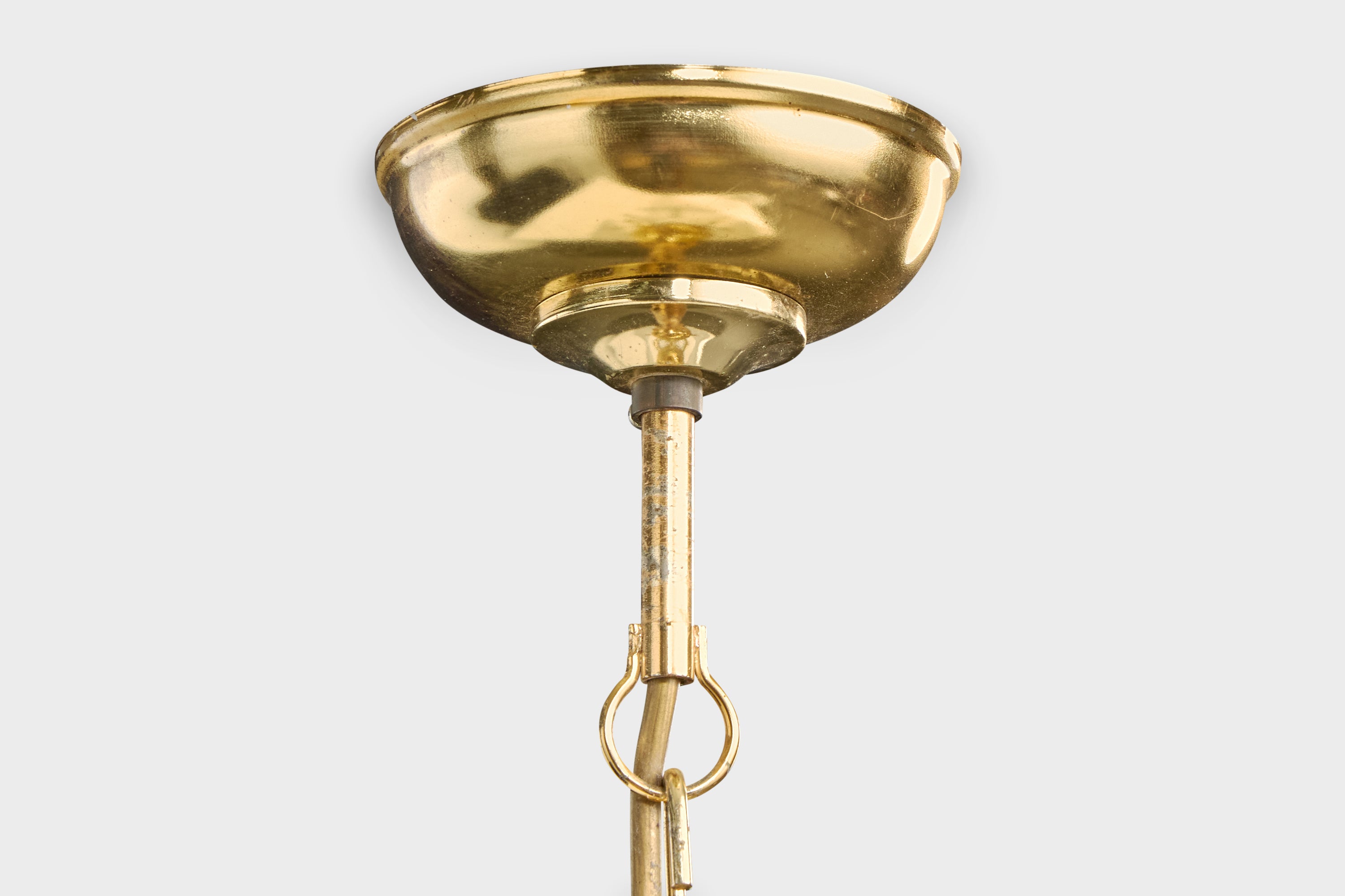 Italian Designer, Pendant Light, Glass, Brass, Italy, 1980s