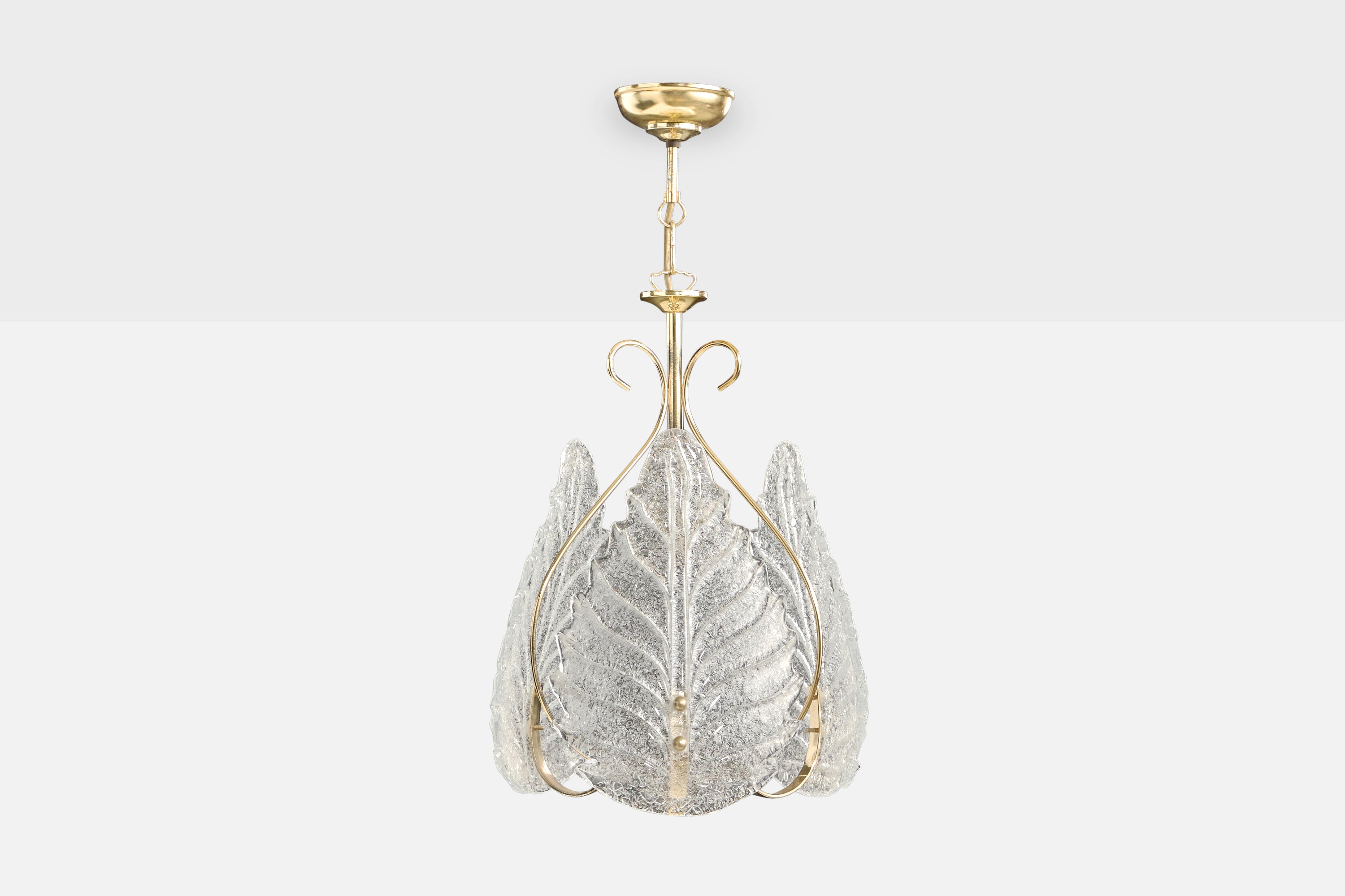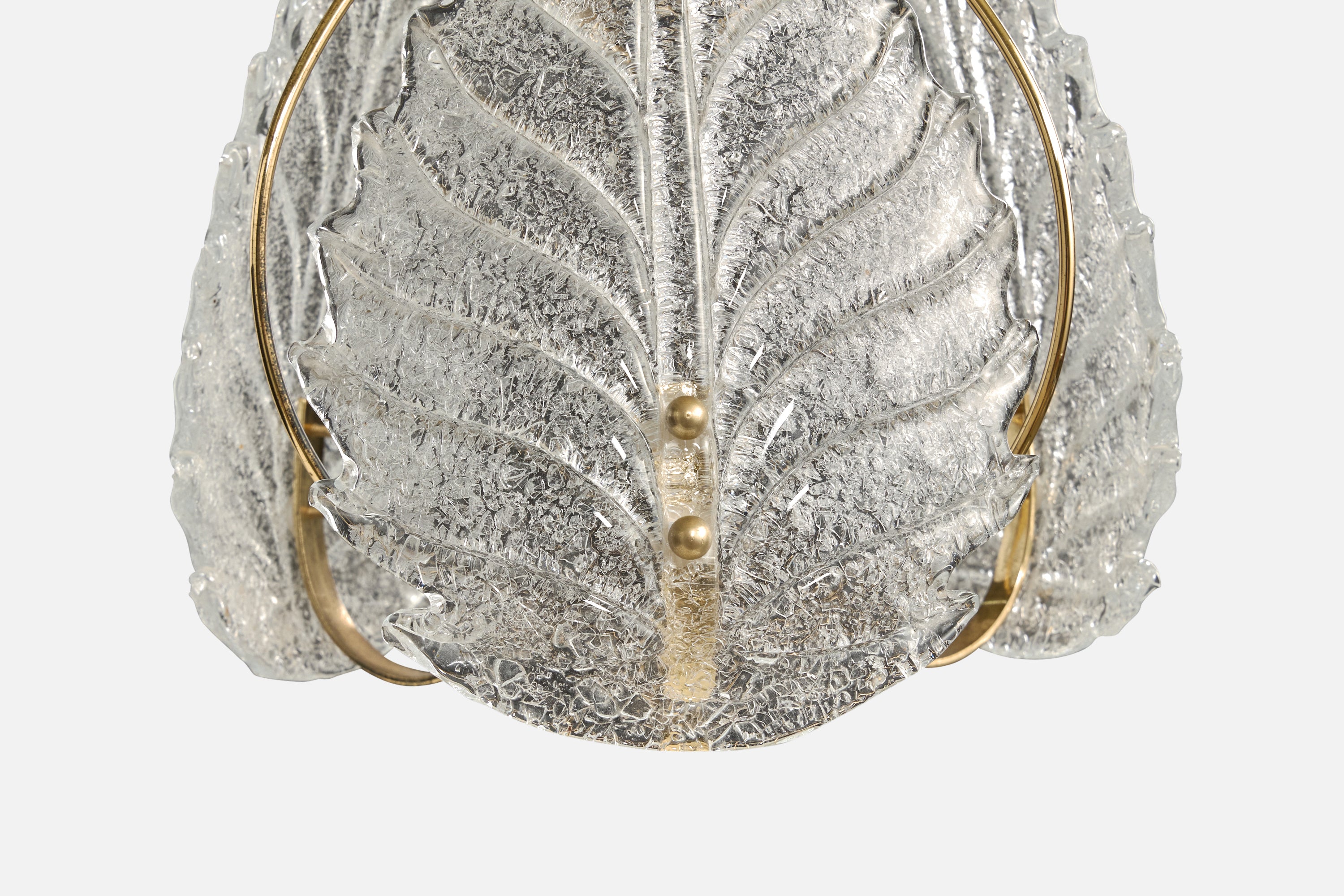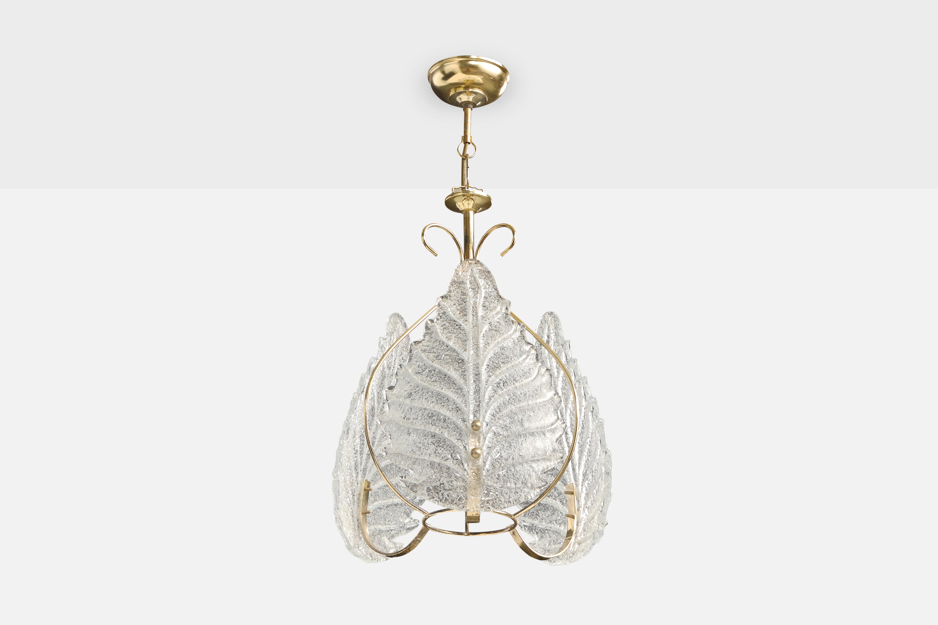 A brass and Murano glass pendant light designed and produced in Italy, c. 1980s.