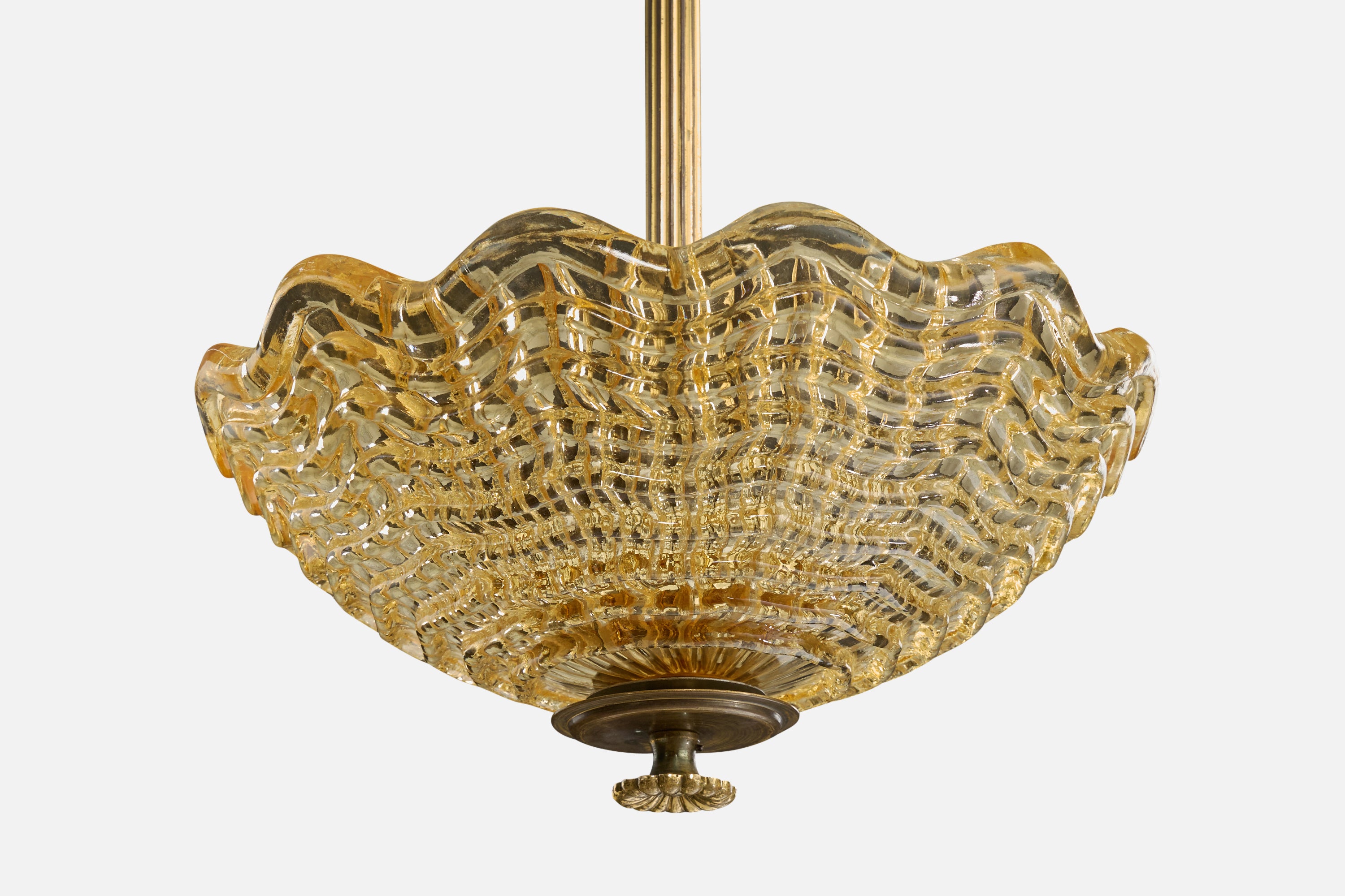 Carl Fagerlund, Pendant Light, Brass, Glass, Sweden, 1950s