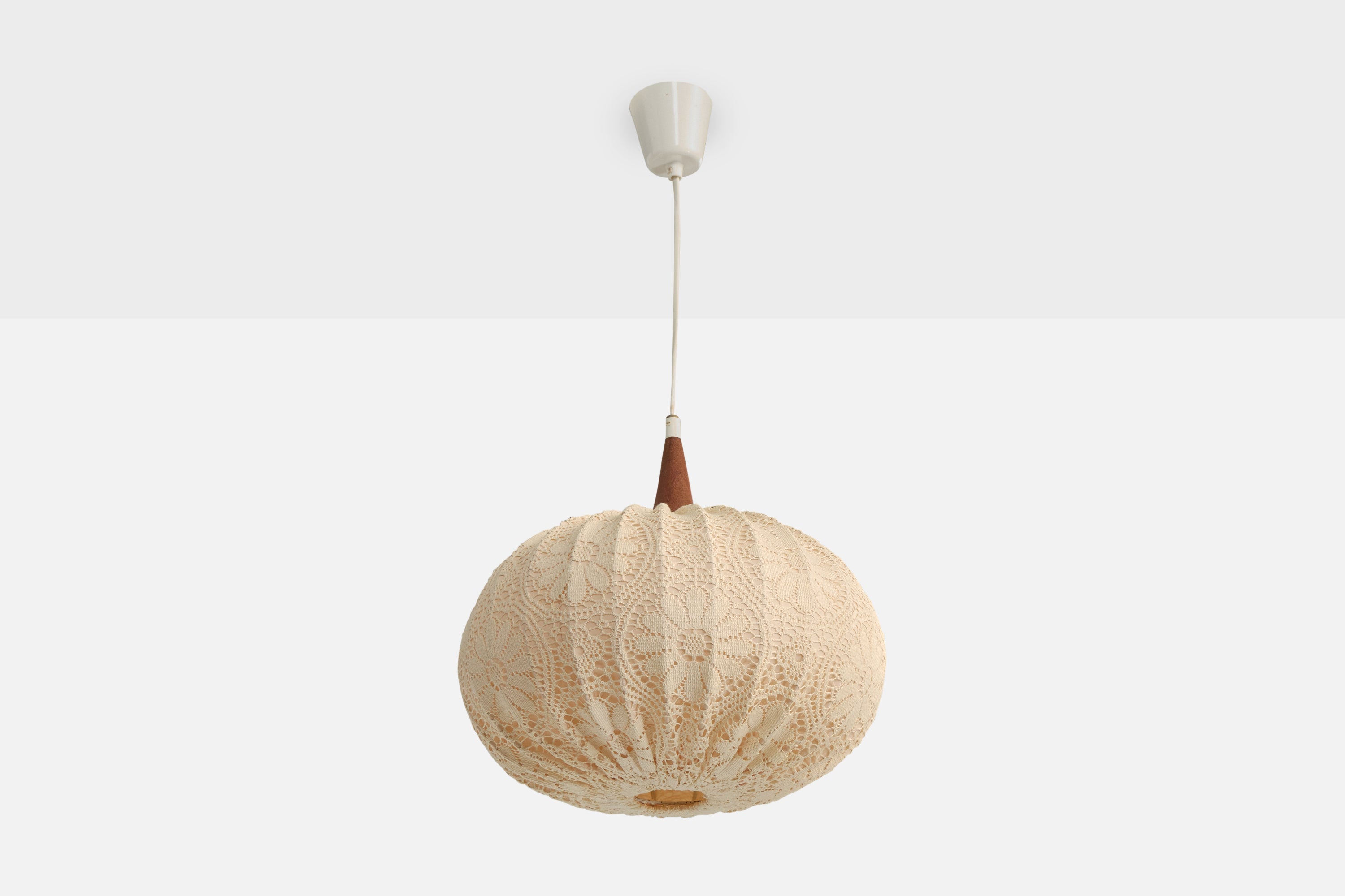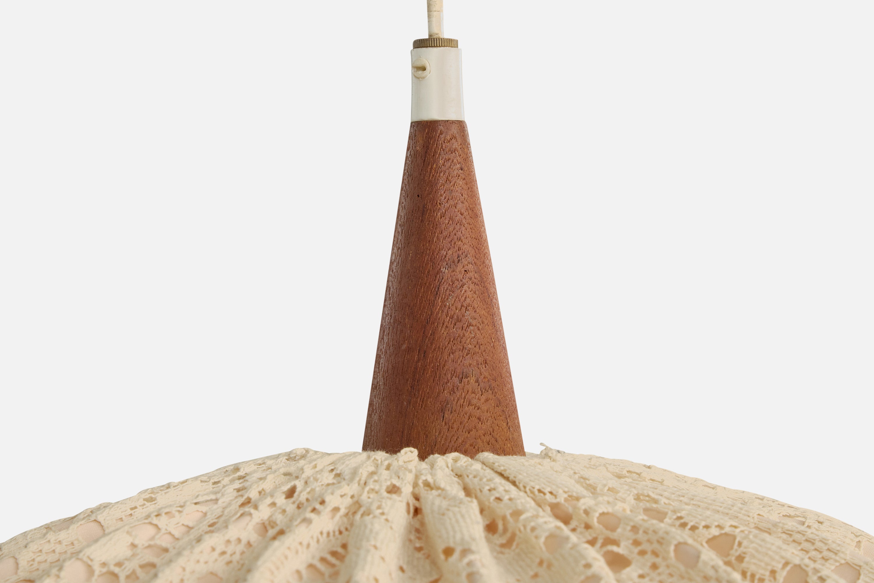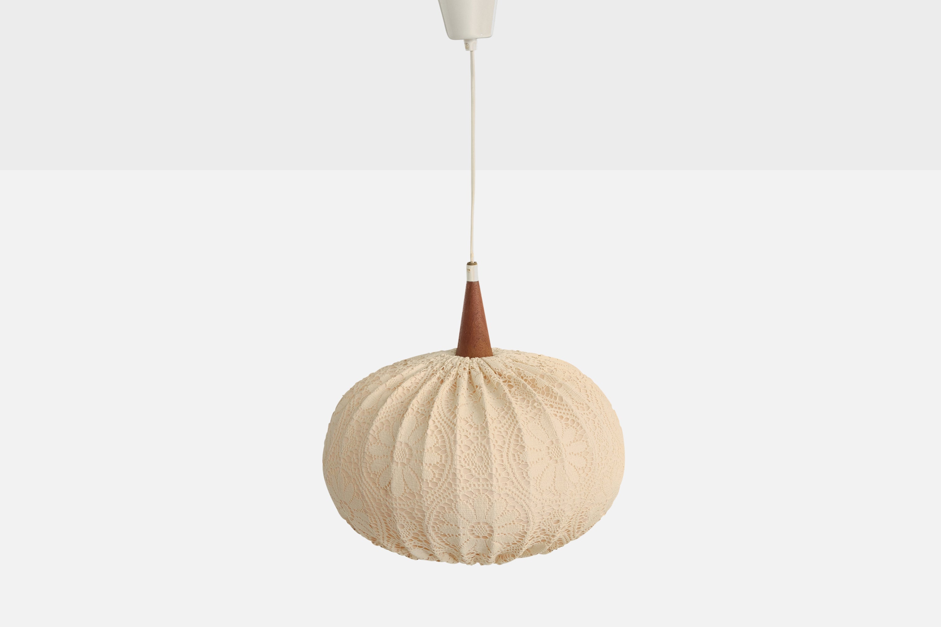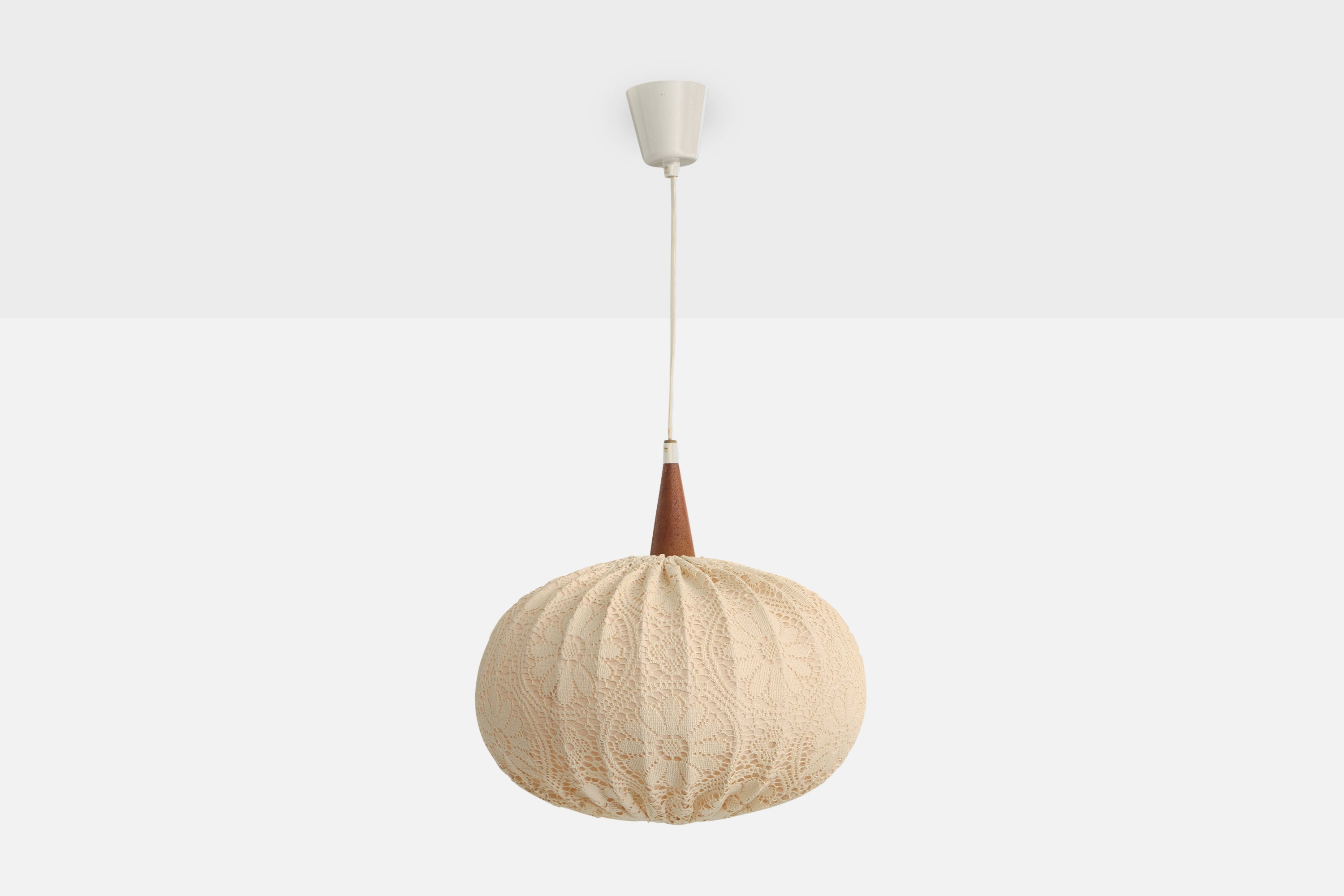 Swedish Designer, Pendant Light, Fabric, Teak, Sweden, 1950s
