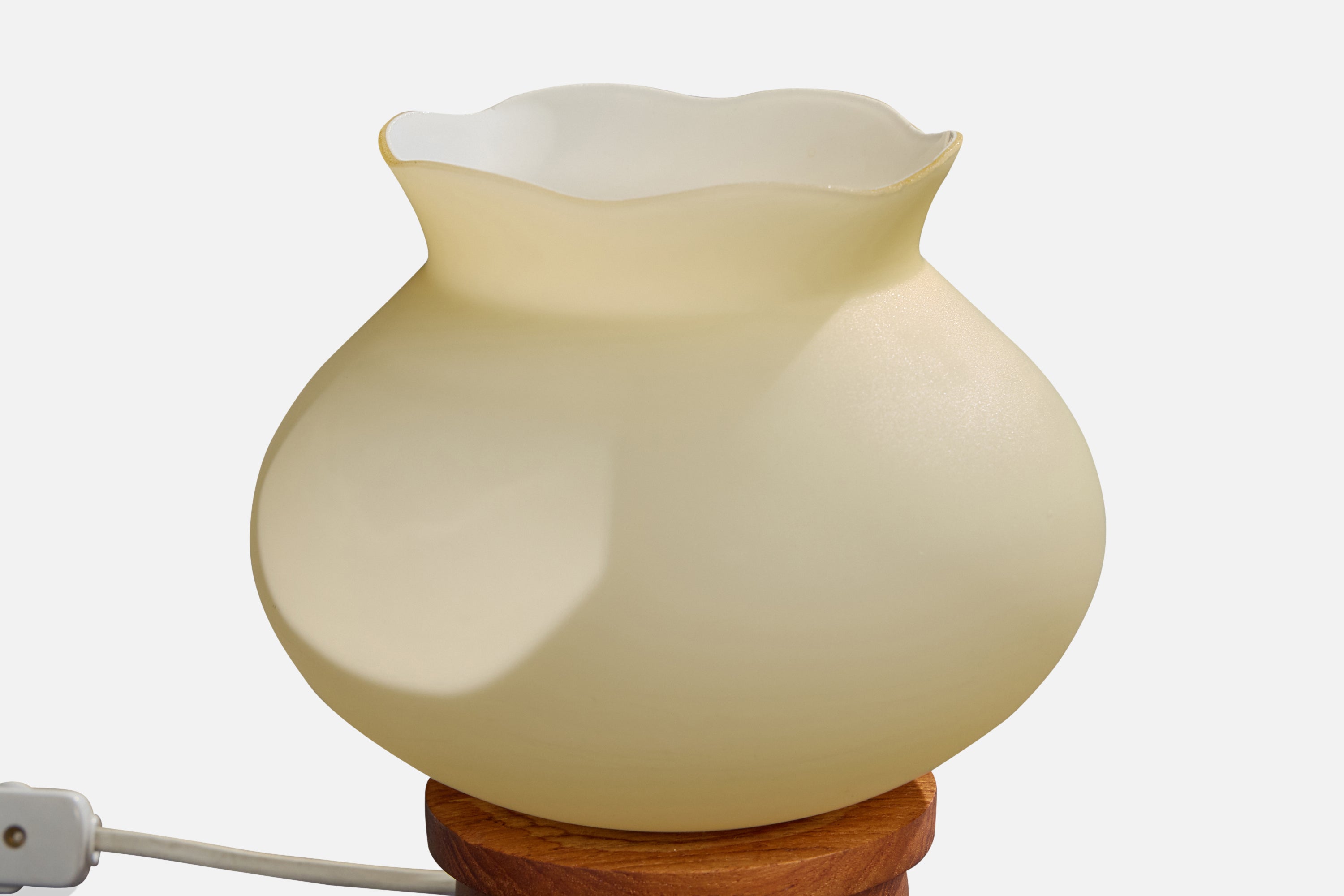 Swedish Designer, Table Lamp, Glass, Teak, Sweden, 1950s