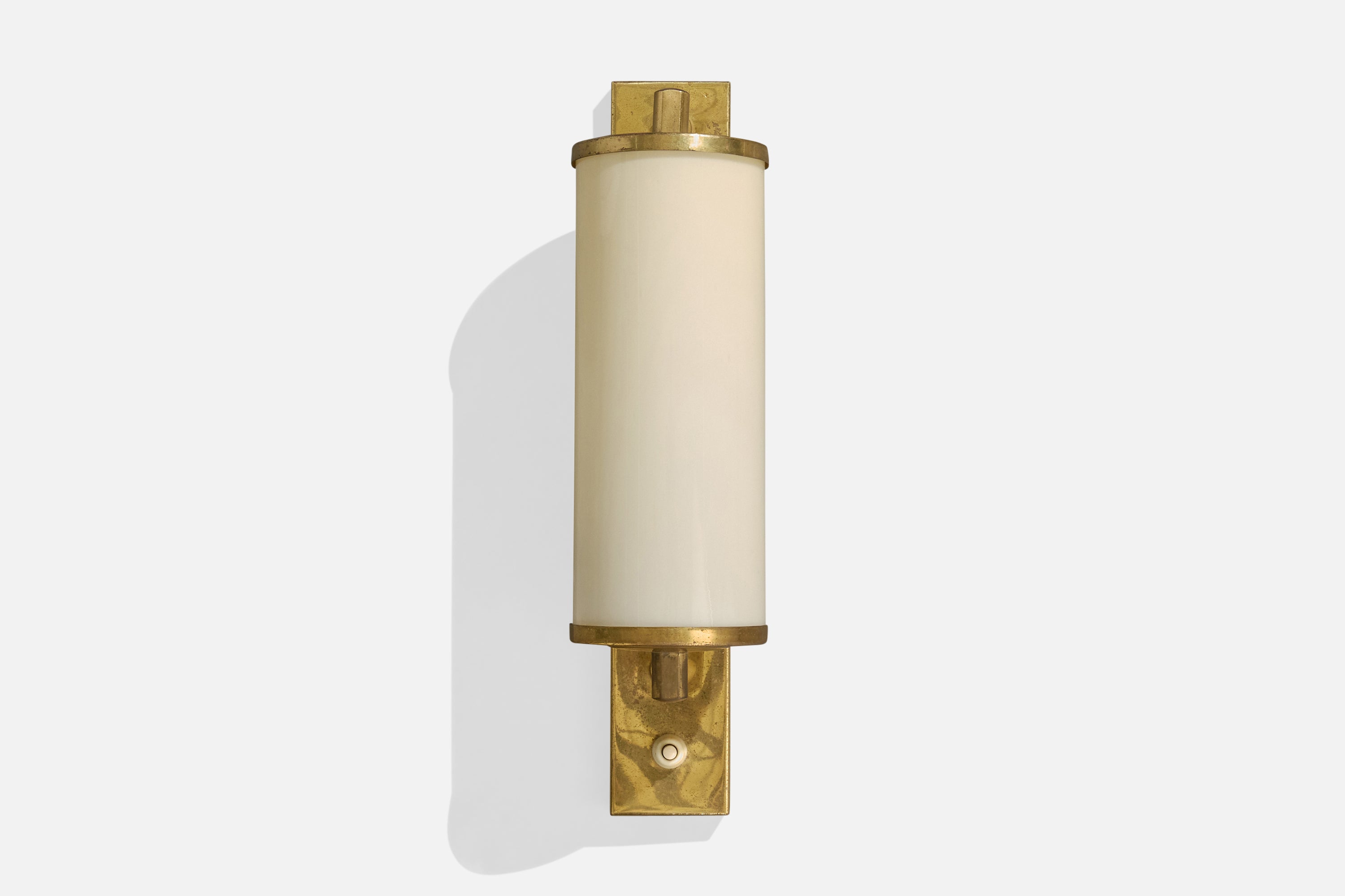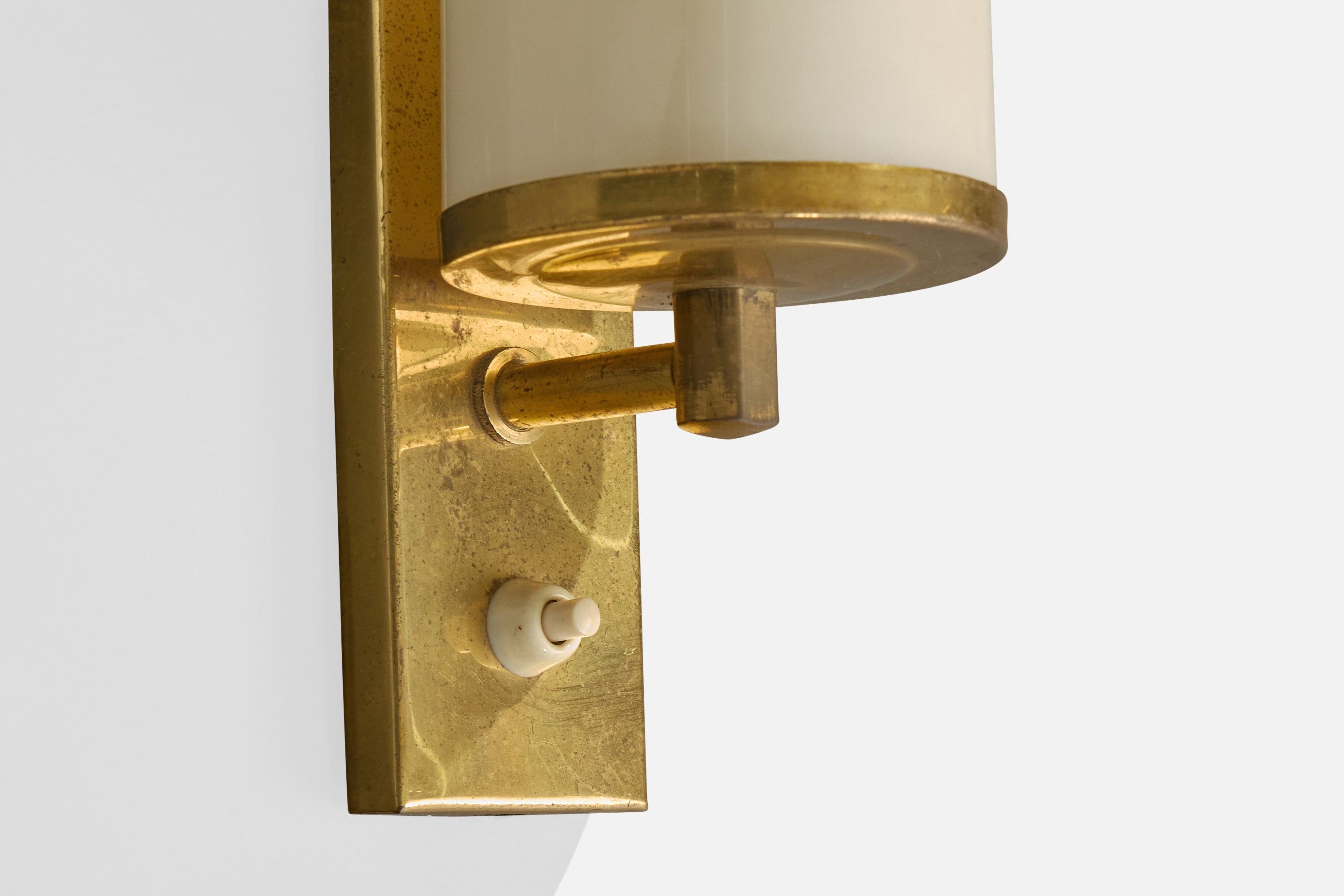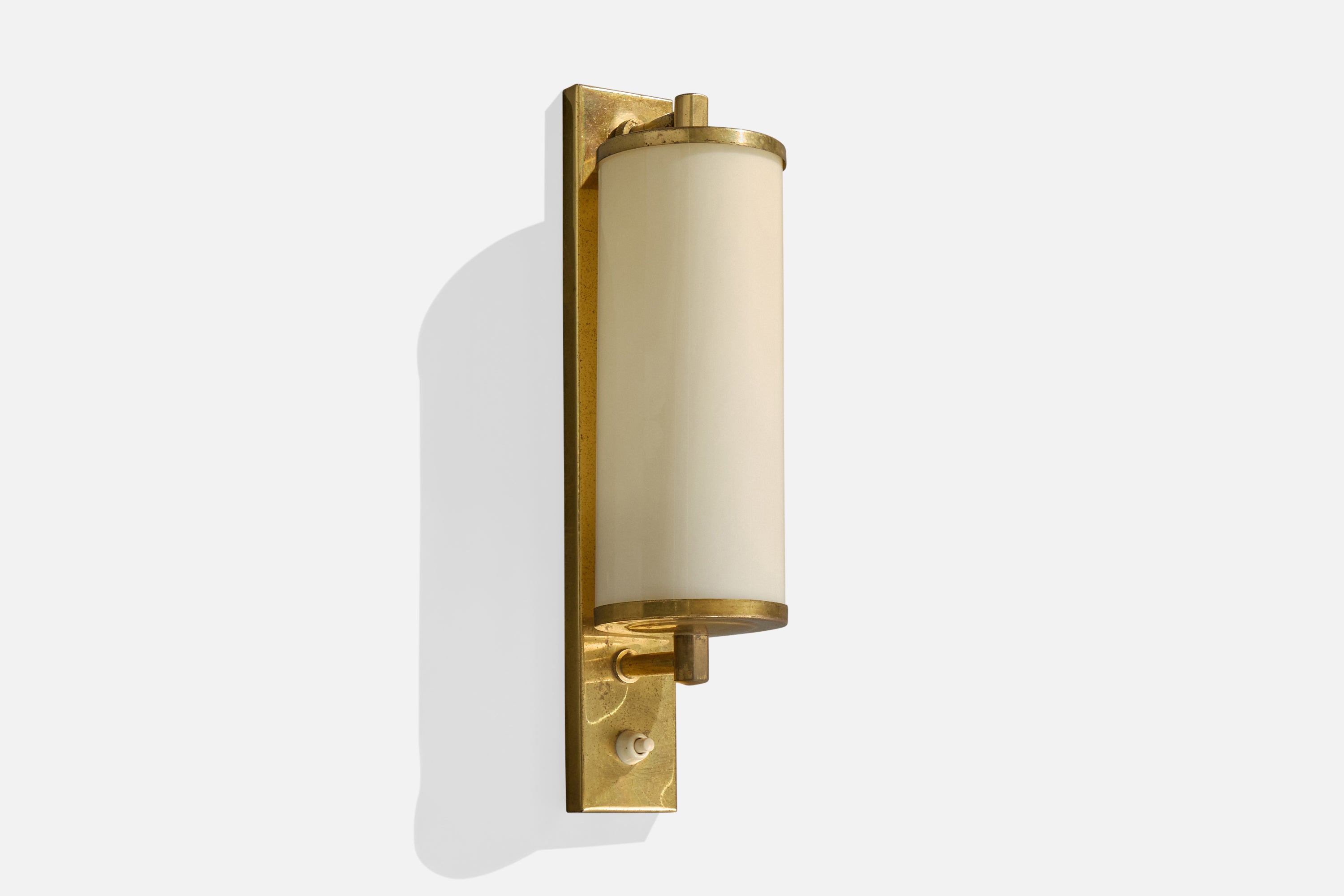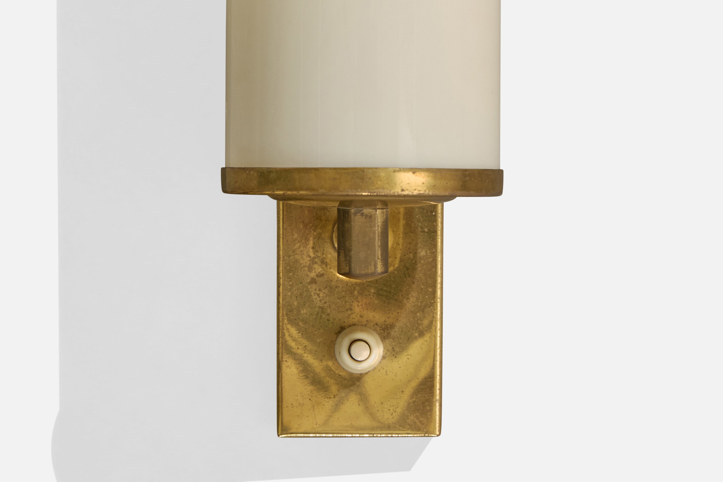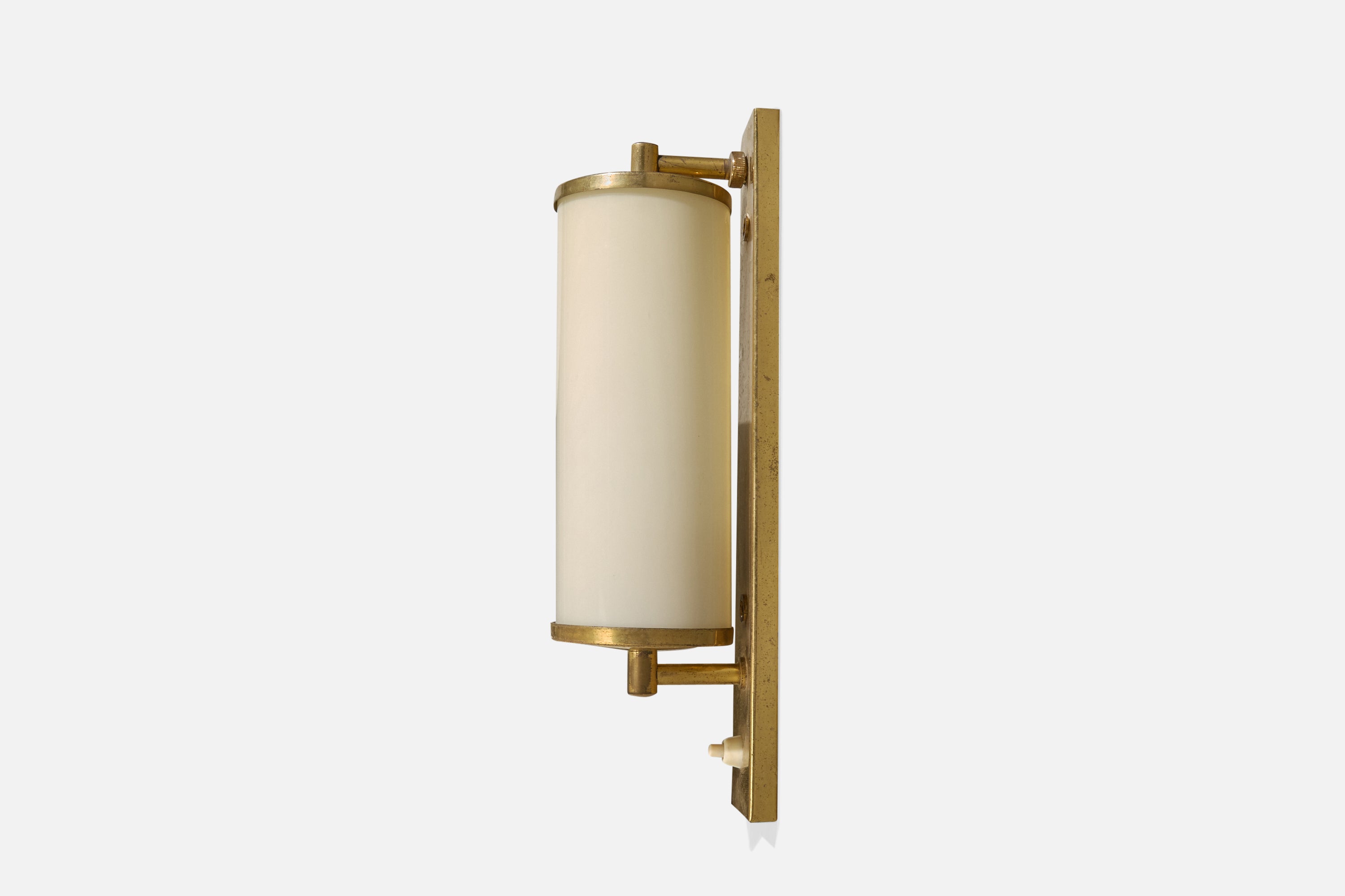 A brass and white opaline glass wall light designed and produced in Germany, c. 1920s.