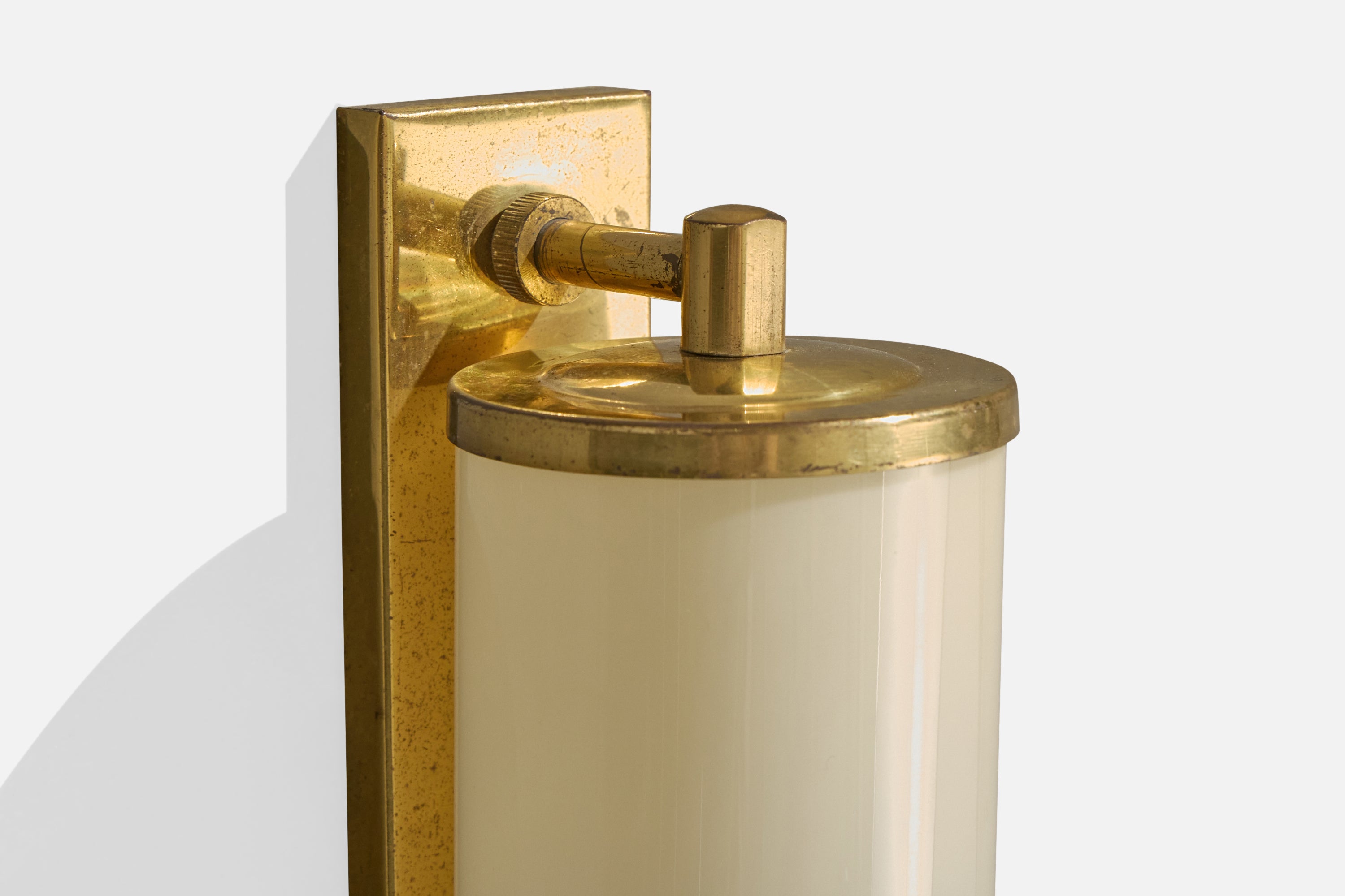 German Designer, Wall Light, Brass, Glass, Germany, 1920s