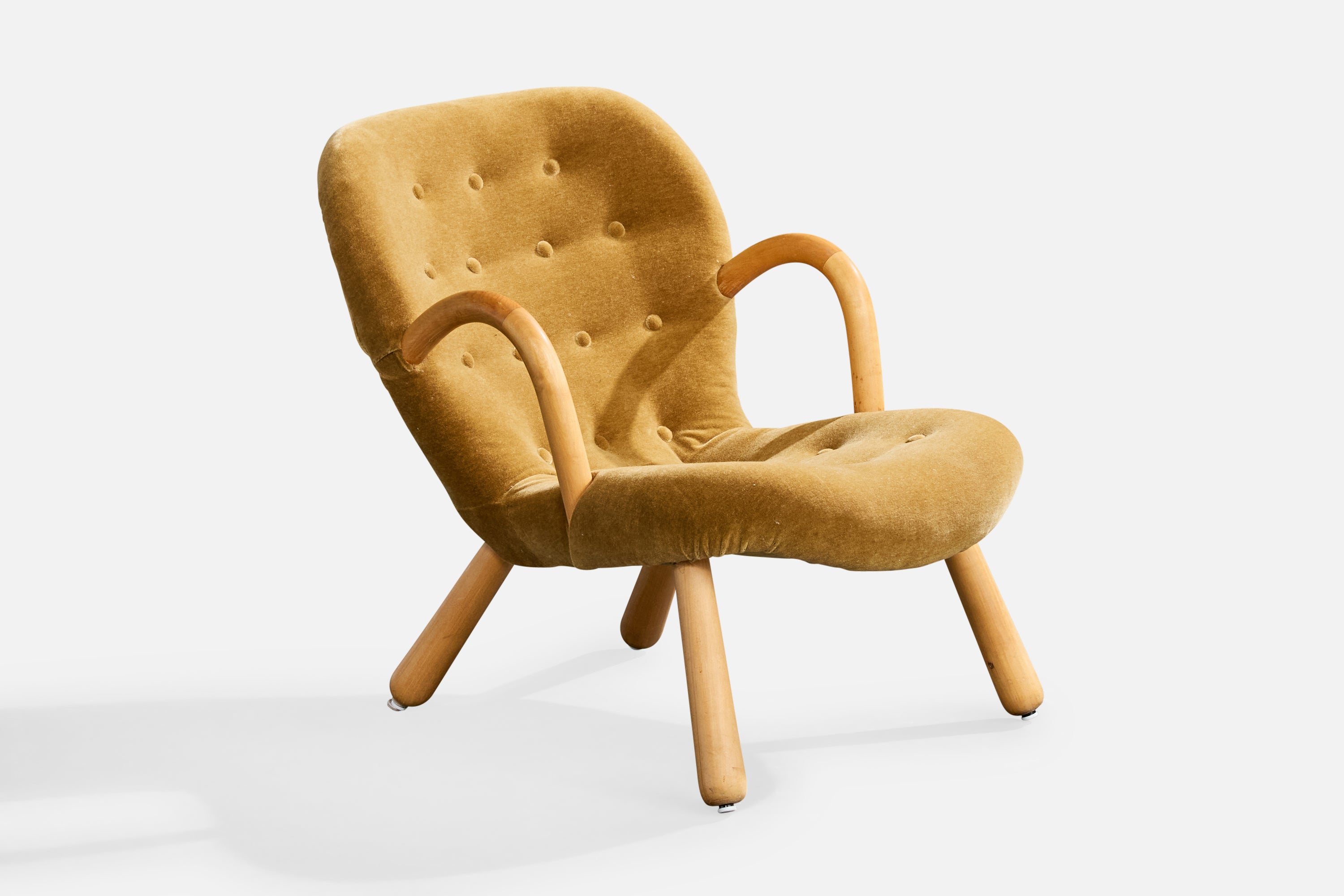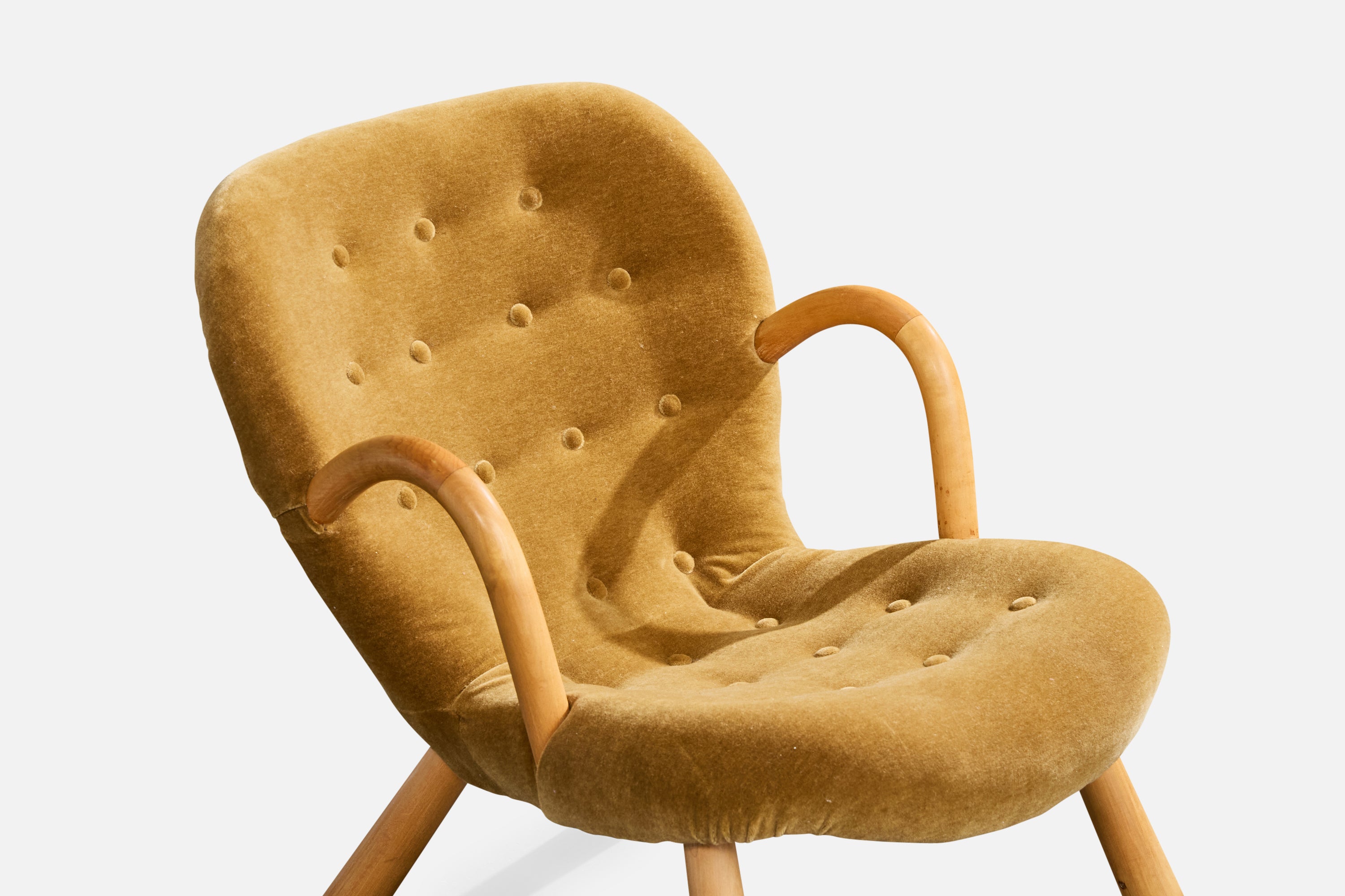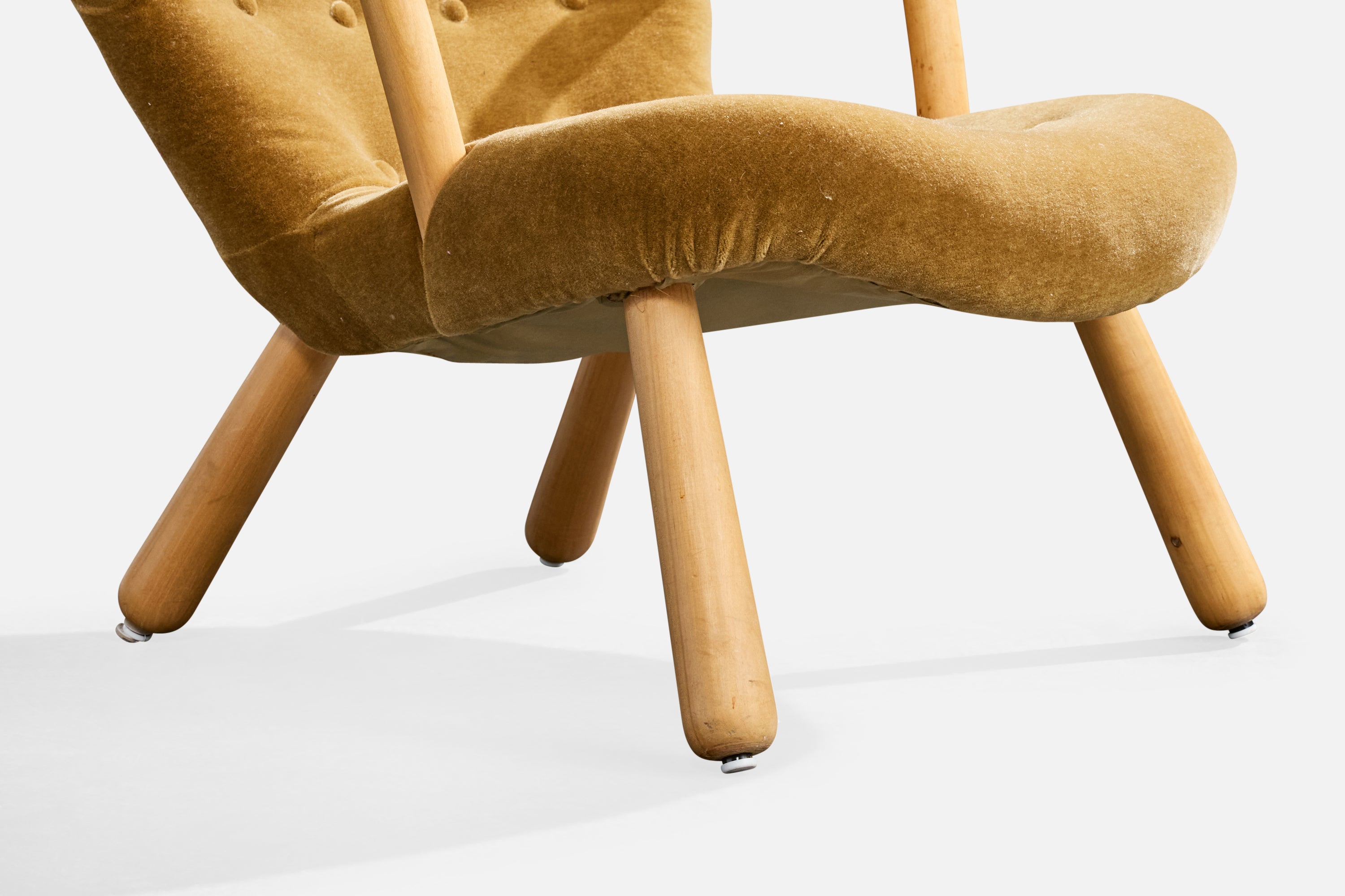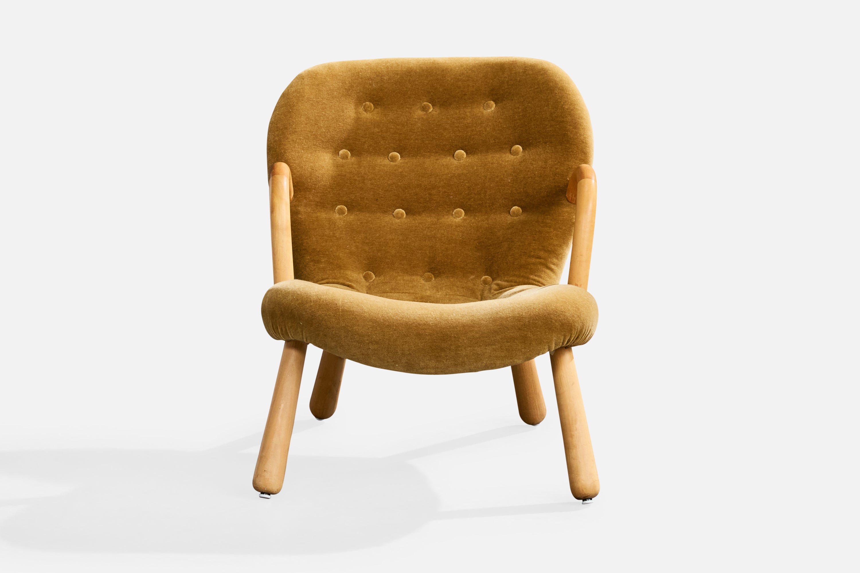 A wood and velvet lounge chair designed by Arnold Madsen and produced in Sweden, c. 1950s.