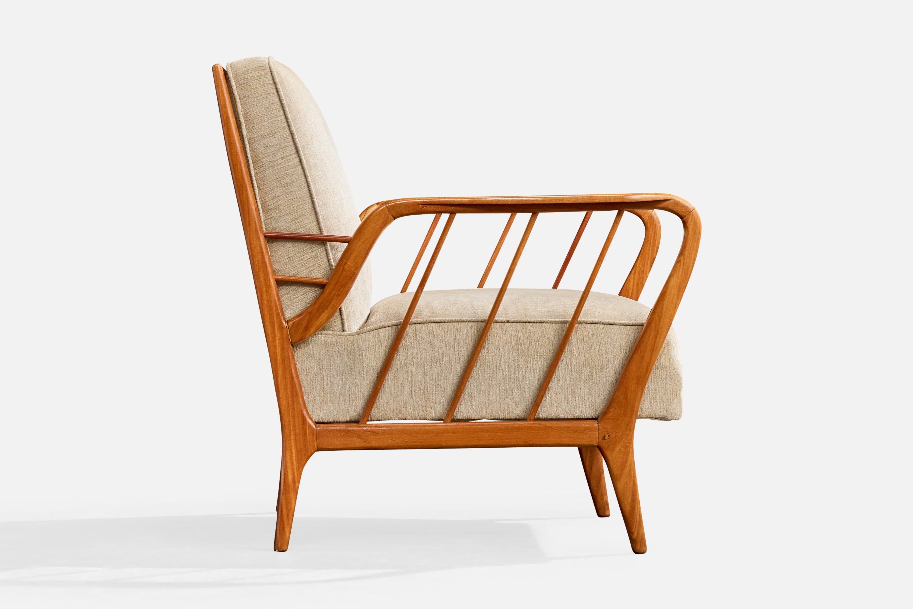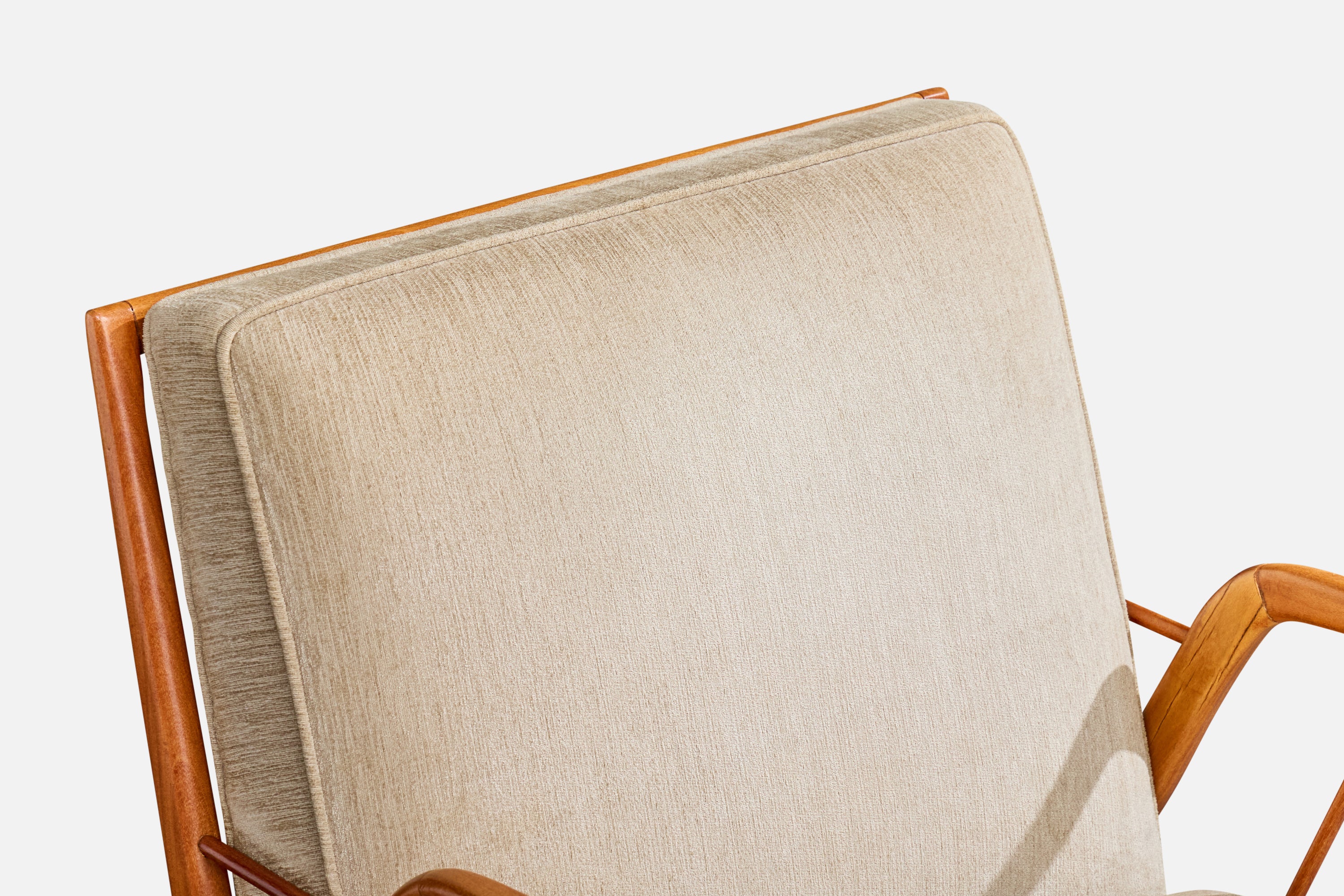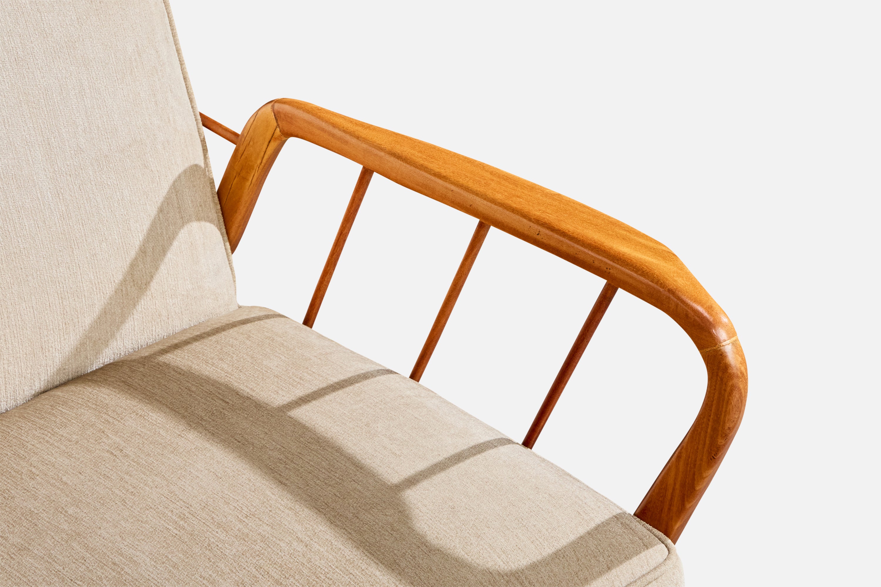 Brazilian Designer, Lounge Chairs, Wood, Fabric, Brazil, 1950s