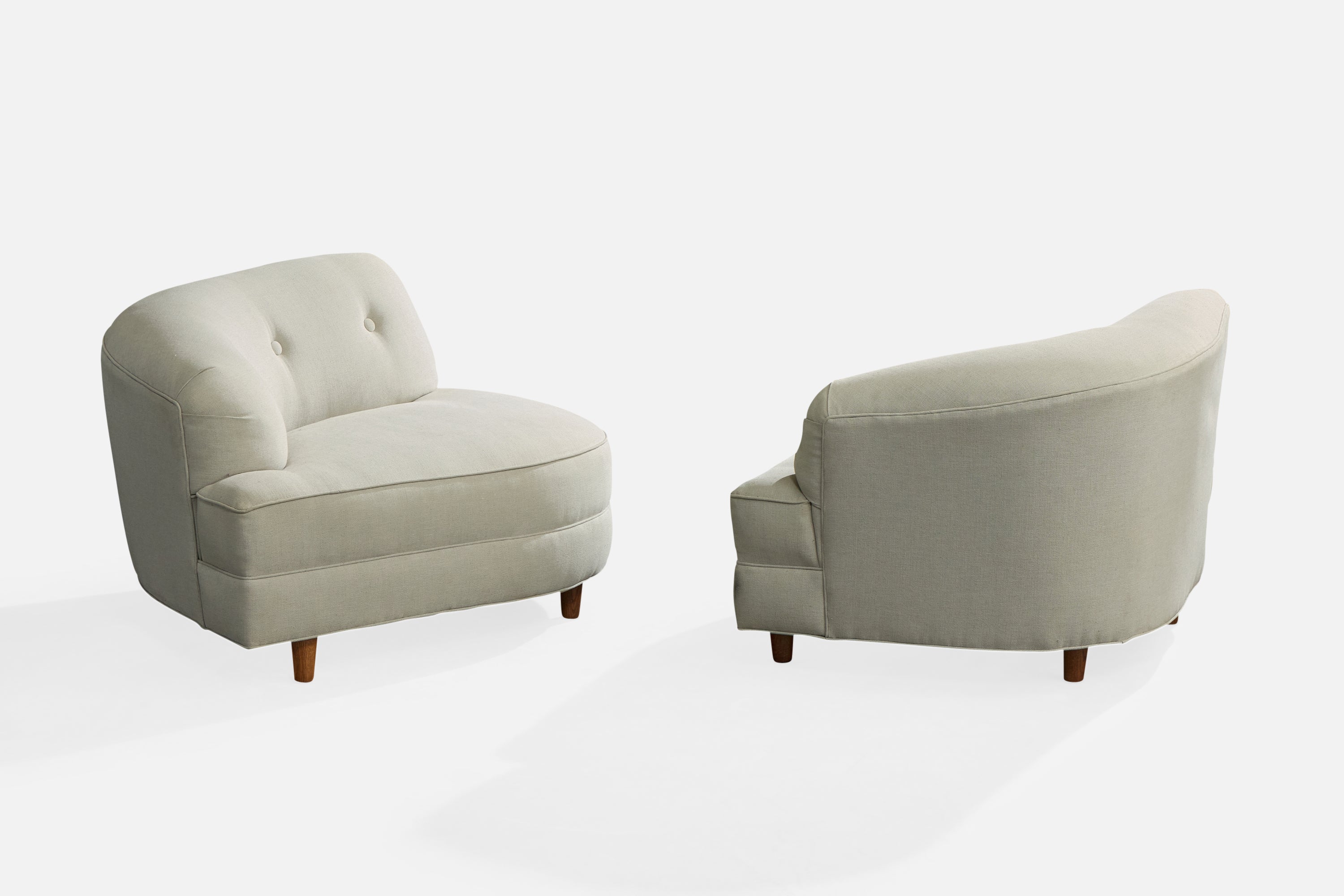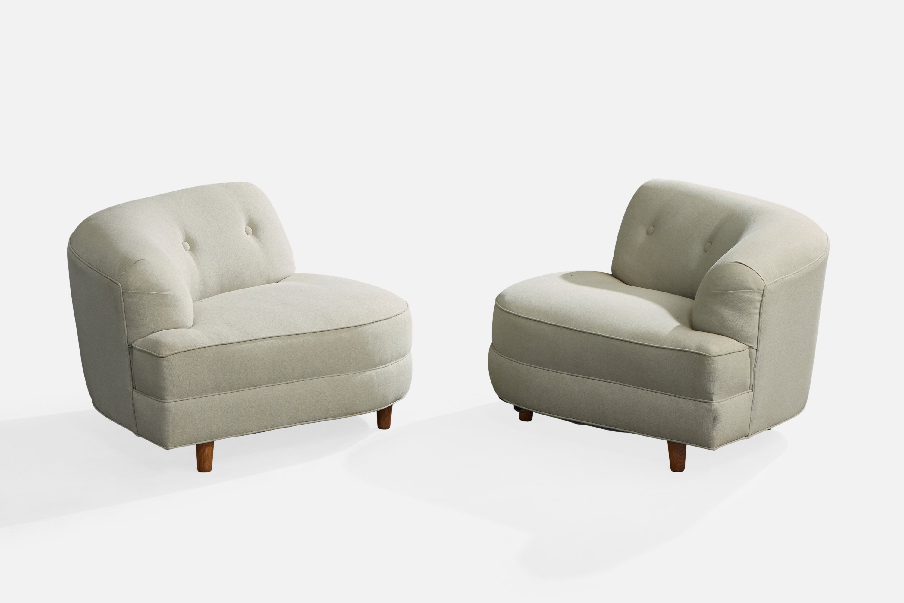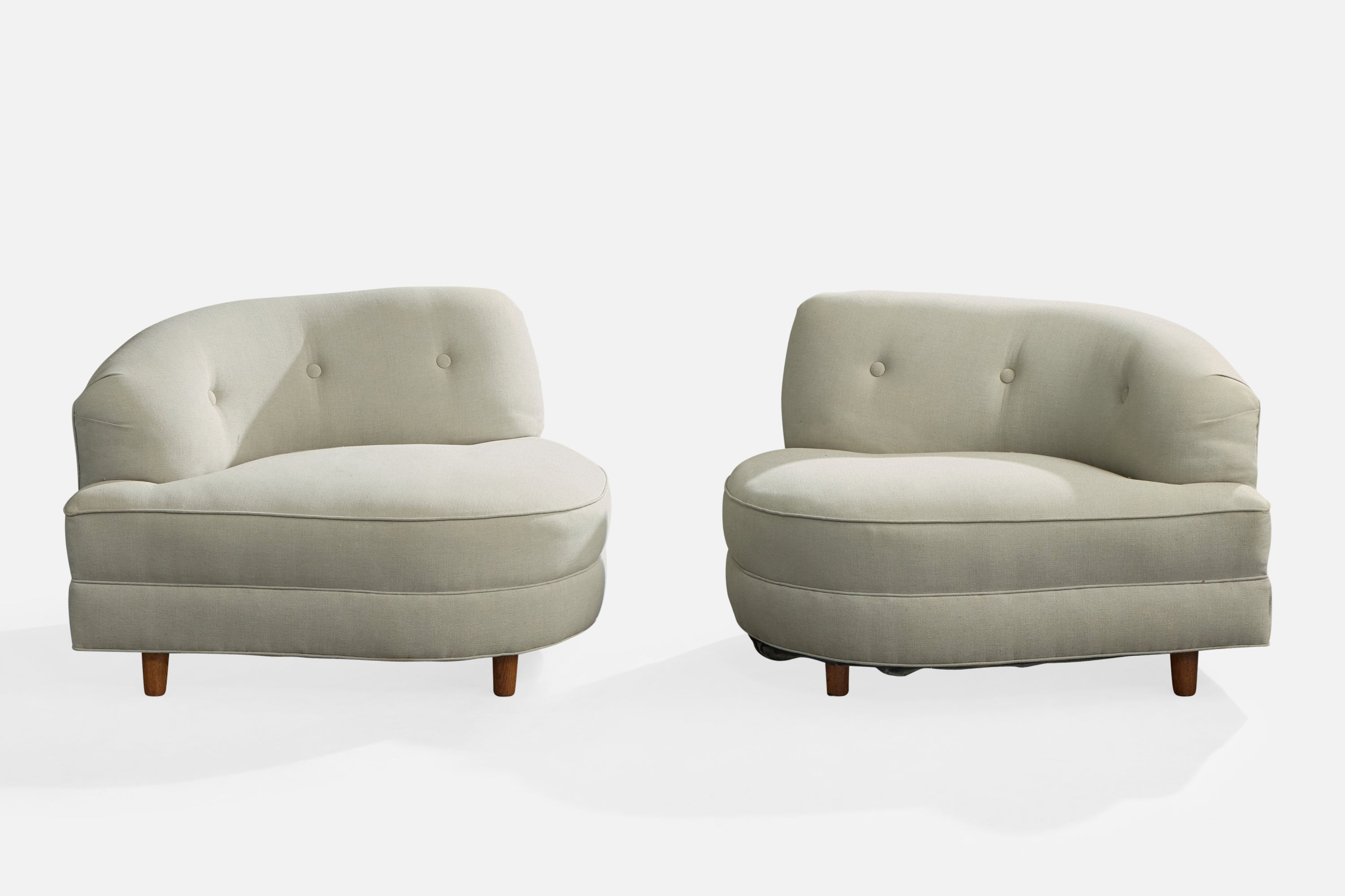 American Designer, Lounge Chairs, Fabric, Wood, USA, 1950s
