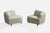 A pair of light-grey fabric and wood lounge chairs designed and produced in the US, c. 1950s.