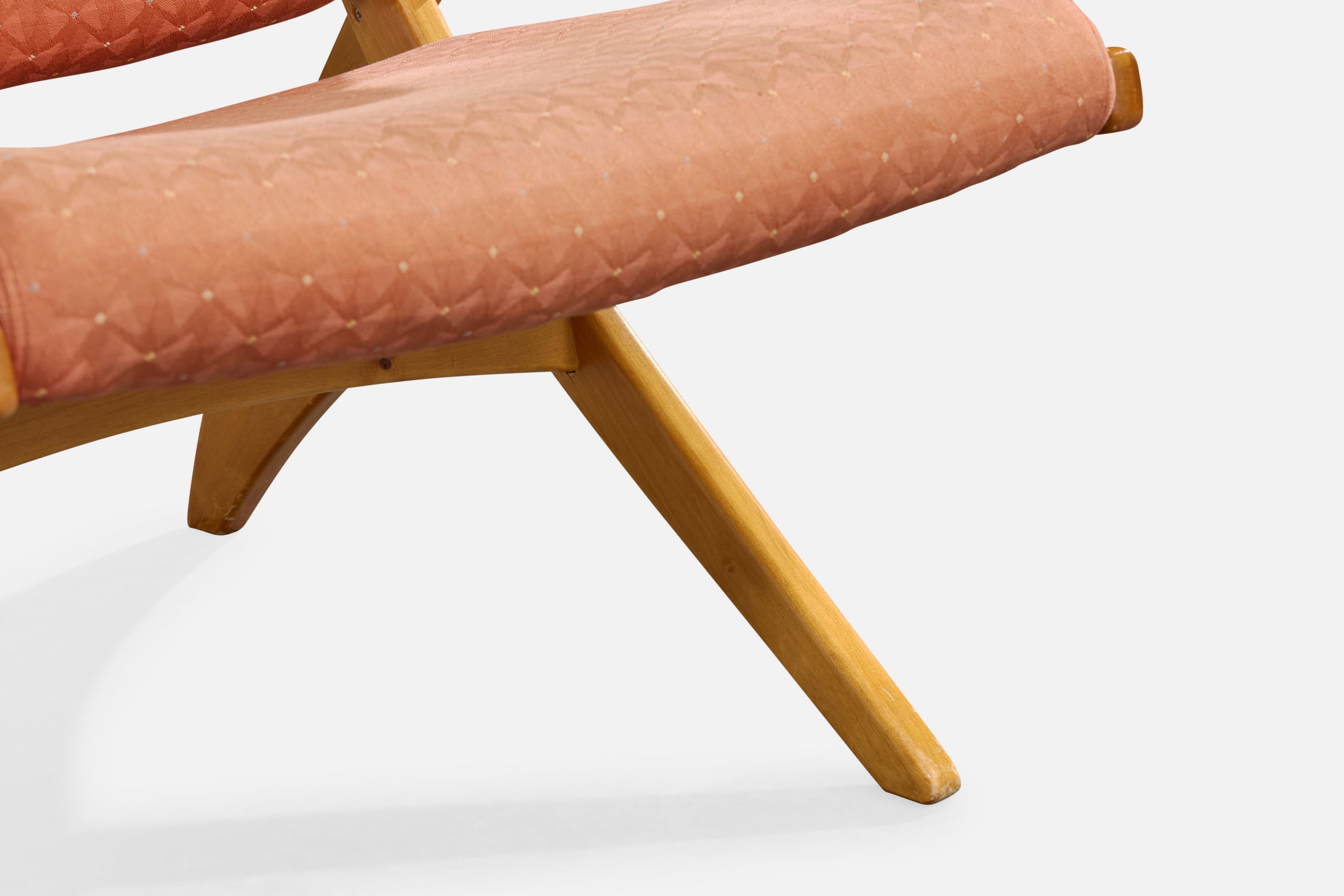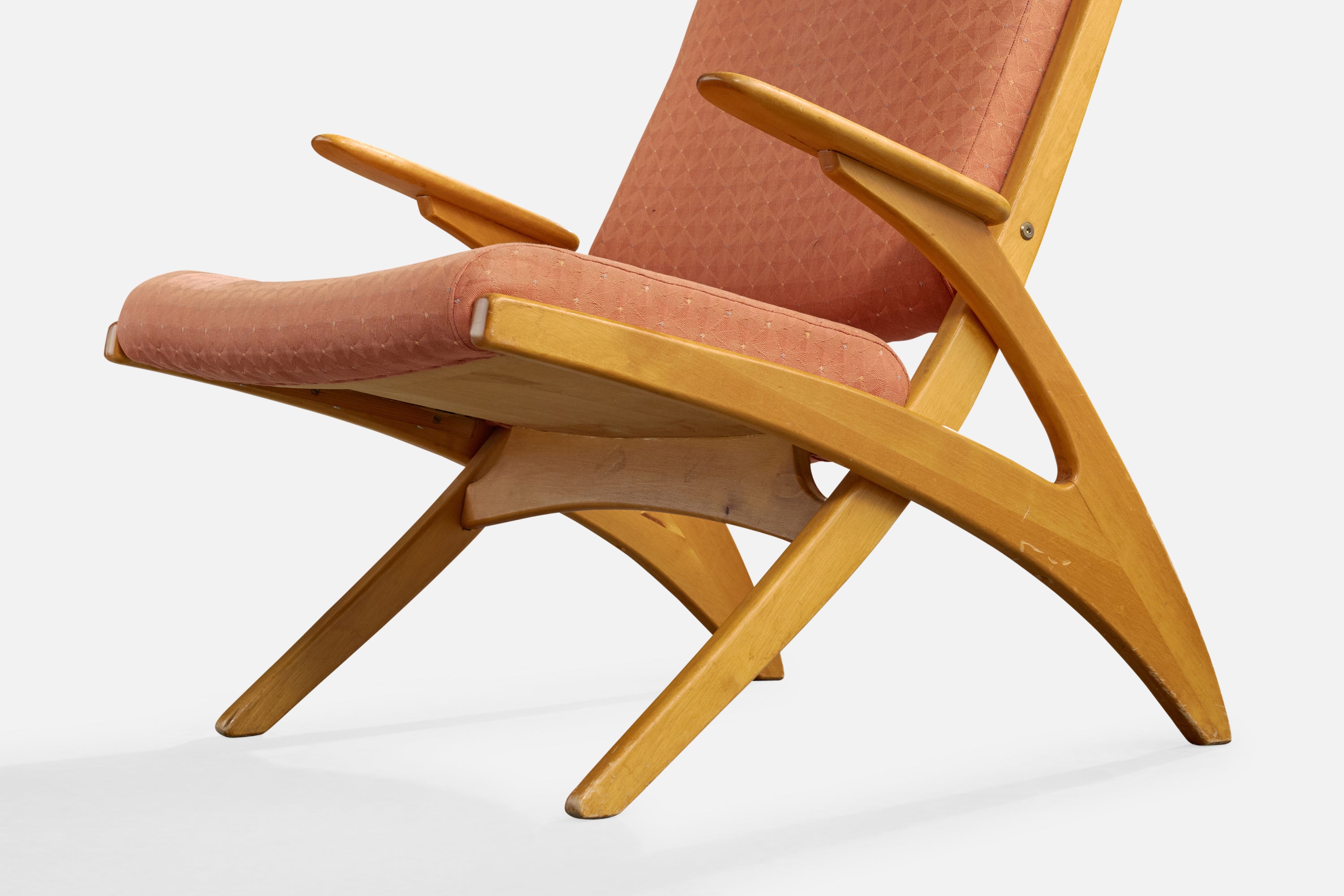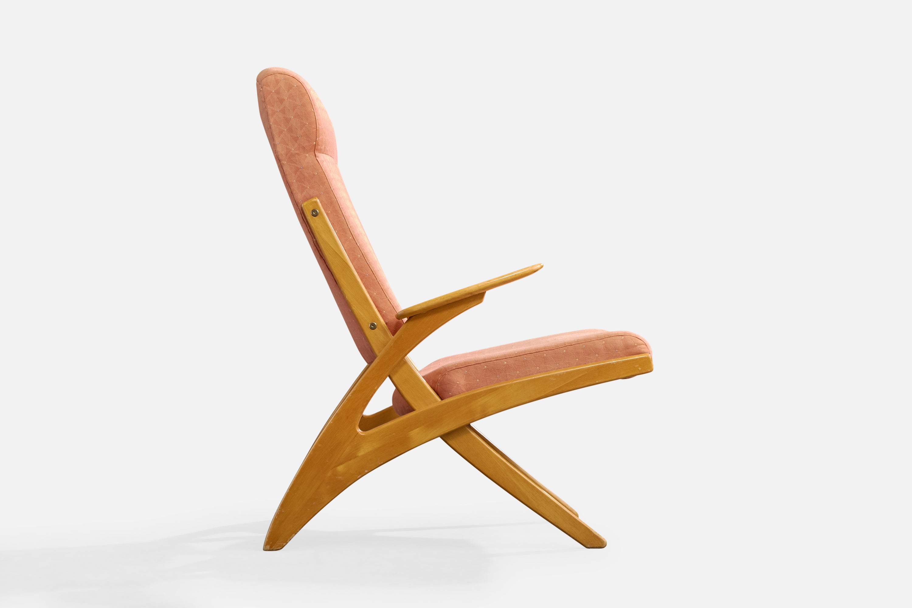 A birch and pink fabric lounge chair designed by Carin Bryggman, Finland, c. 1950s.