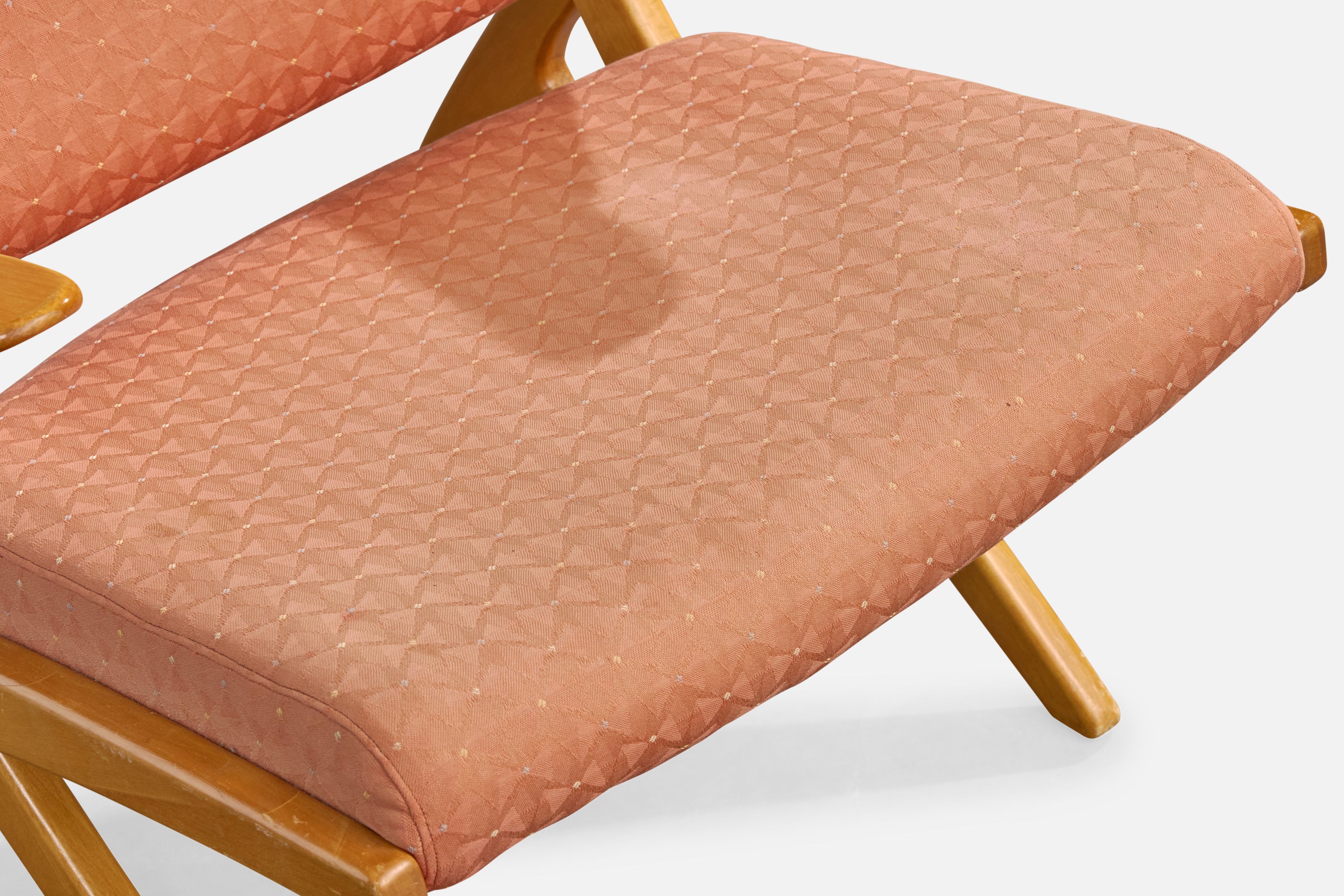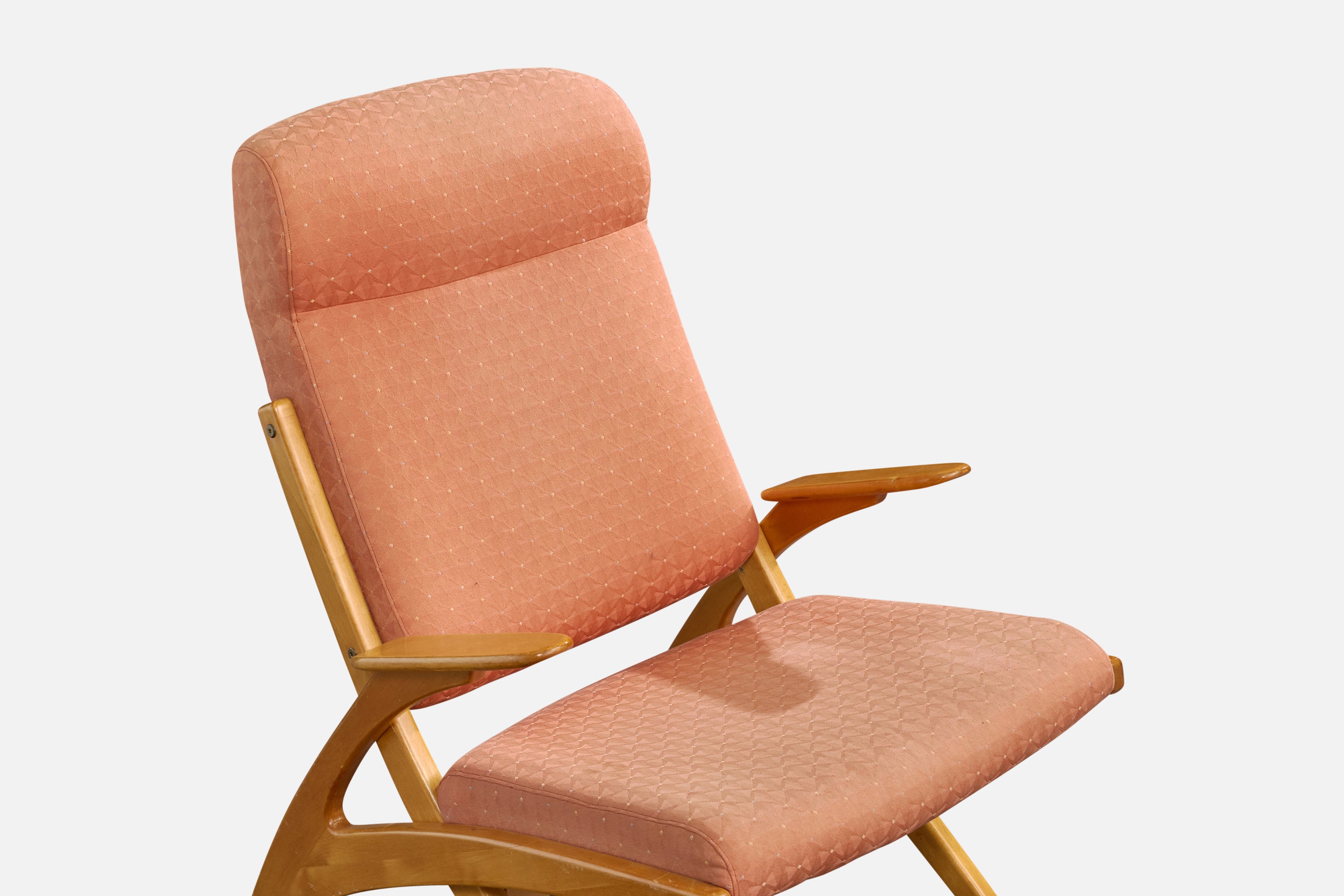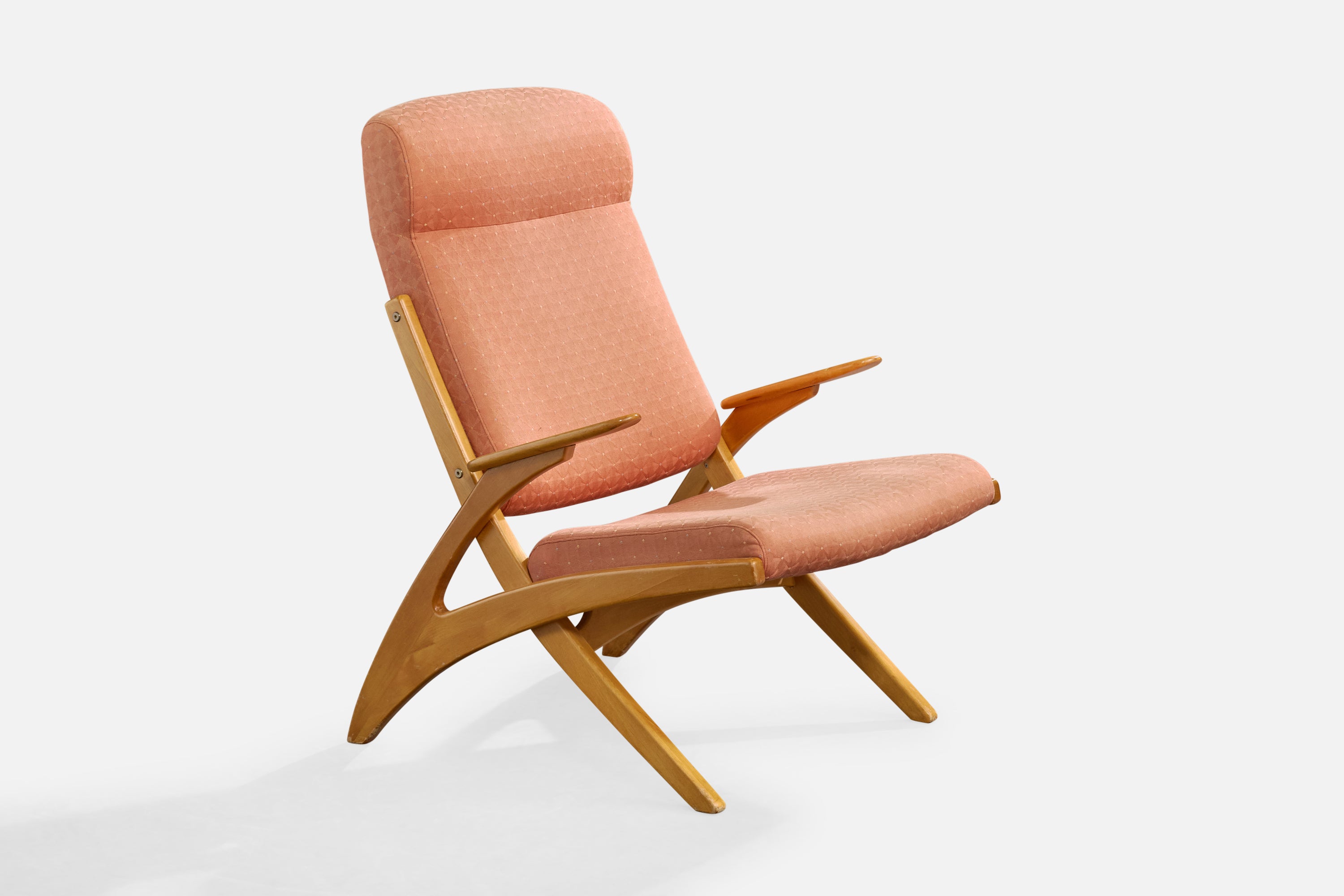 A birch and pink fabric lounge chair designed by Carin Bryggman, Finland, c. 1950s.