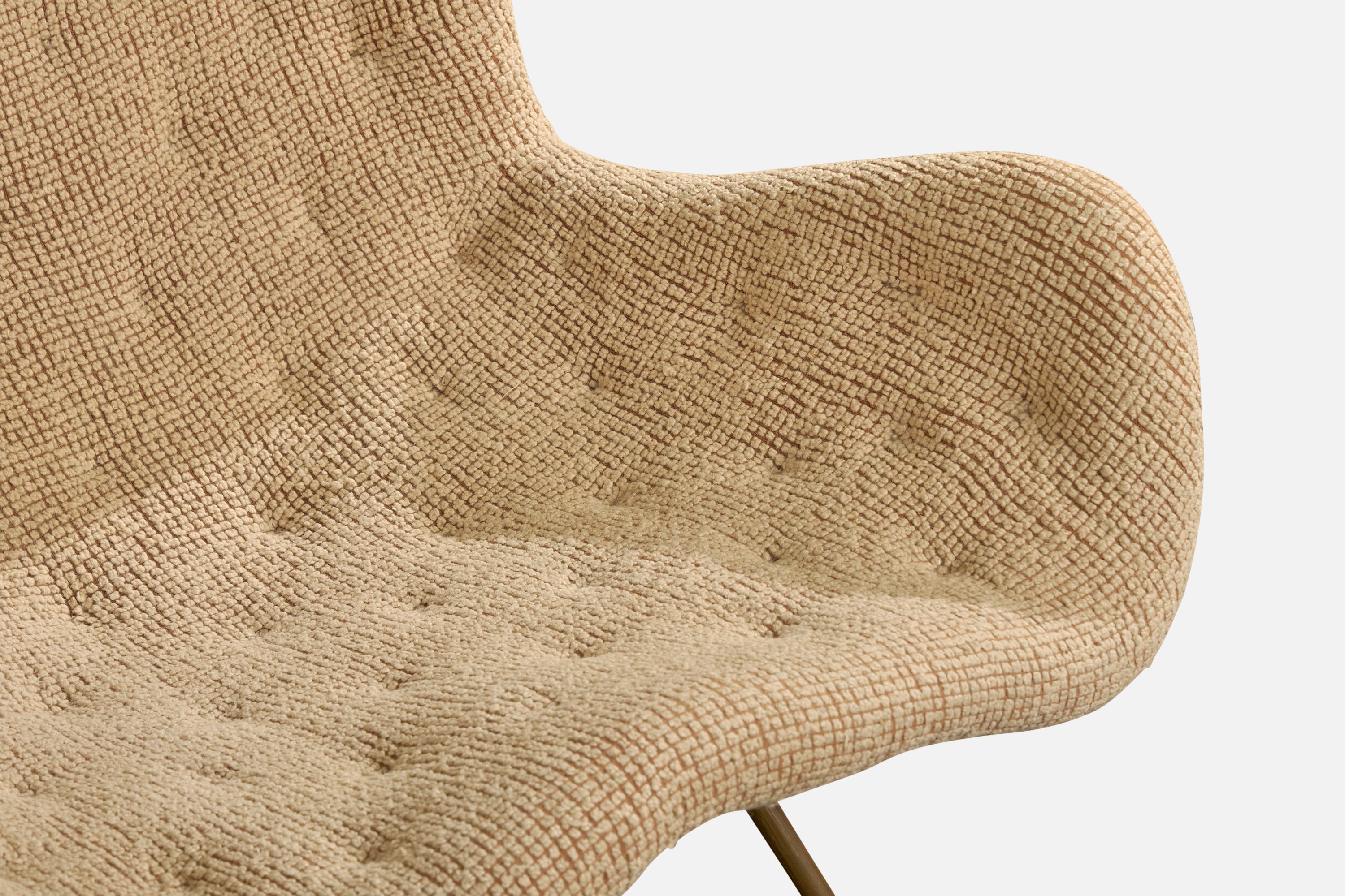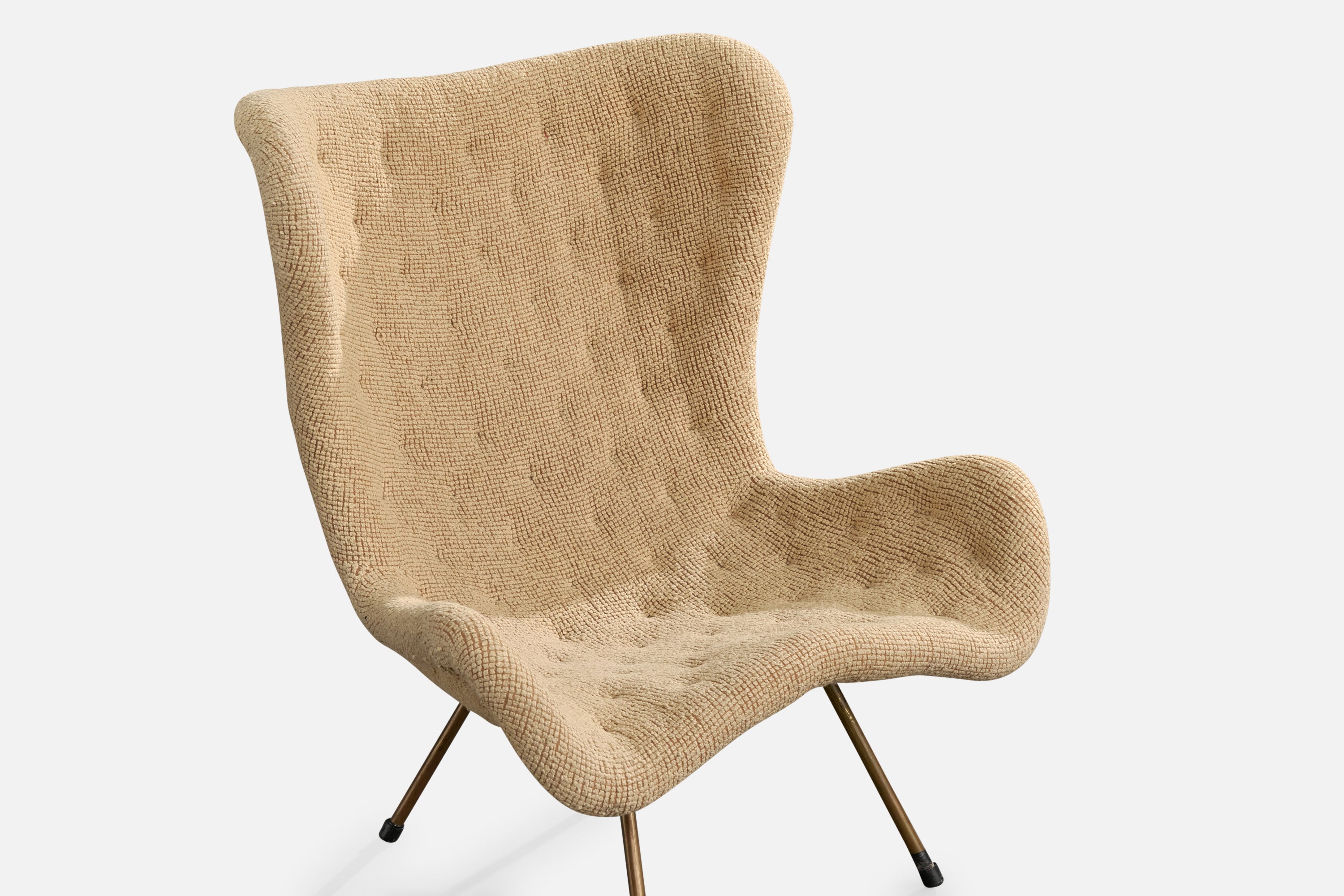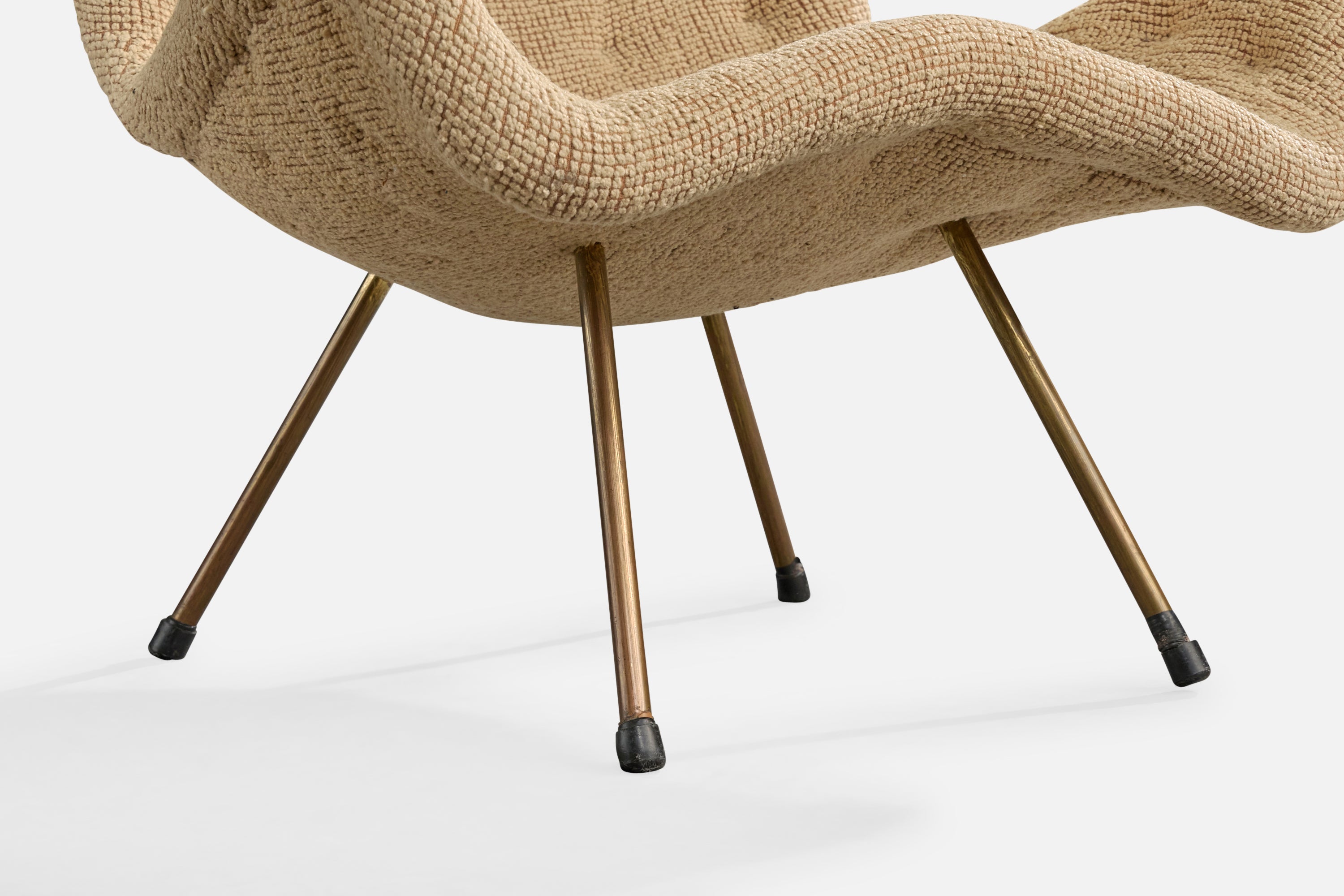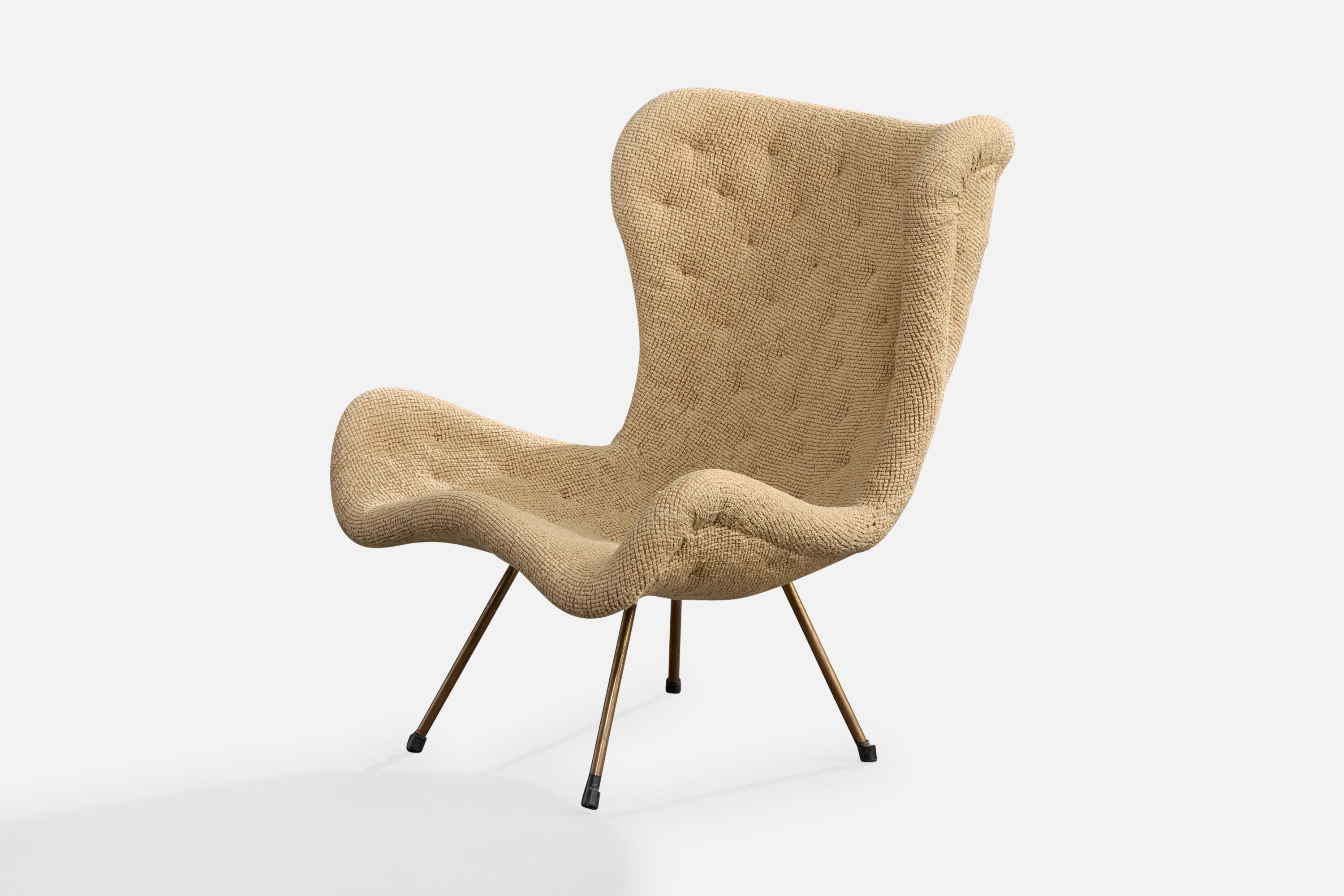 A beige fabric and brass lounge chair designed by Joseph Grill and produced by Payer Decor, Austria, c. 1950s.