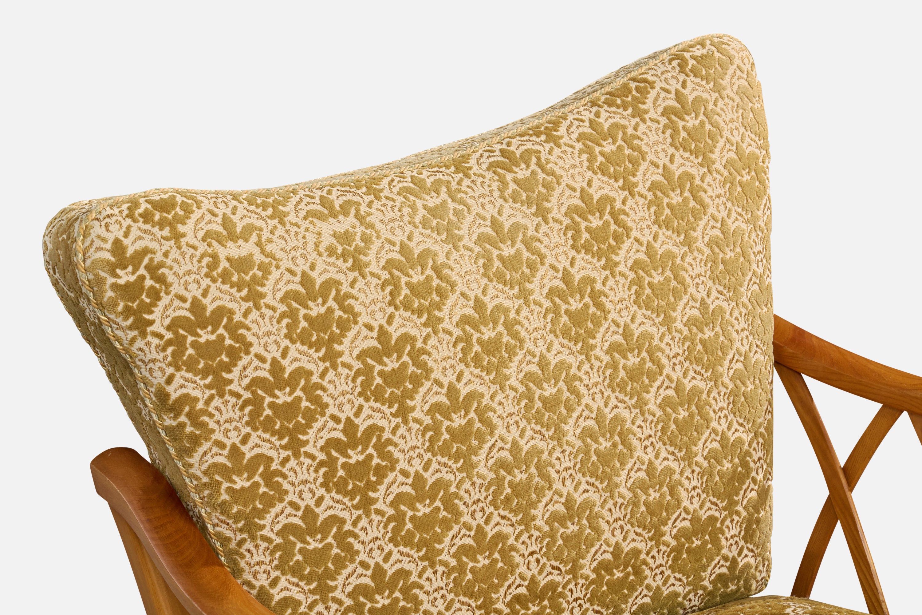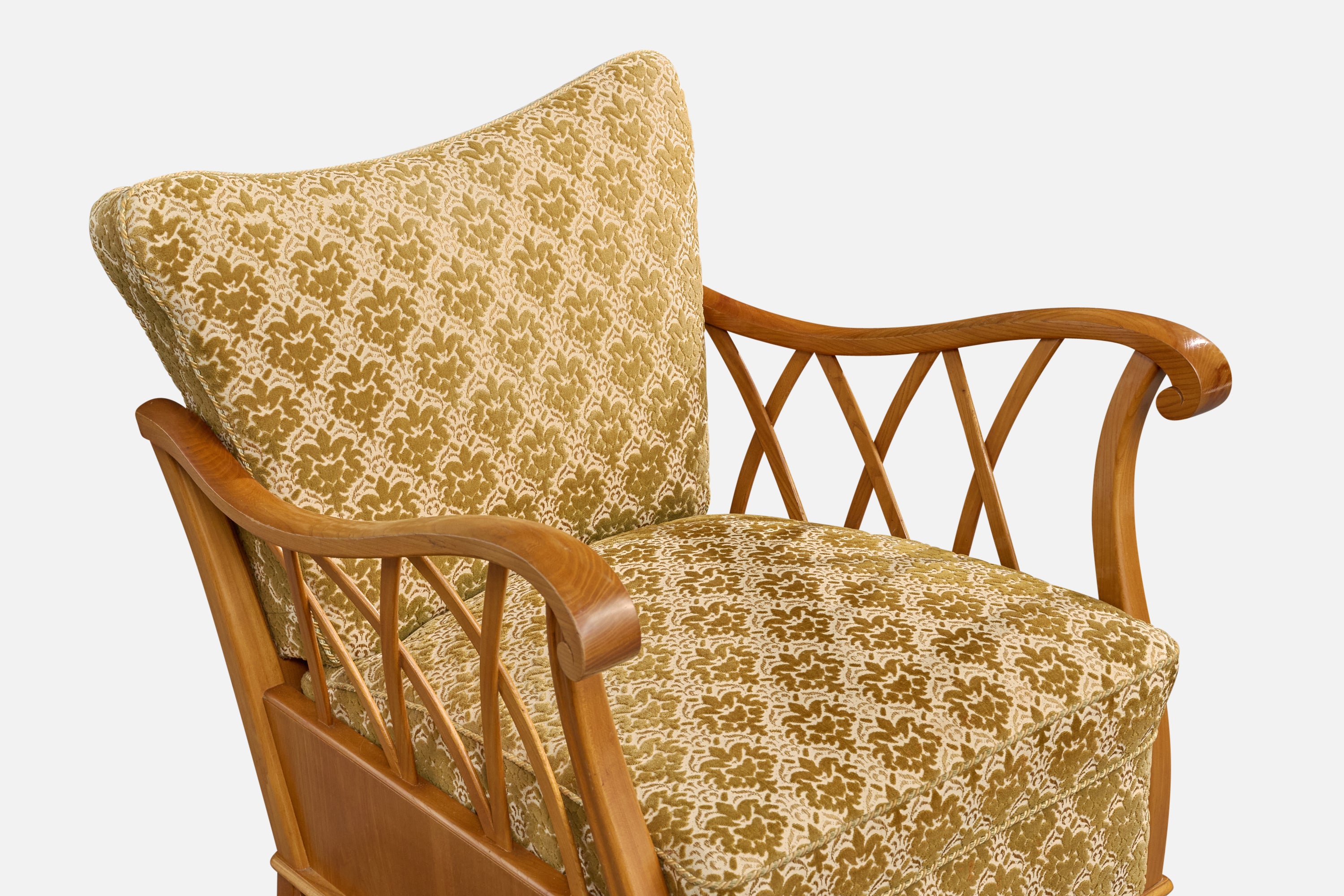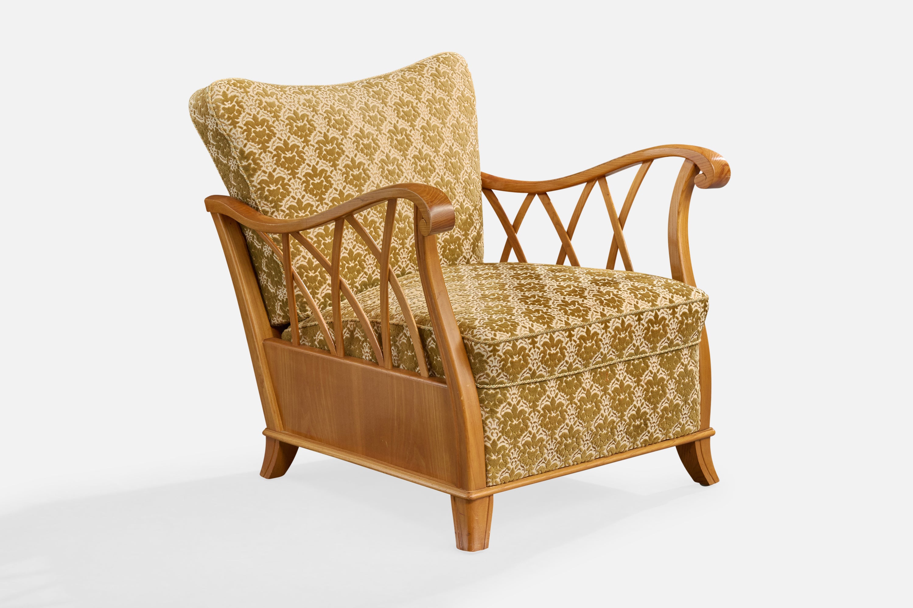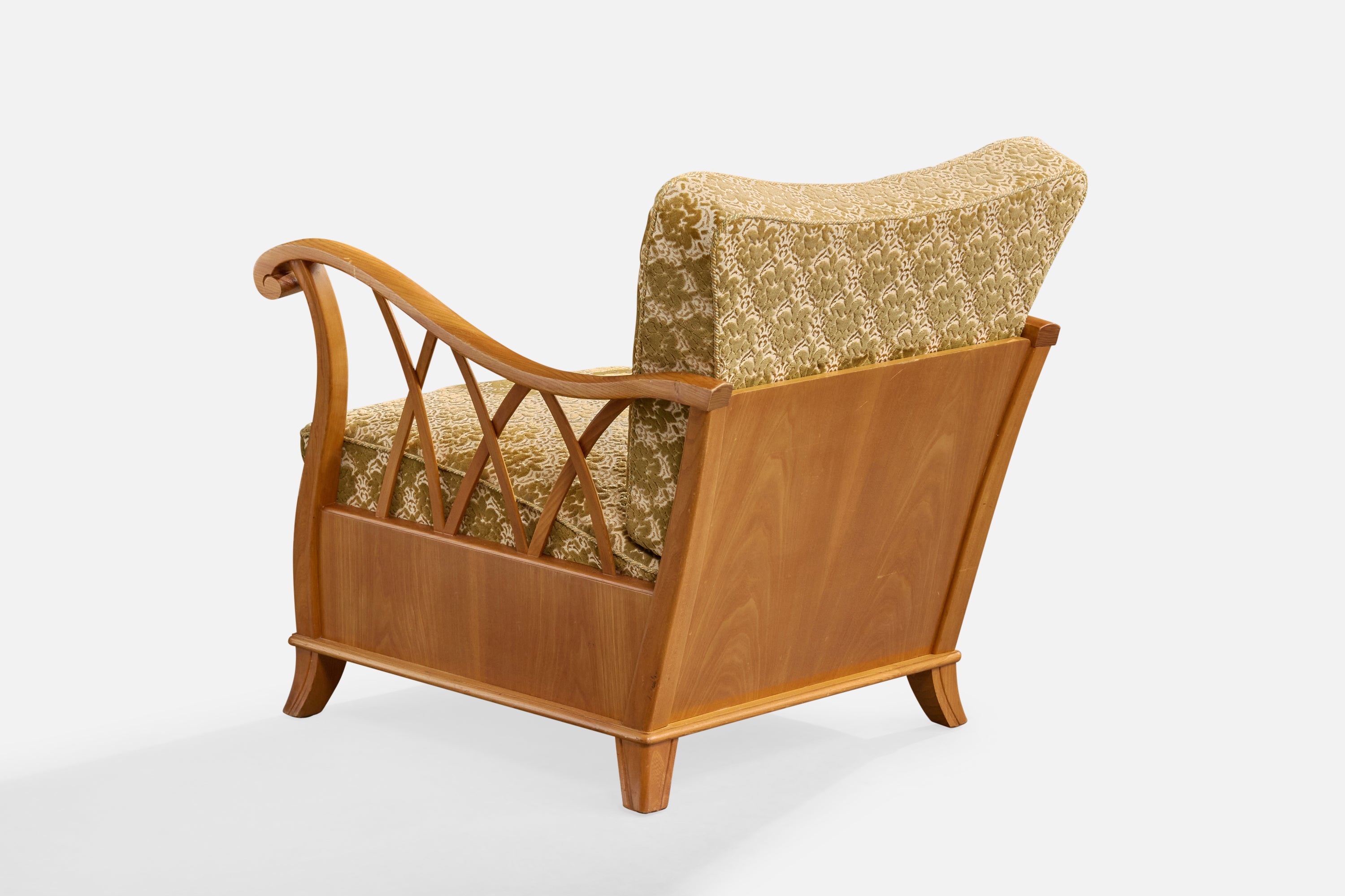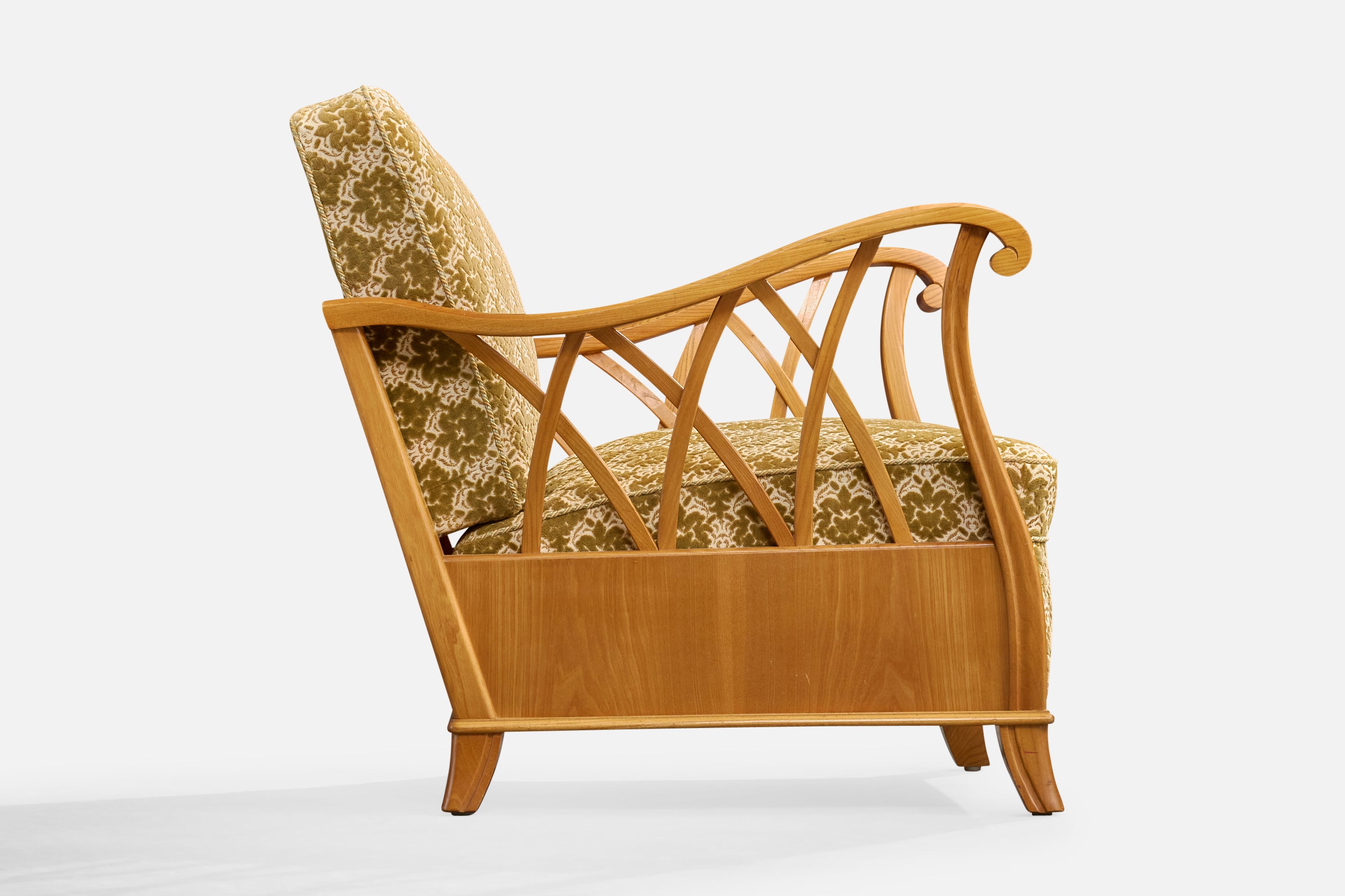 Swedish Designer, Lounge Chair, Elm, Fabric, Sweden, 1930s