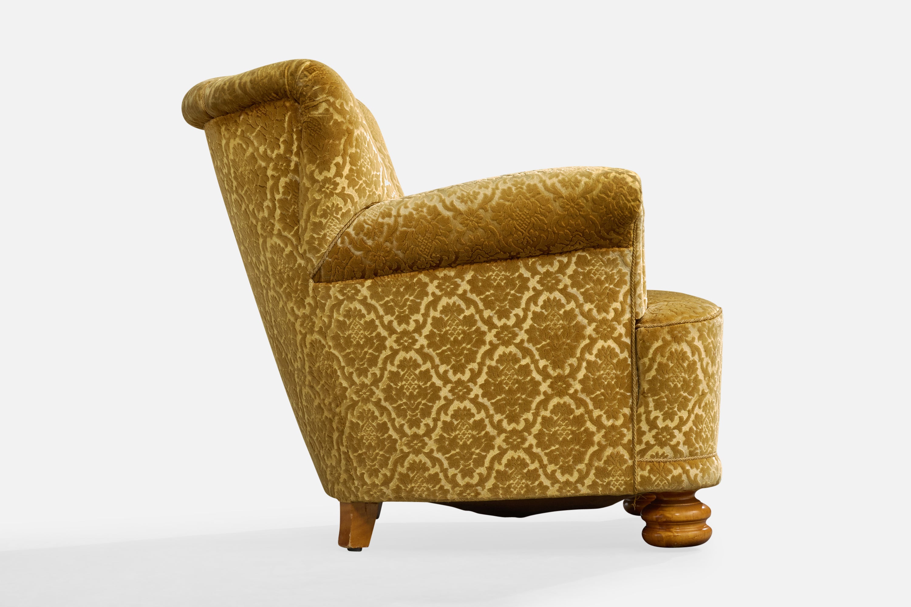 Swedish Designer, Lounge Chair, Velvet, Wood, Sweden, 1940s