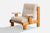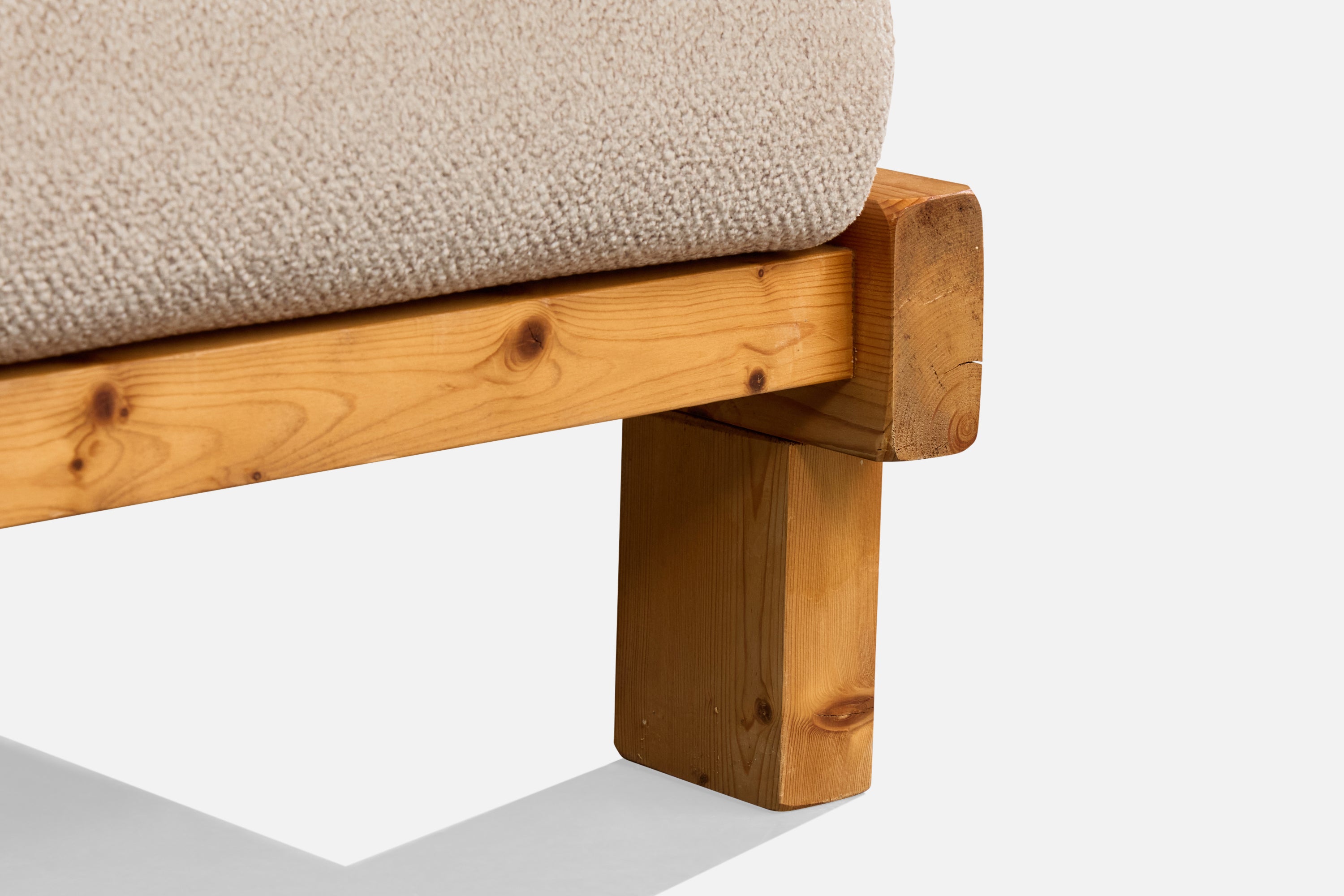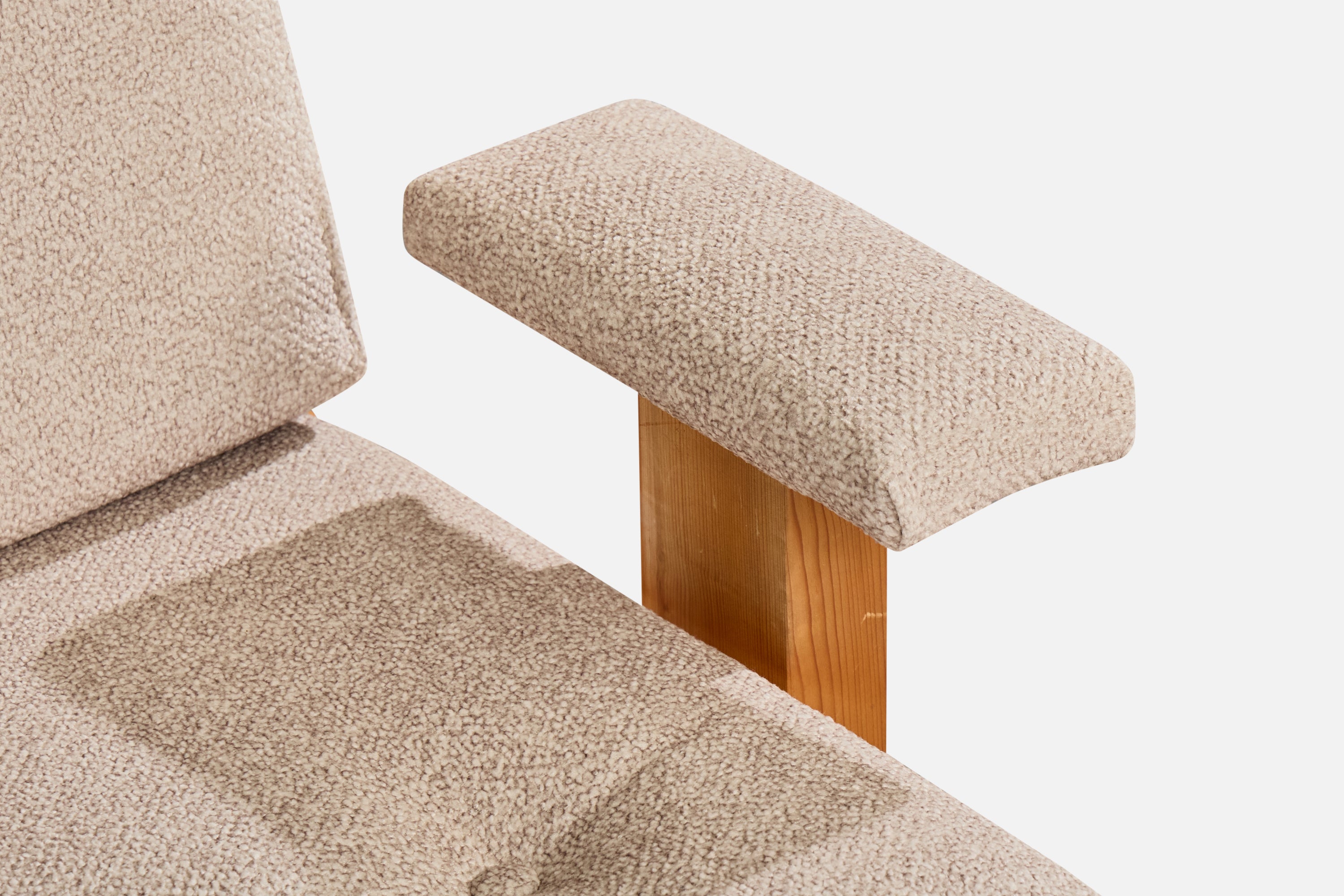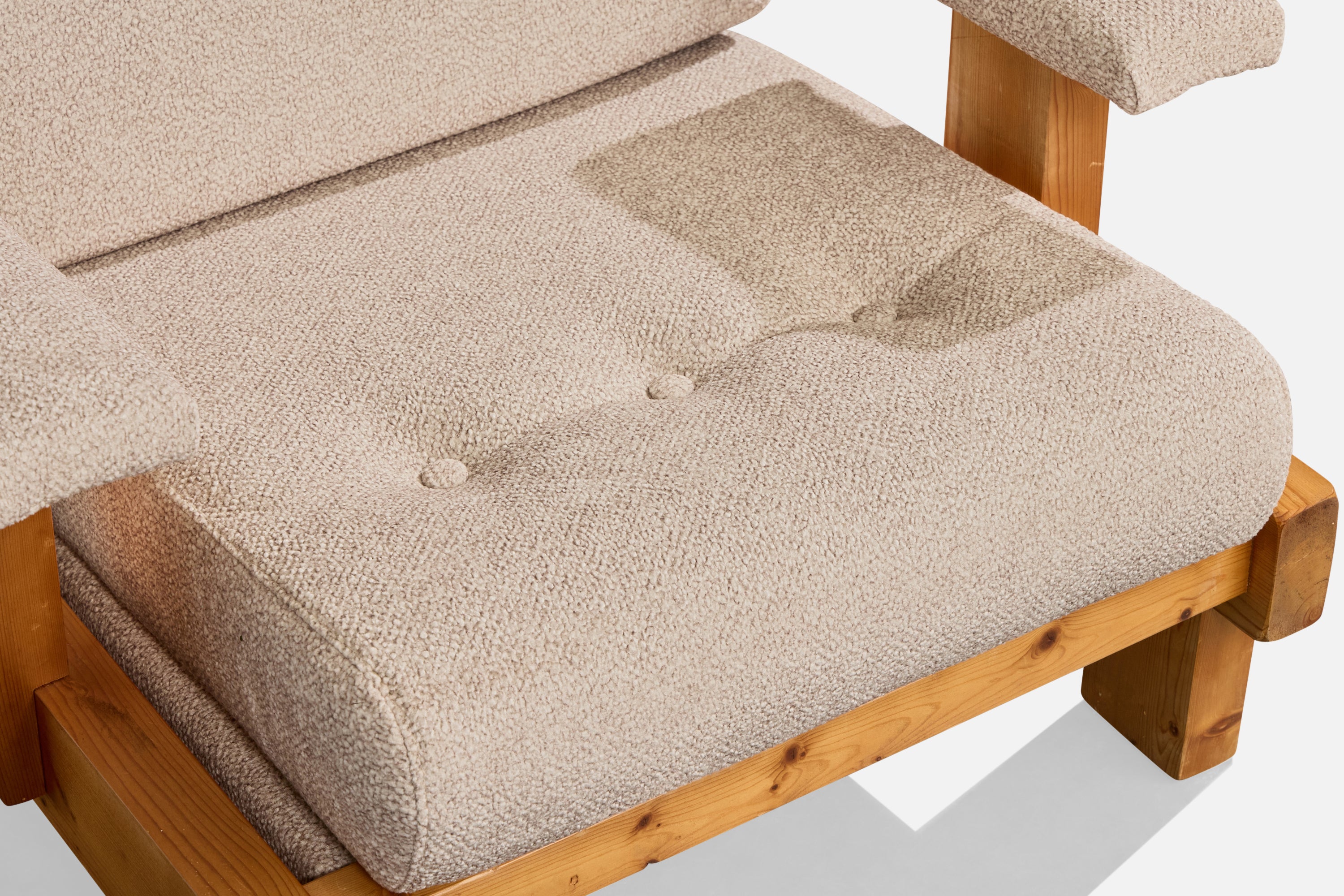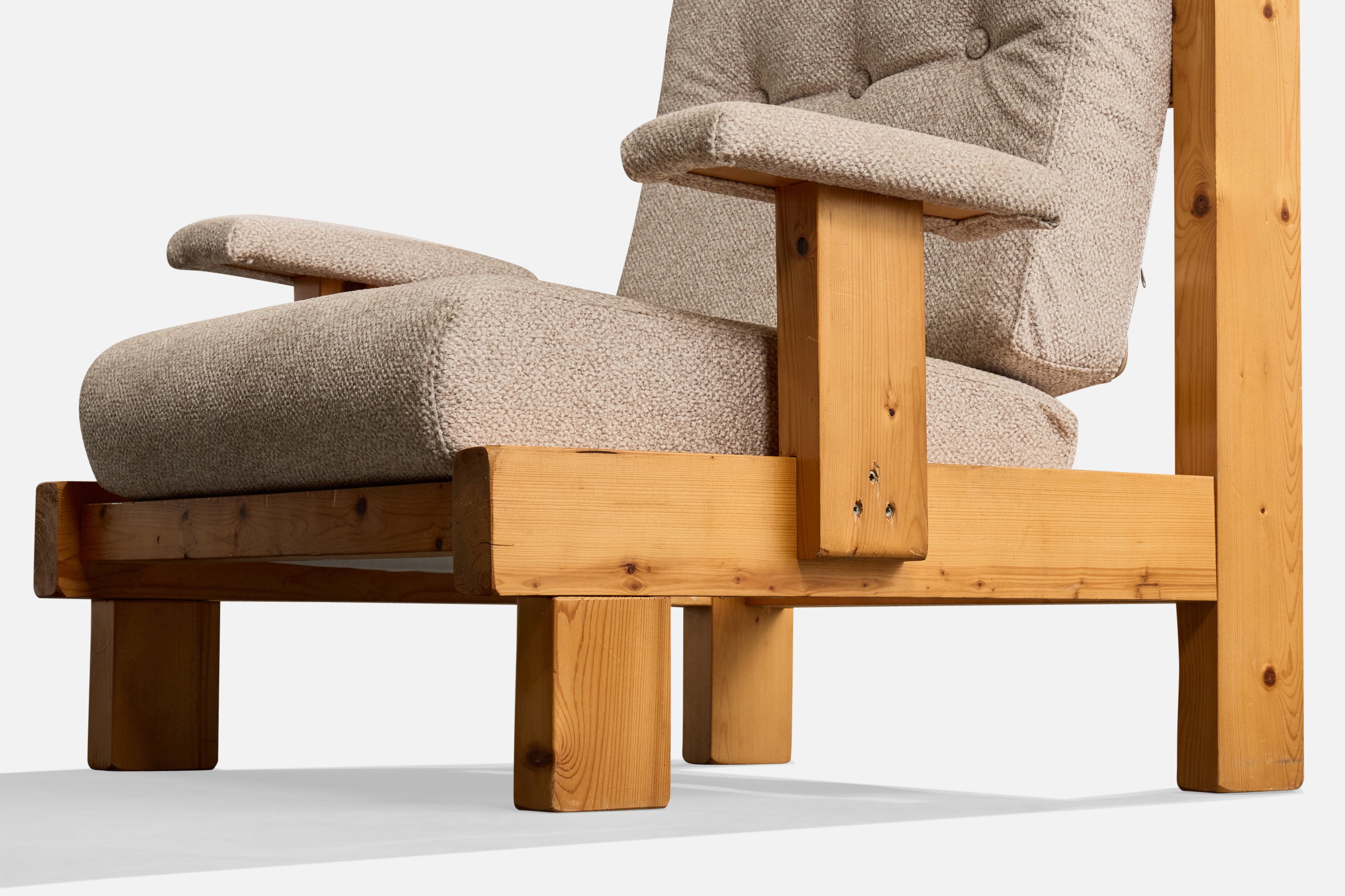 A pine and off-white fabric lounge chair likely designed and produced in France, c. 1980s.
