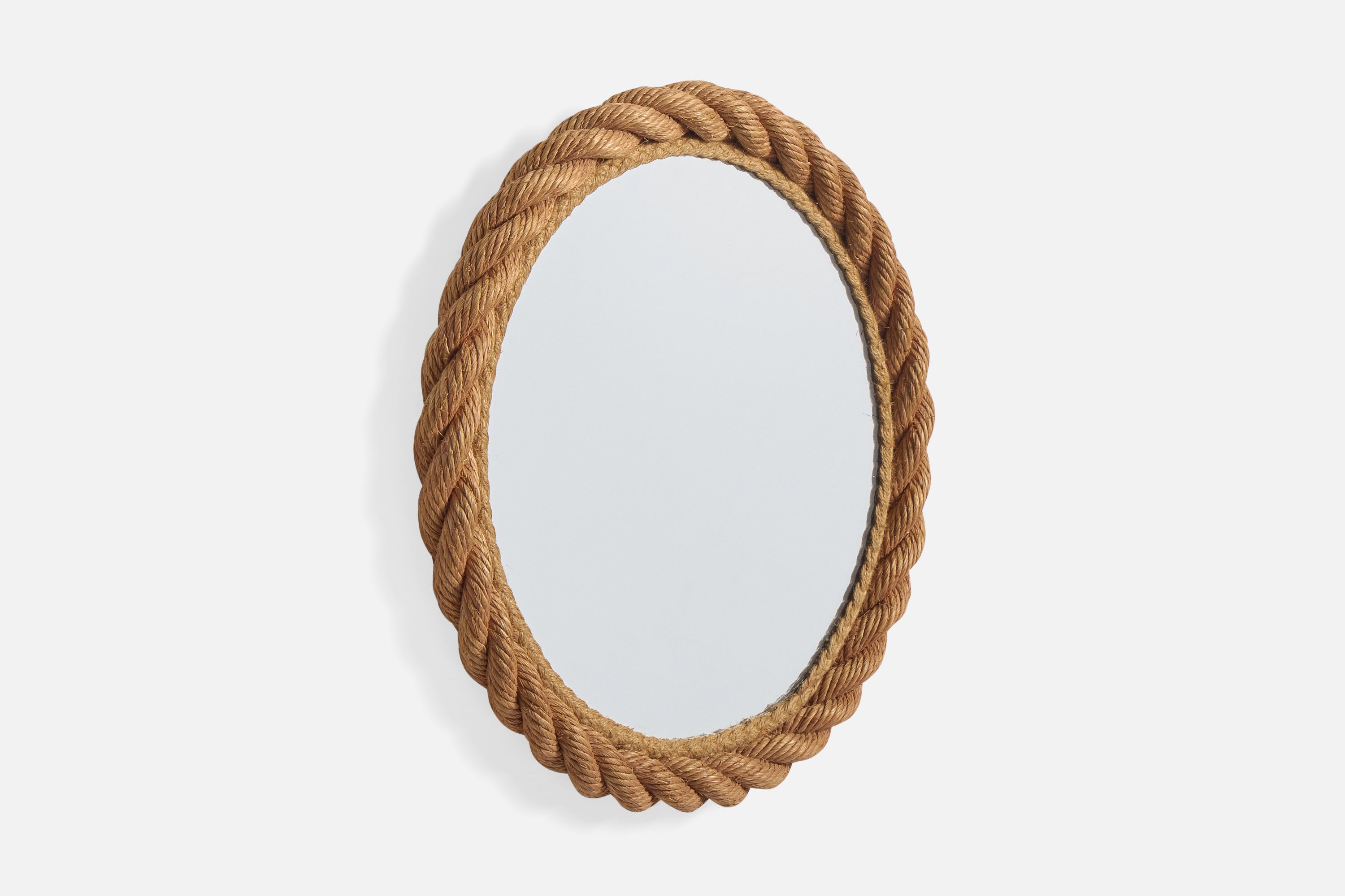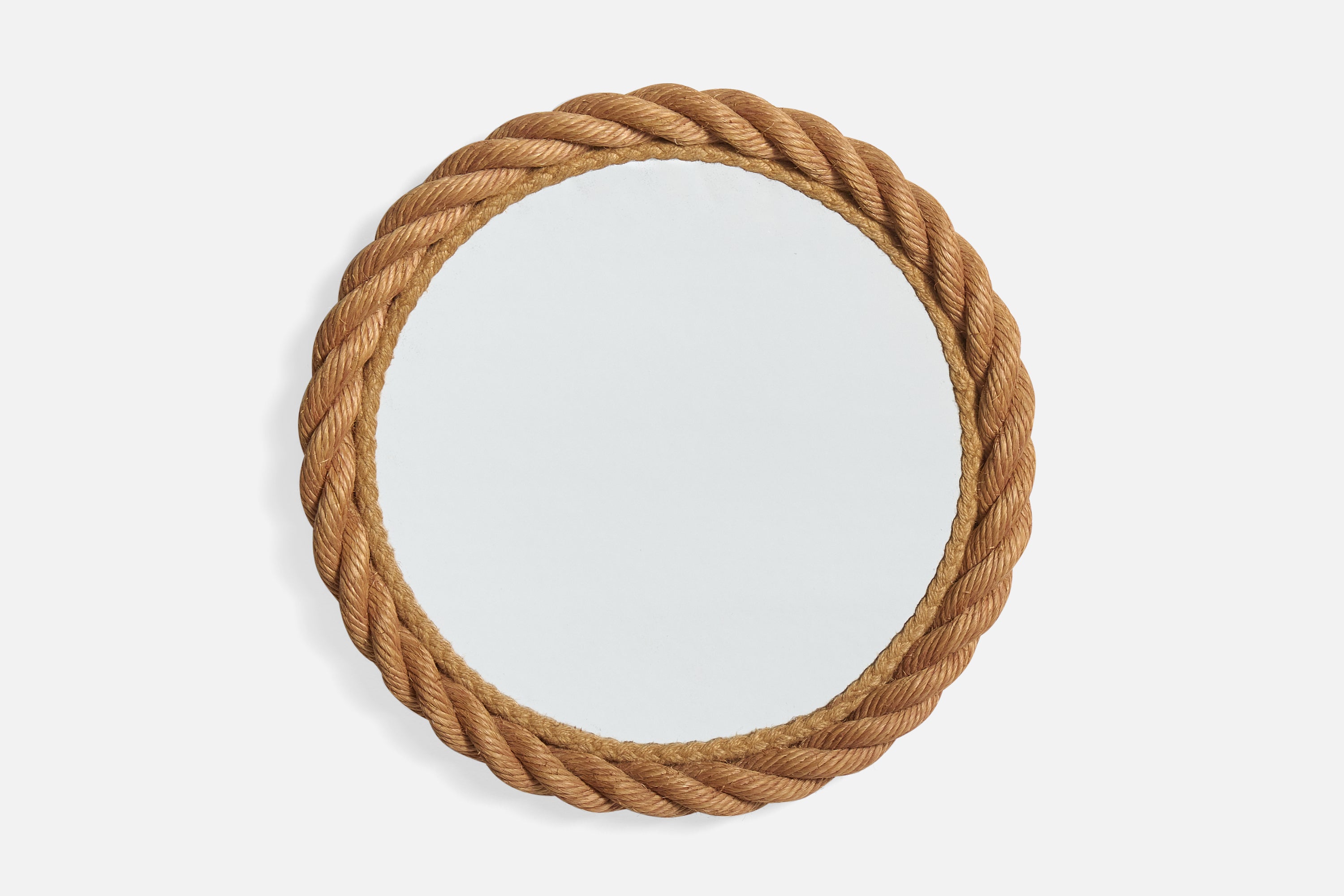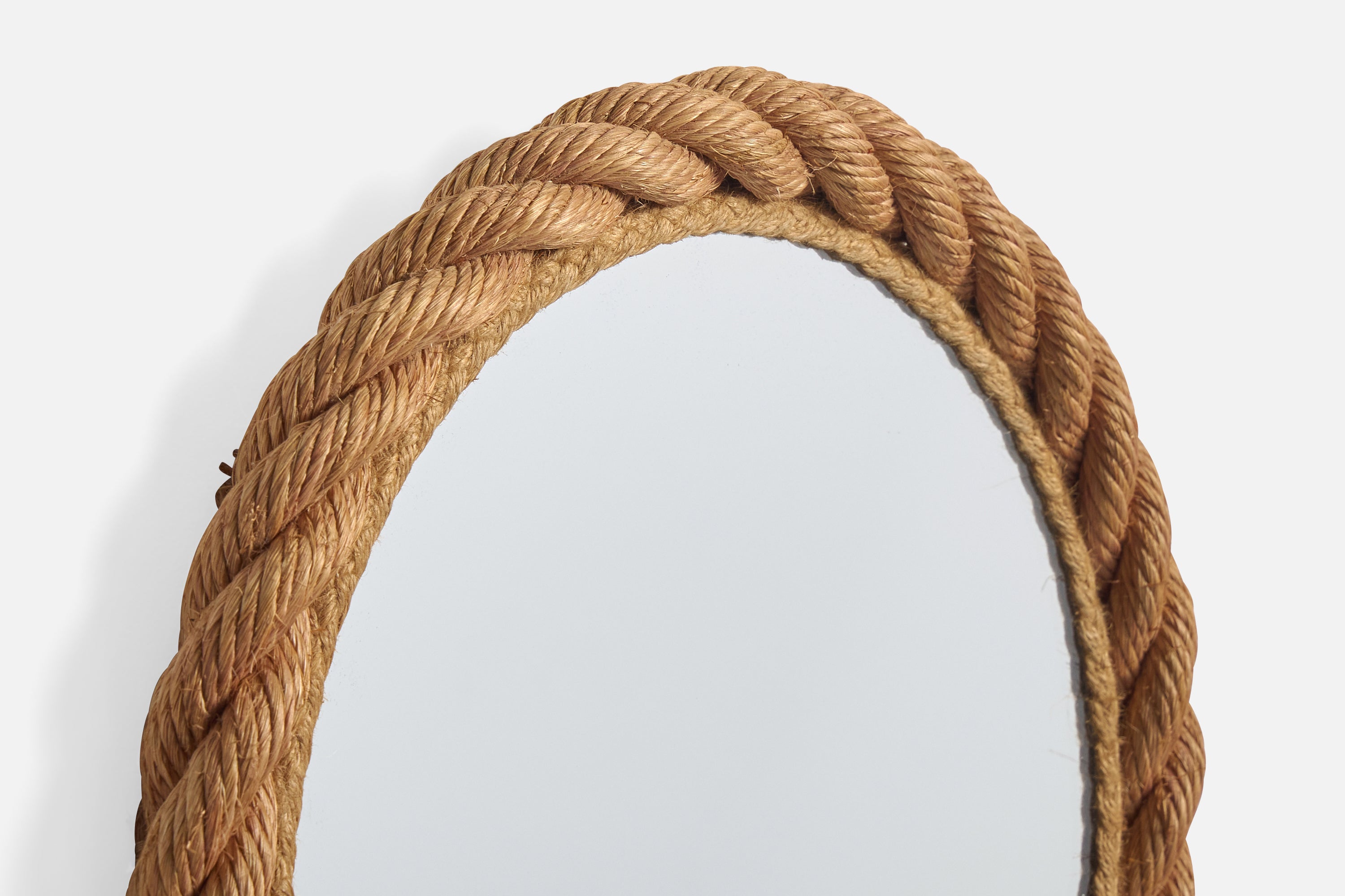 A brown rope wall mirror designed and produced in France, c. 1970s.