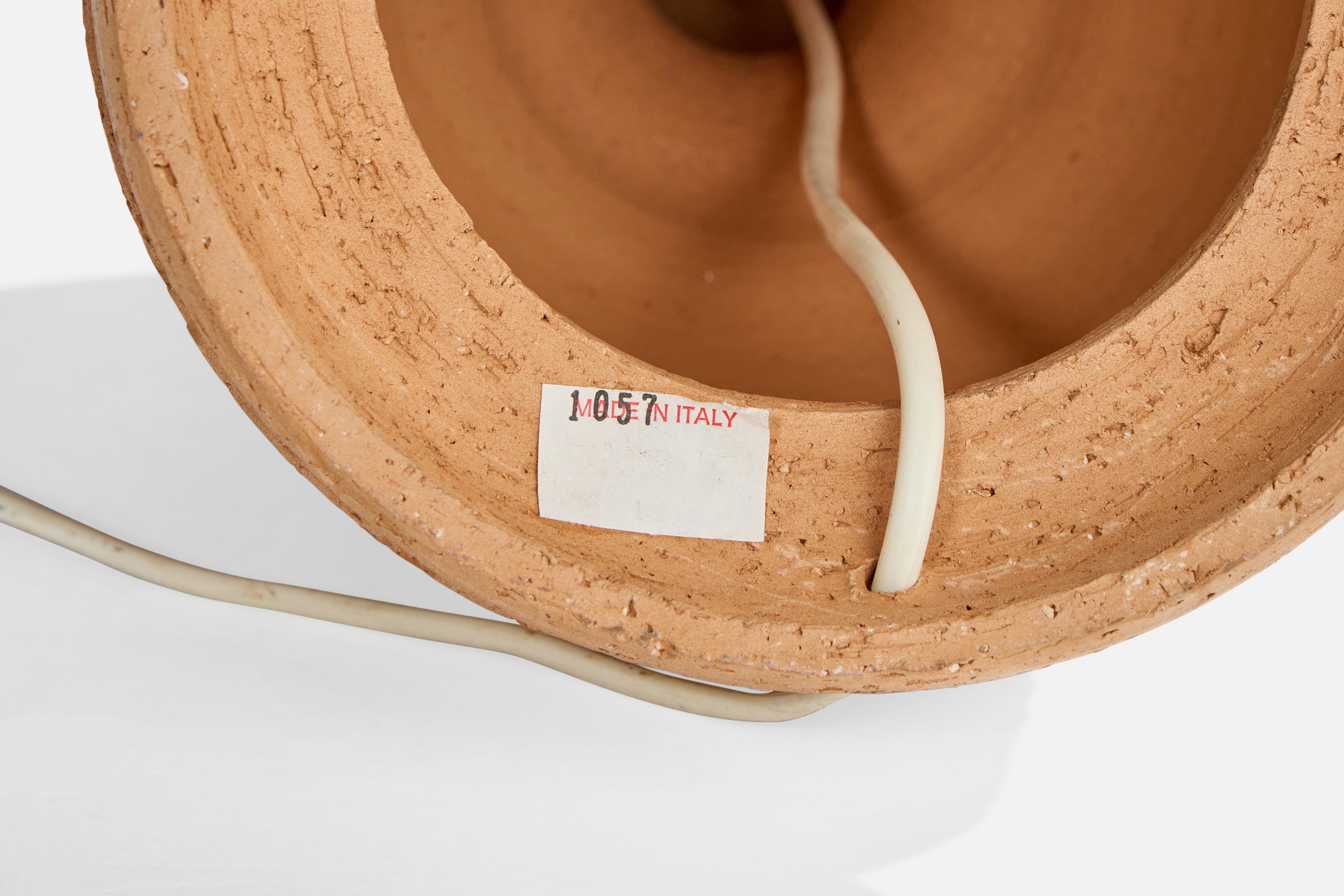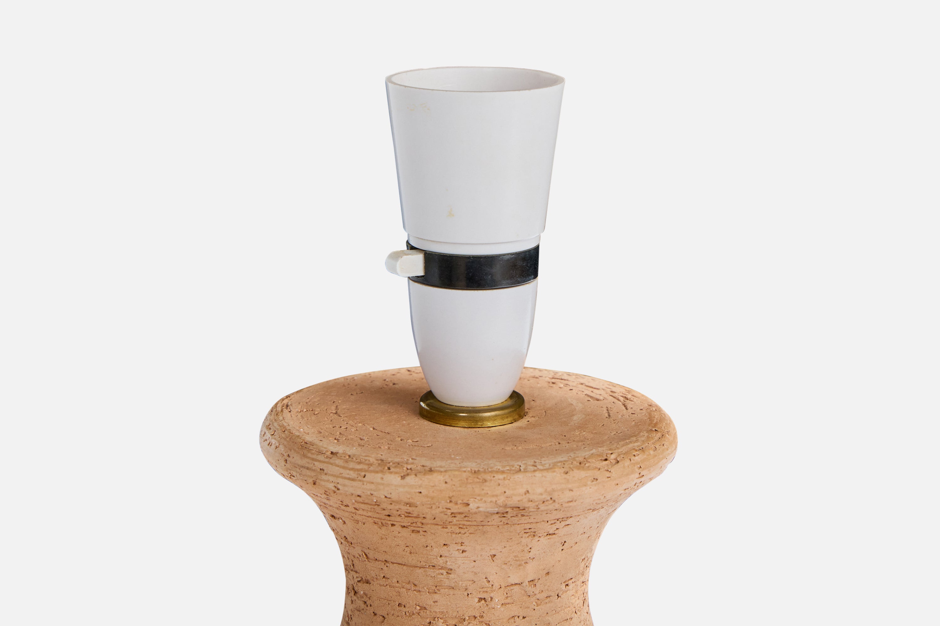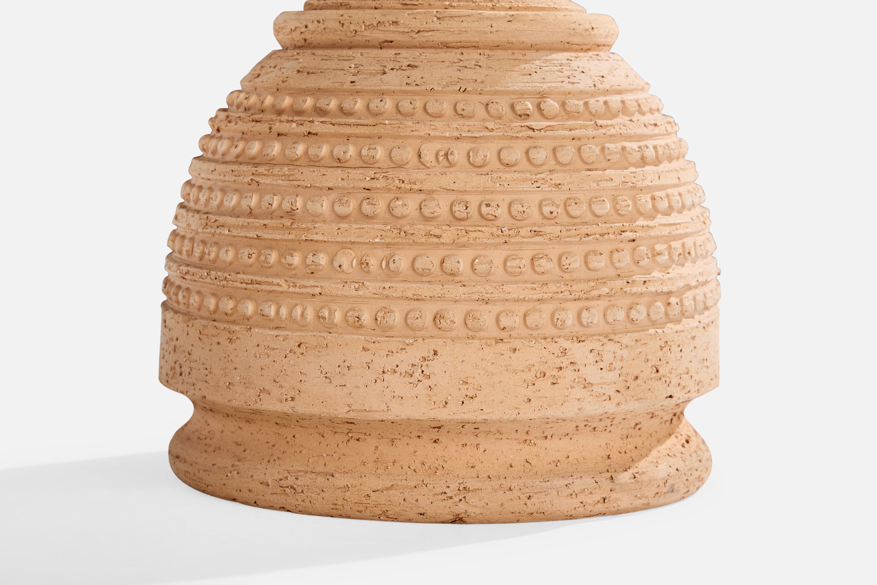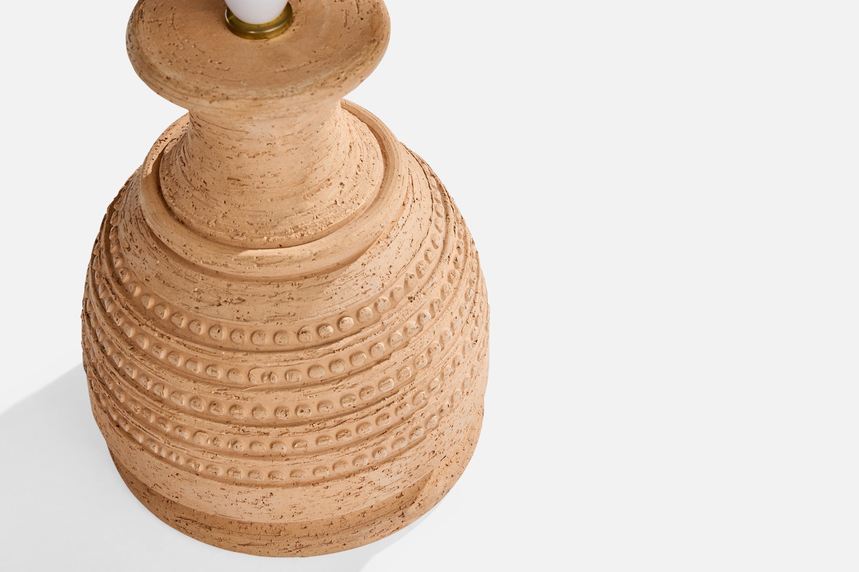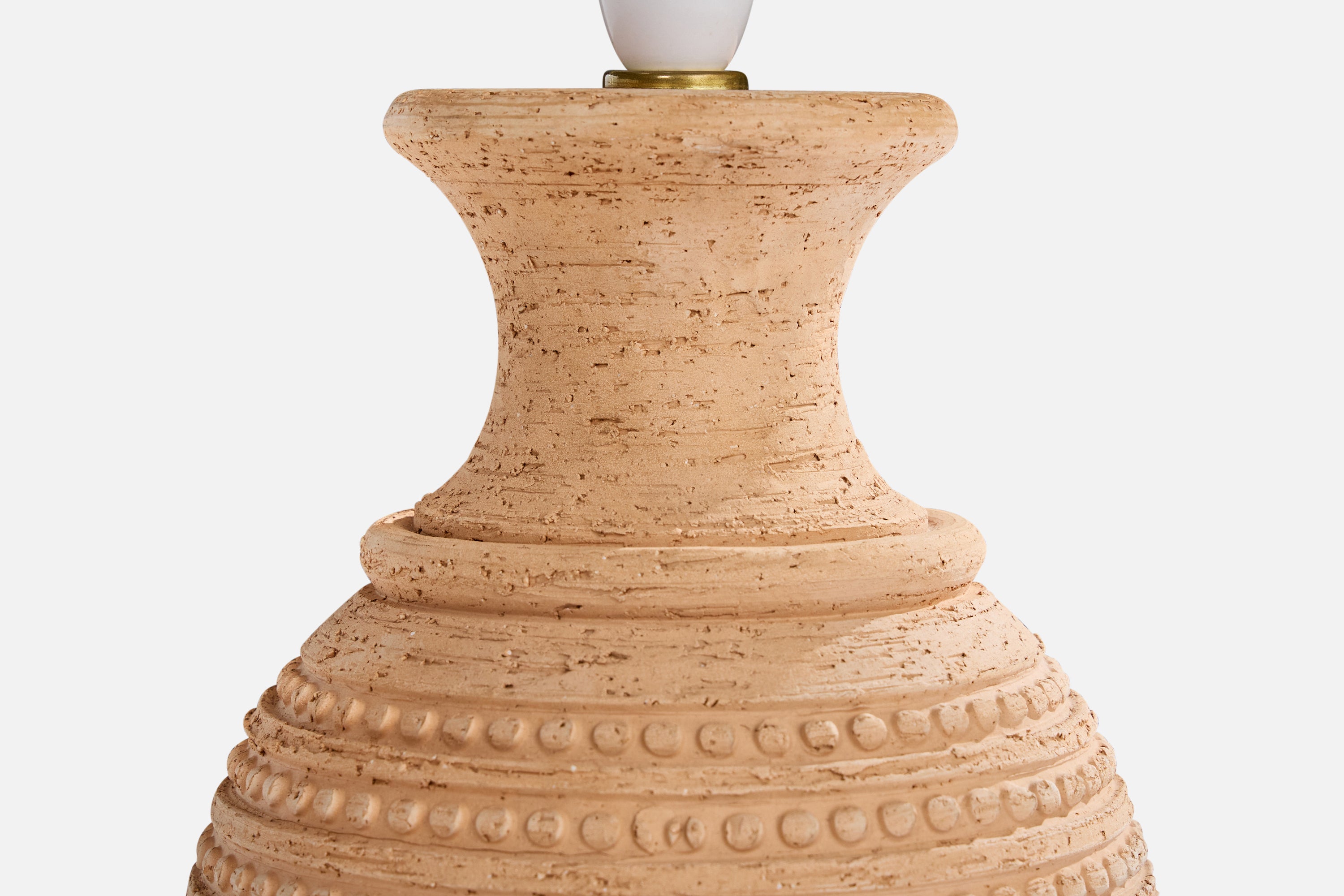 An unglazed beige ceramic table lamp designed and produced in Italy, c. 1960s.