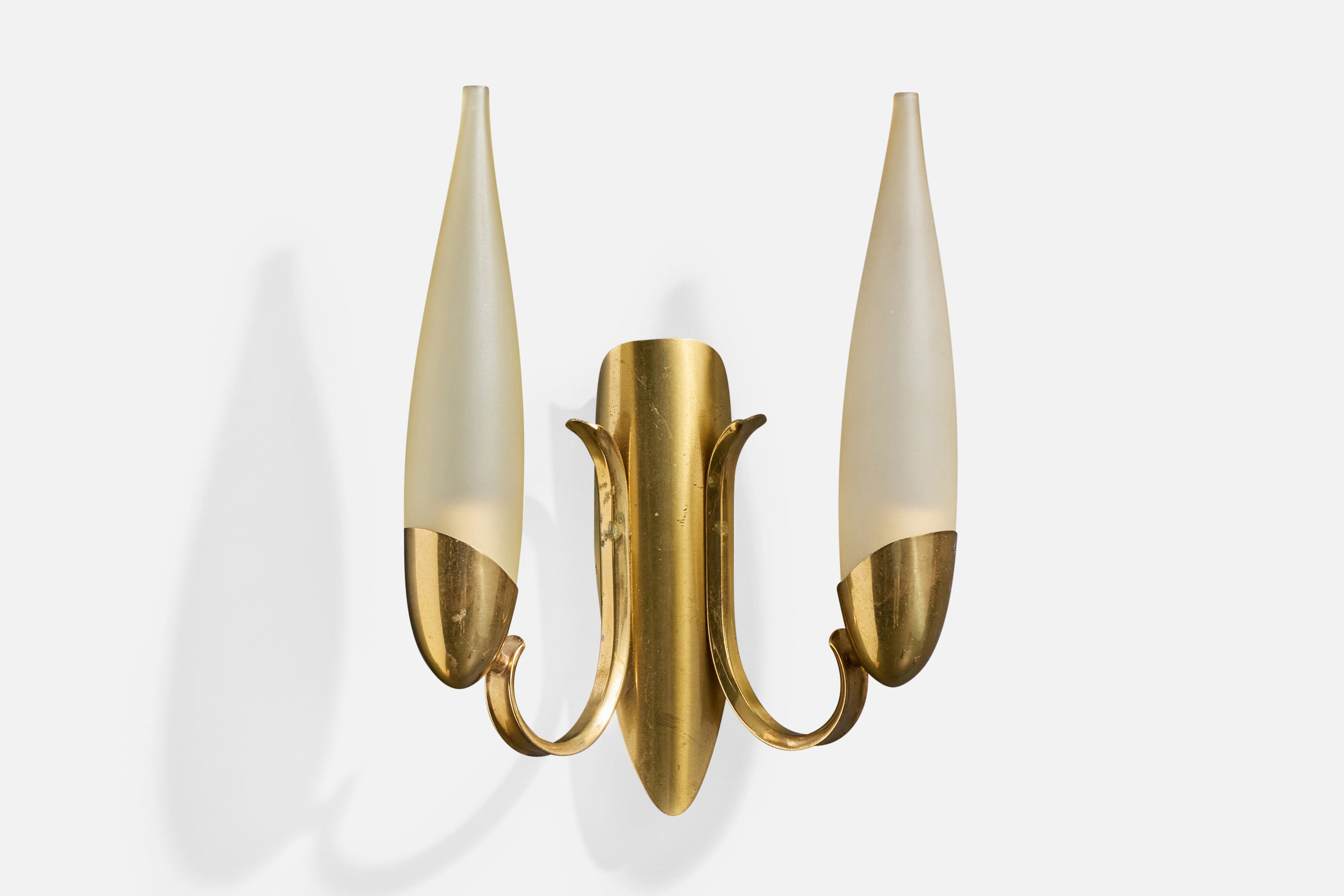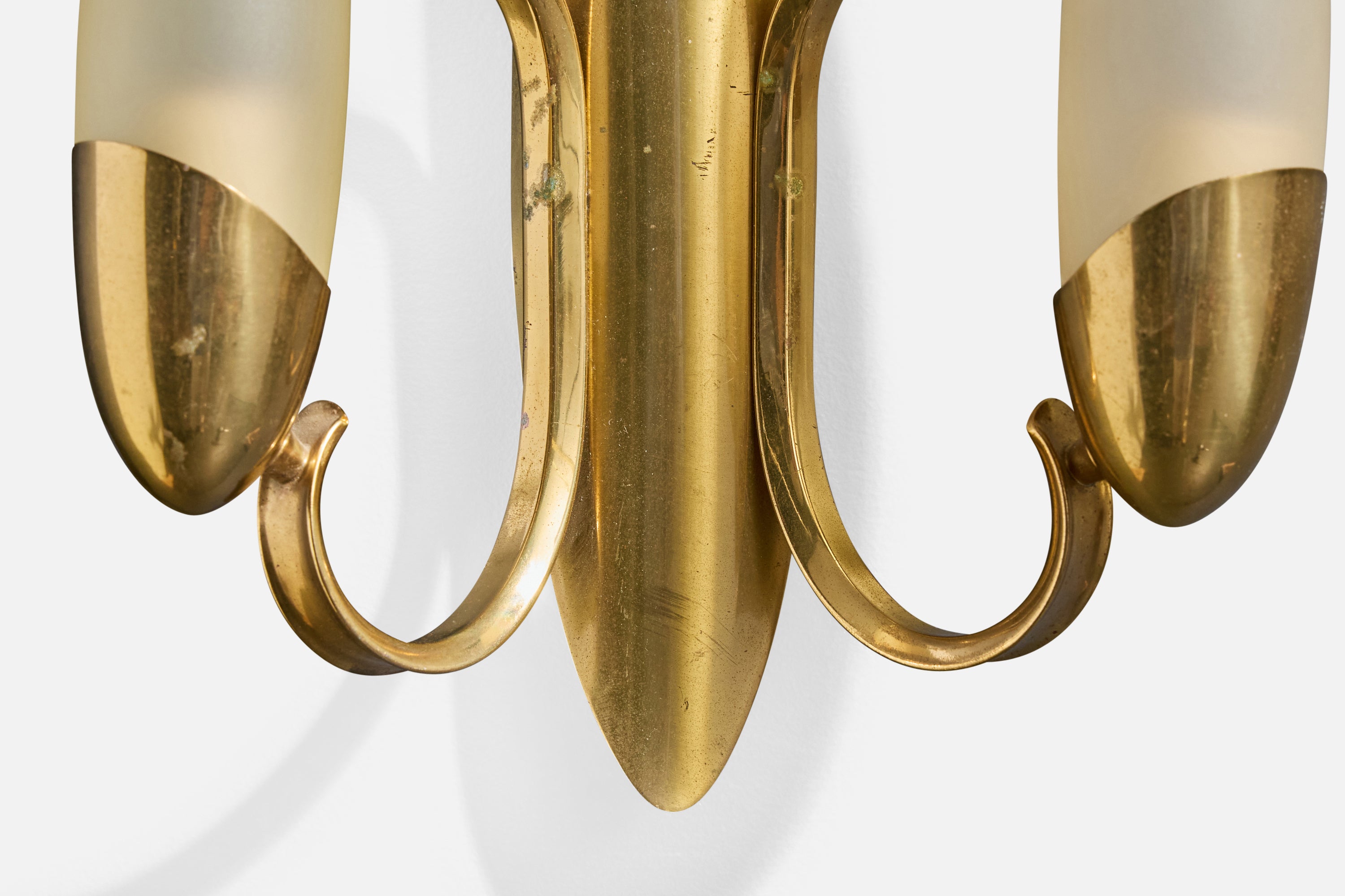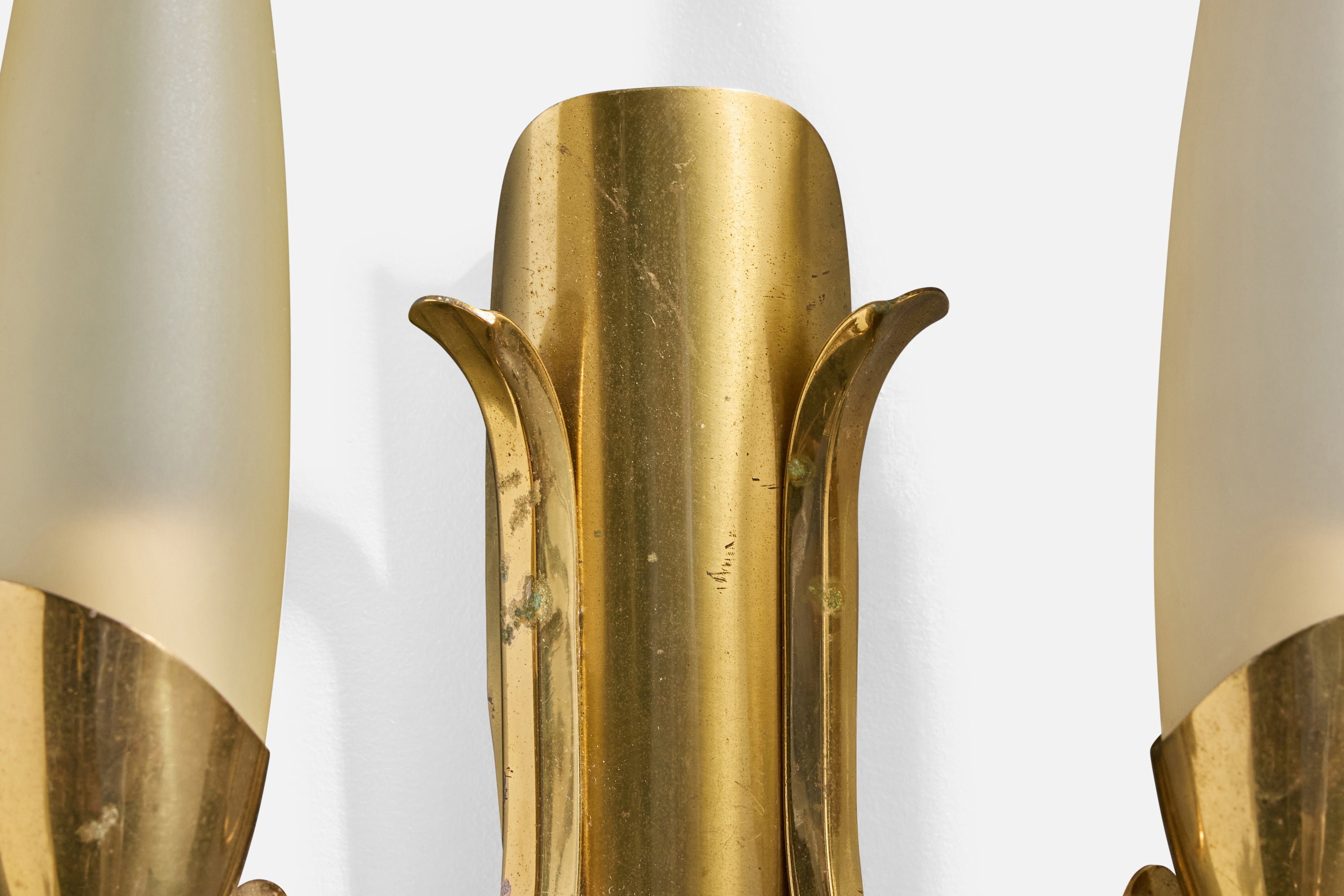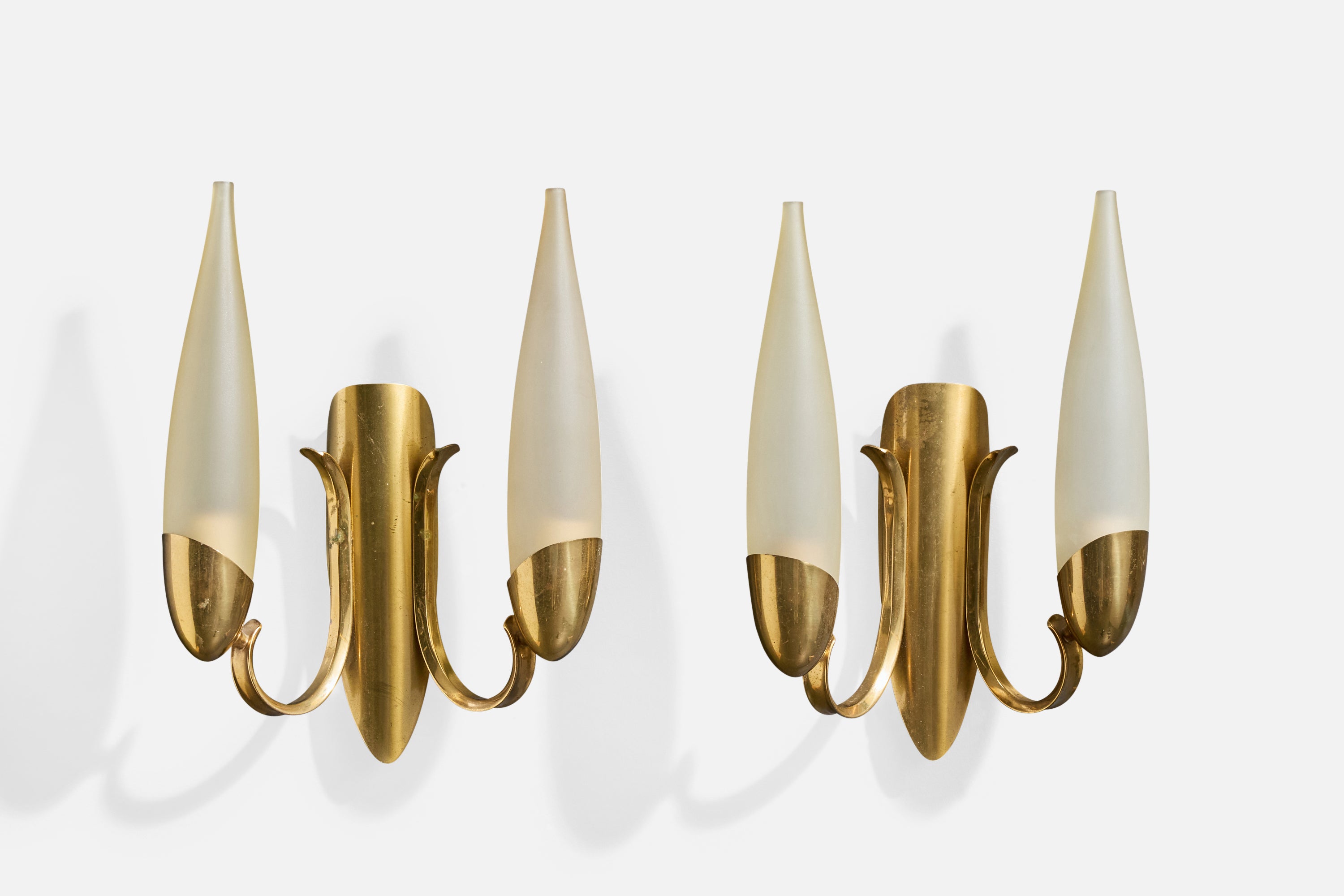 Italian Designer, Wall Lights, Brass, Glass, Italy, 1950s