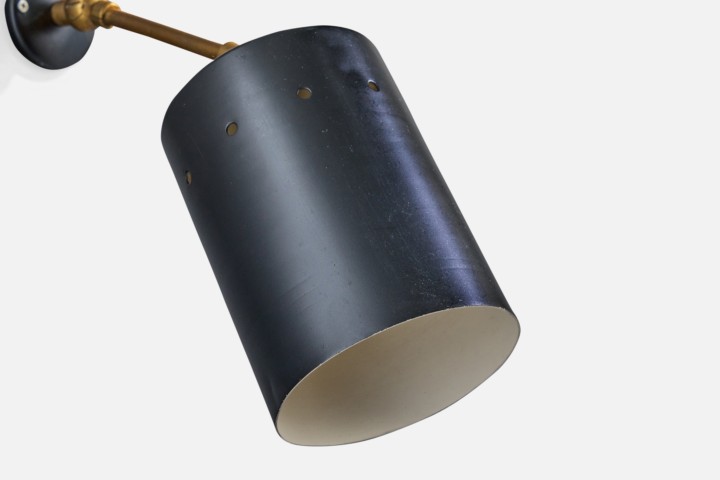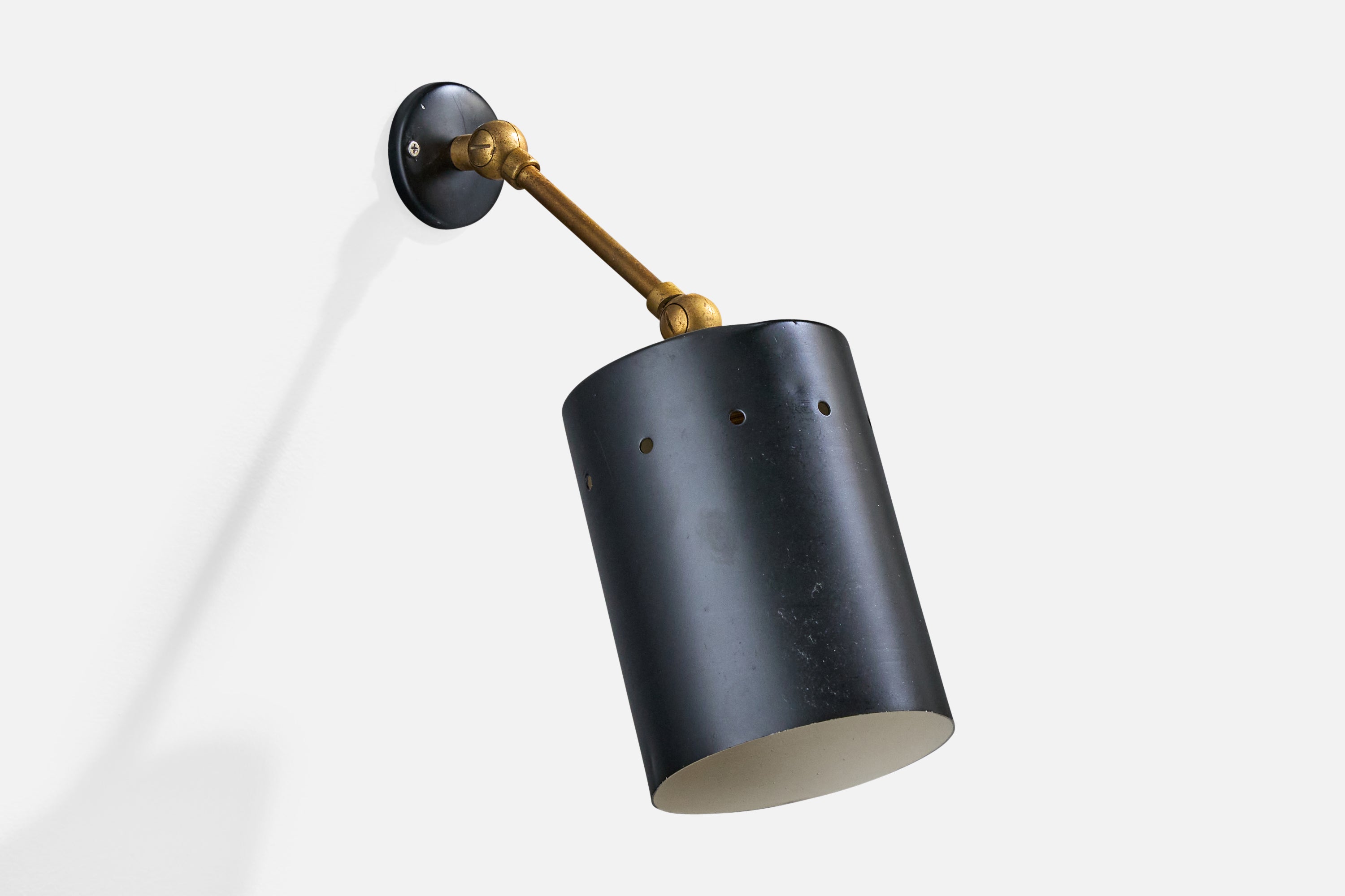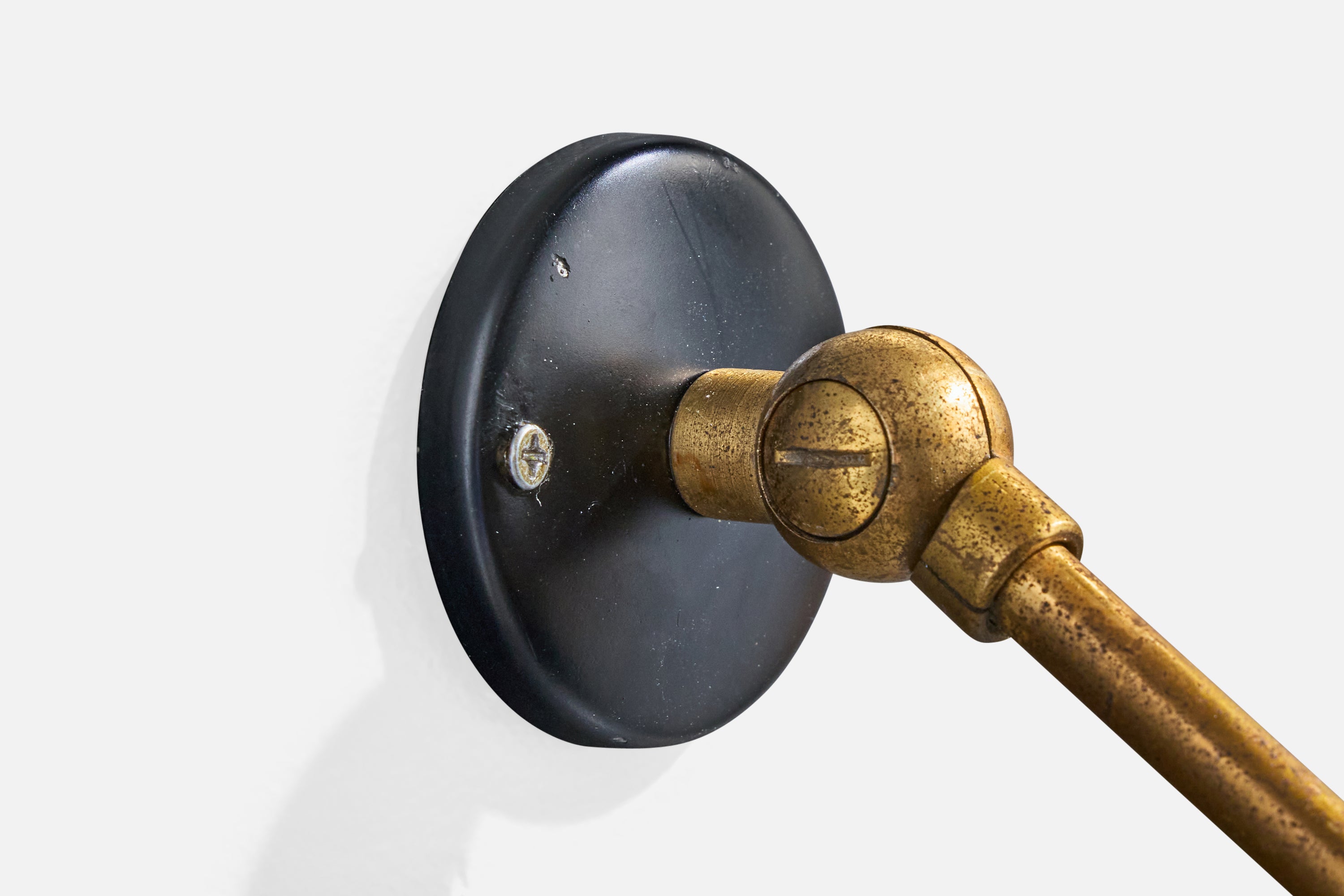 A pair of adjustable brass and black-lacquered metal wall lights attributed to Stilux, Milano, Italy, c. 1950s.