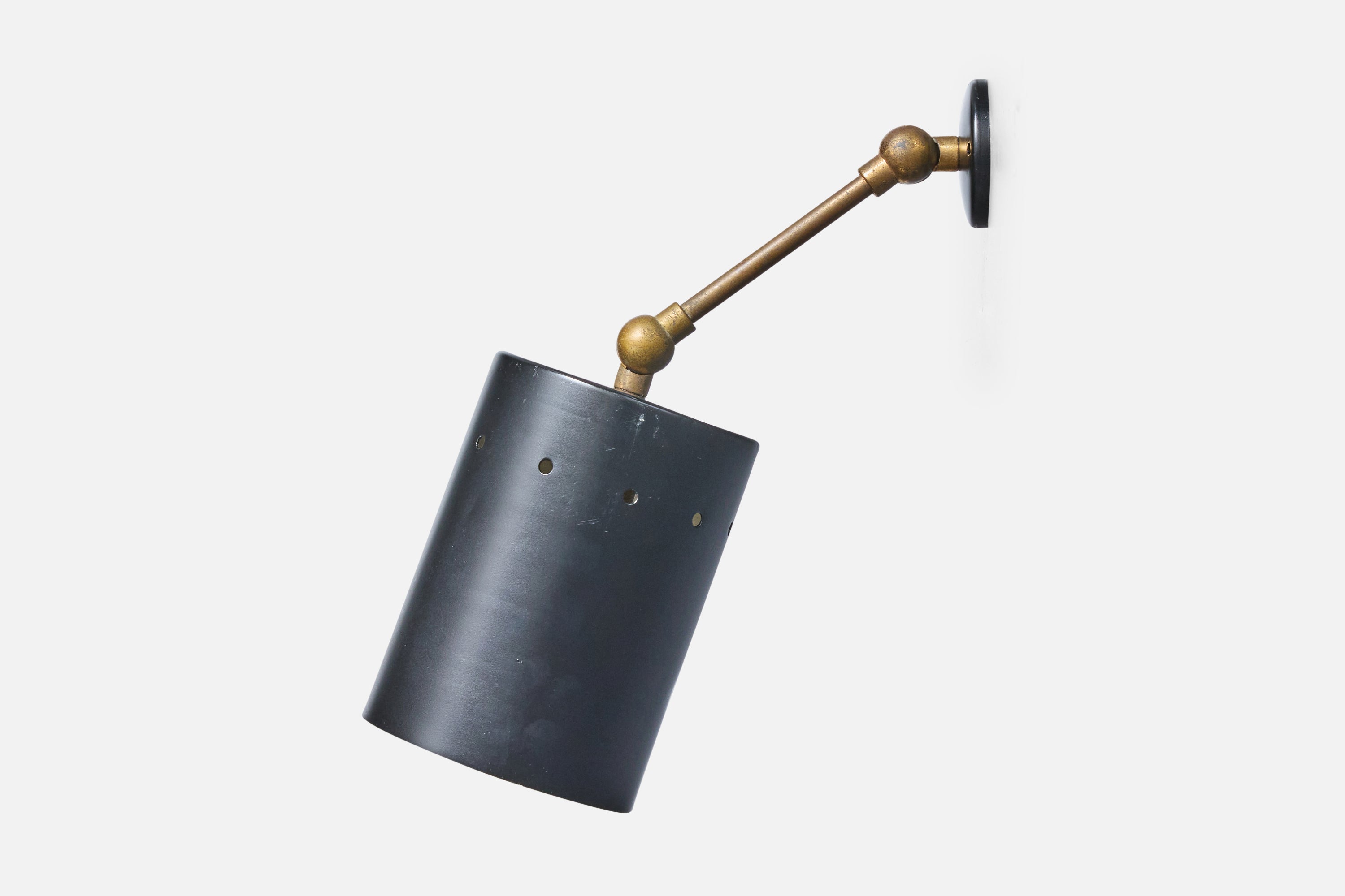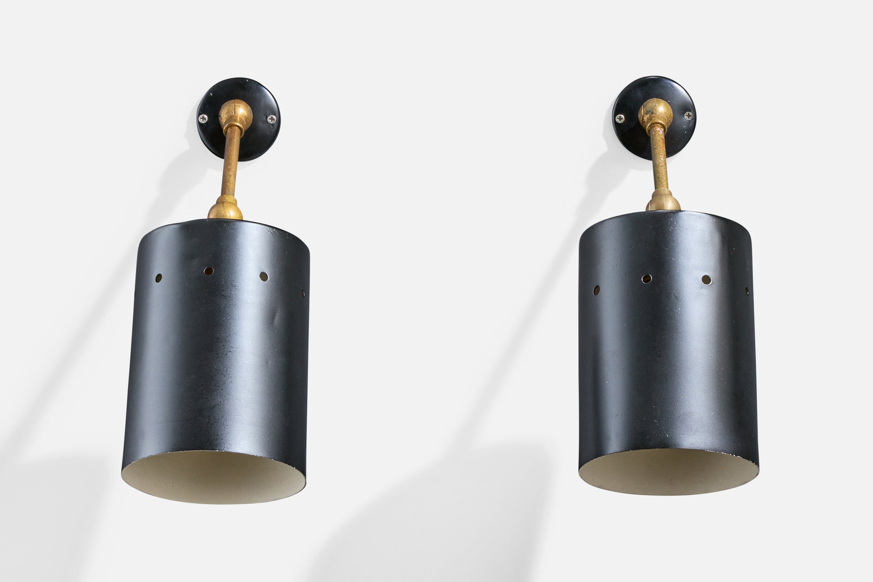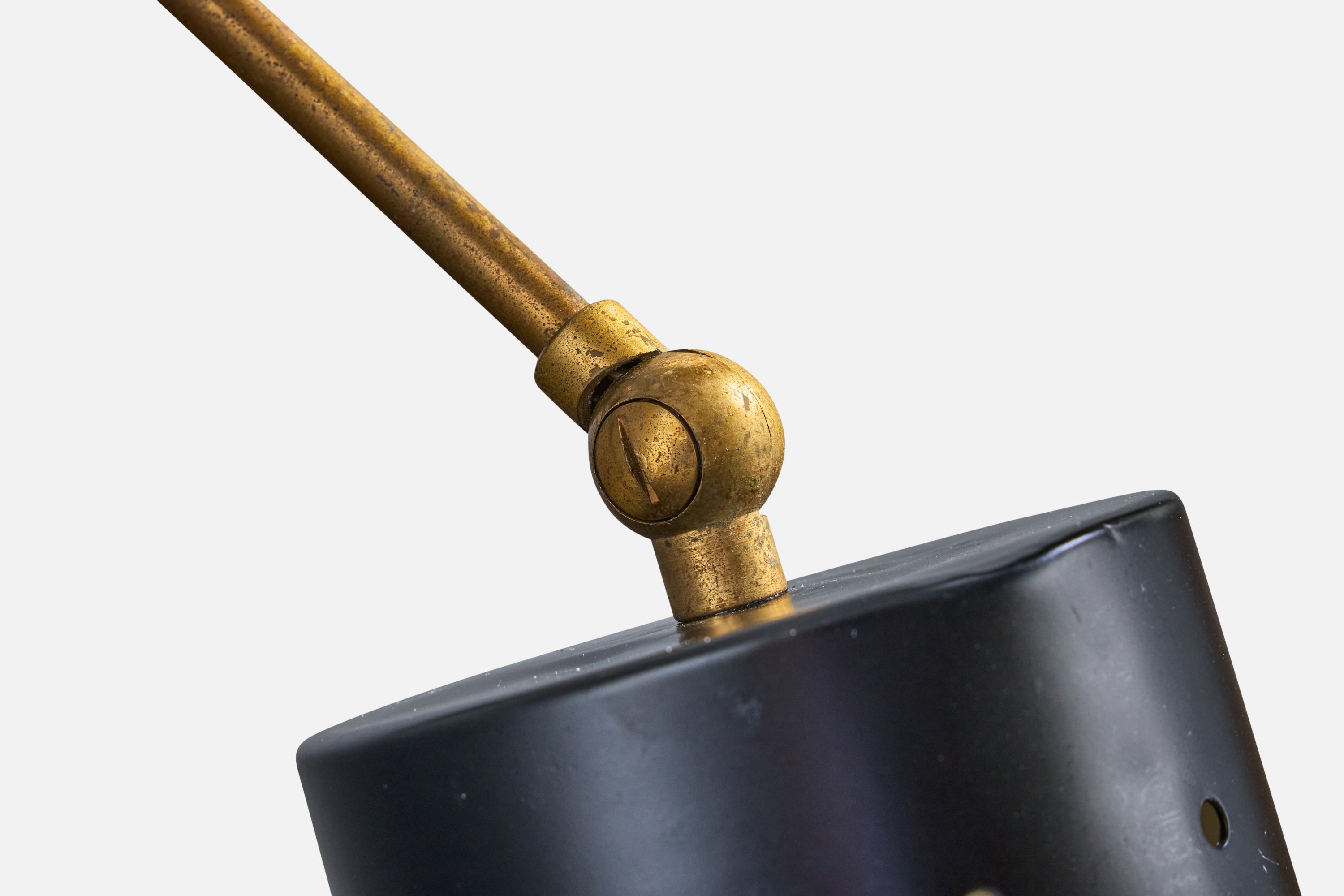 A pair of adjustable brass and black-lacquered metal wall lights attributed to Stilux, Milano, Italy, c. 1950s.