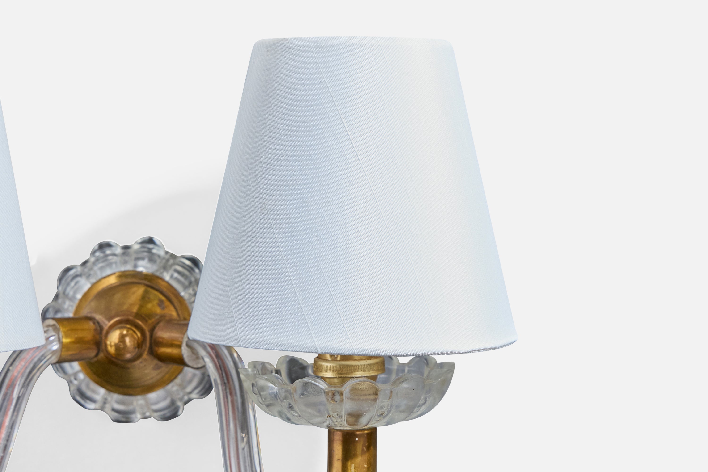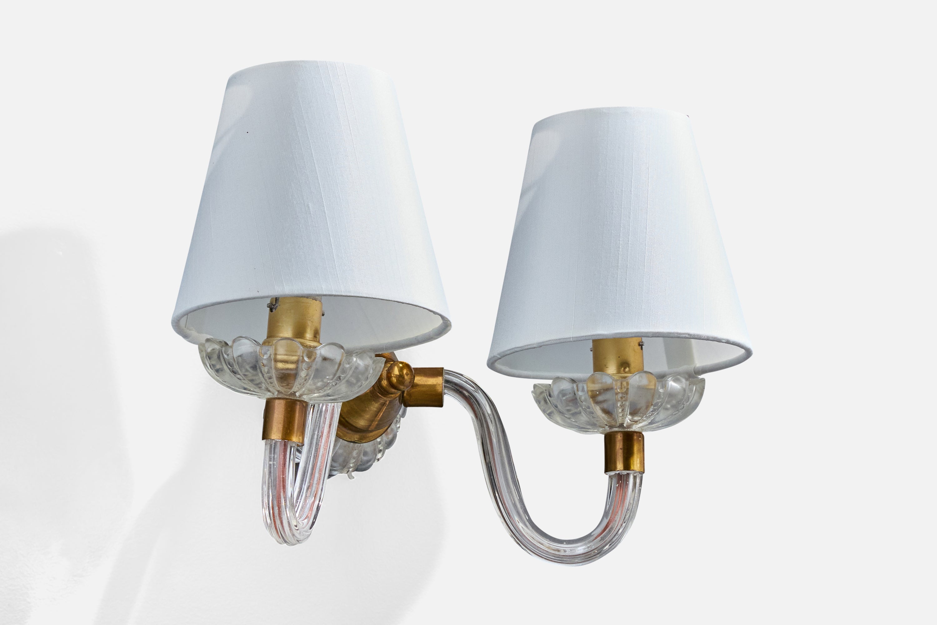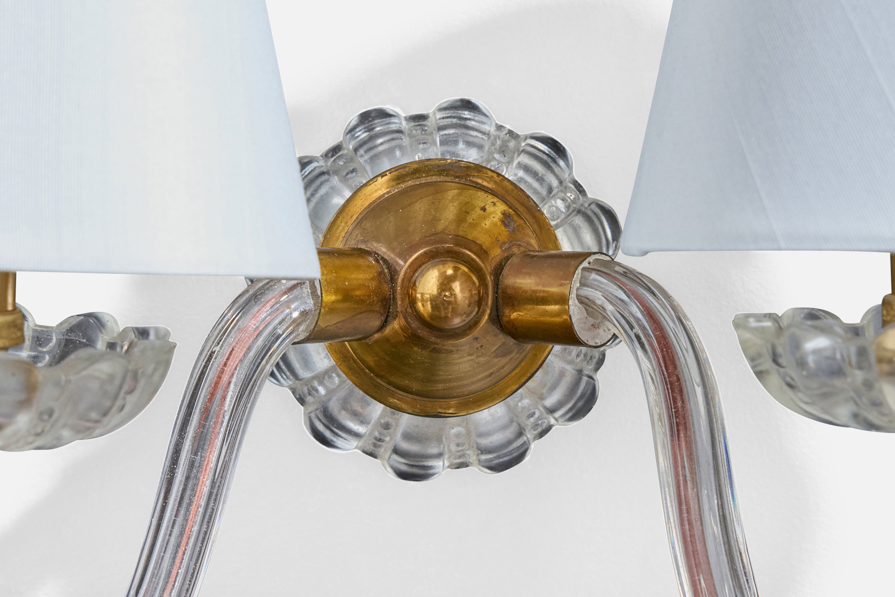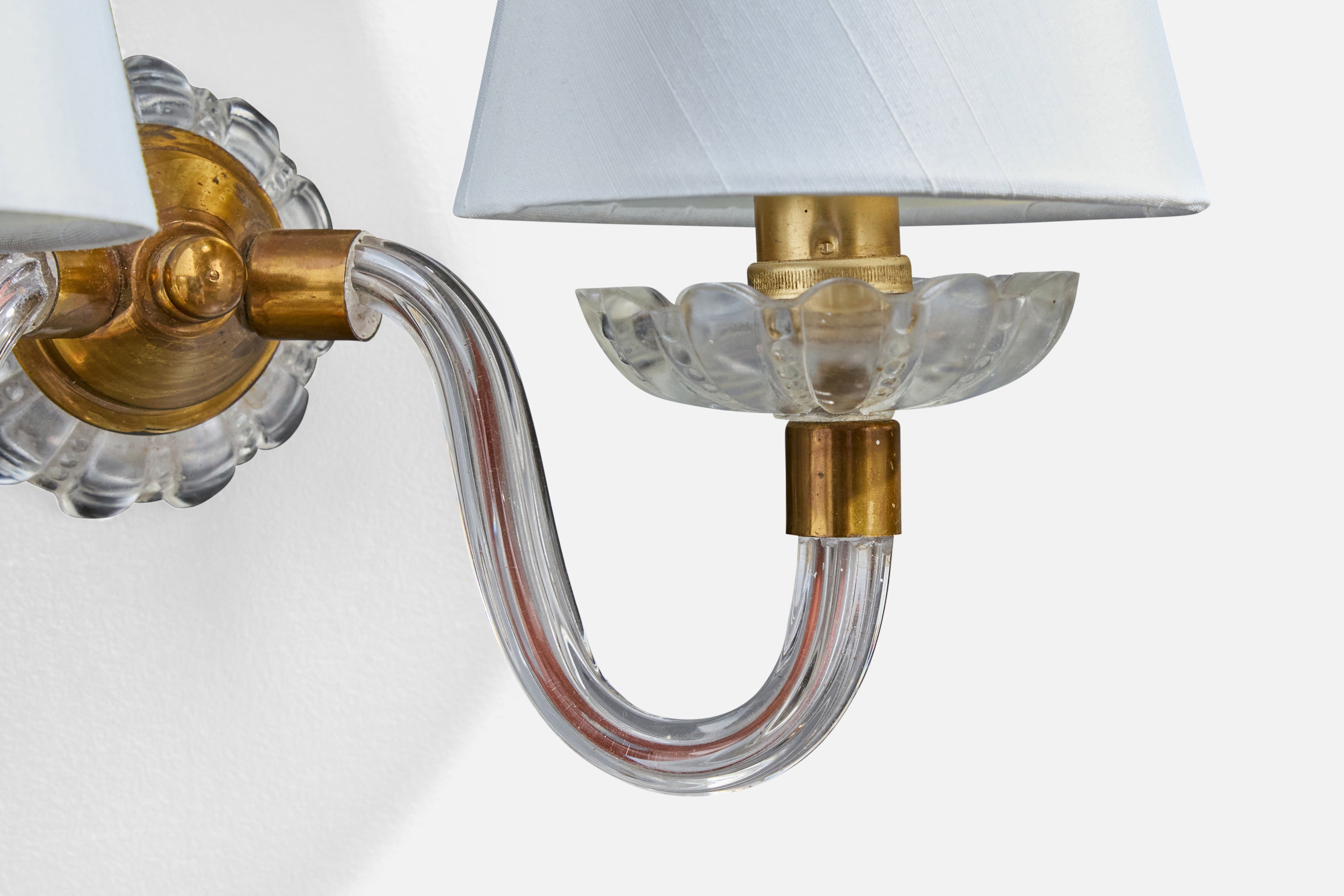 French Designer, Wall Light, Glass, Brass, Fabric, France, 1950s