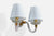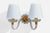 A brass, glass and white fabric wall light designed and produced in France, c. 1950s.