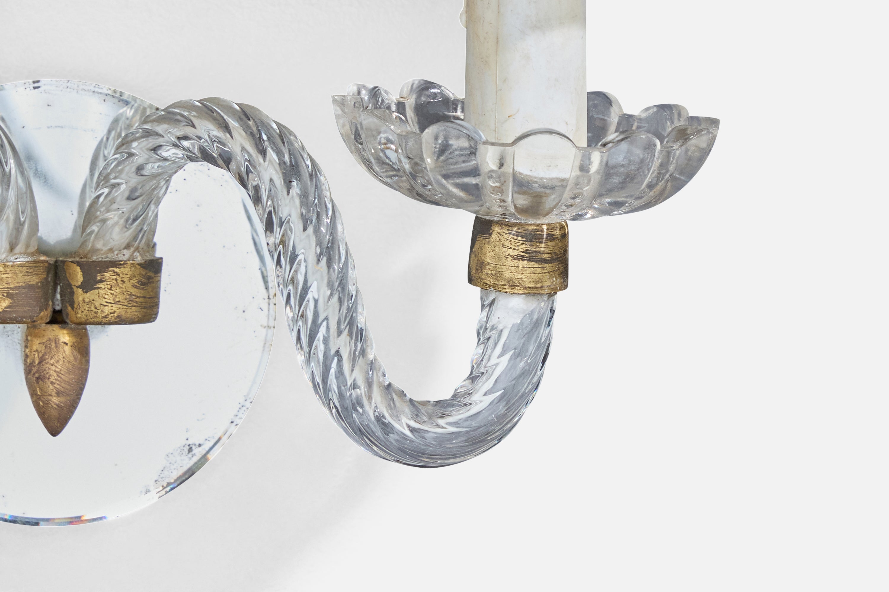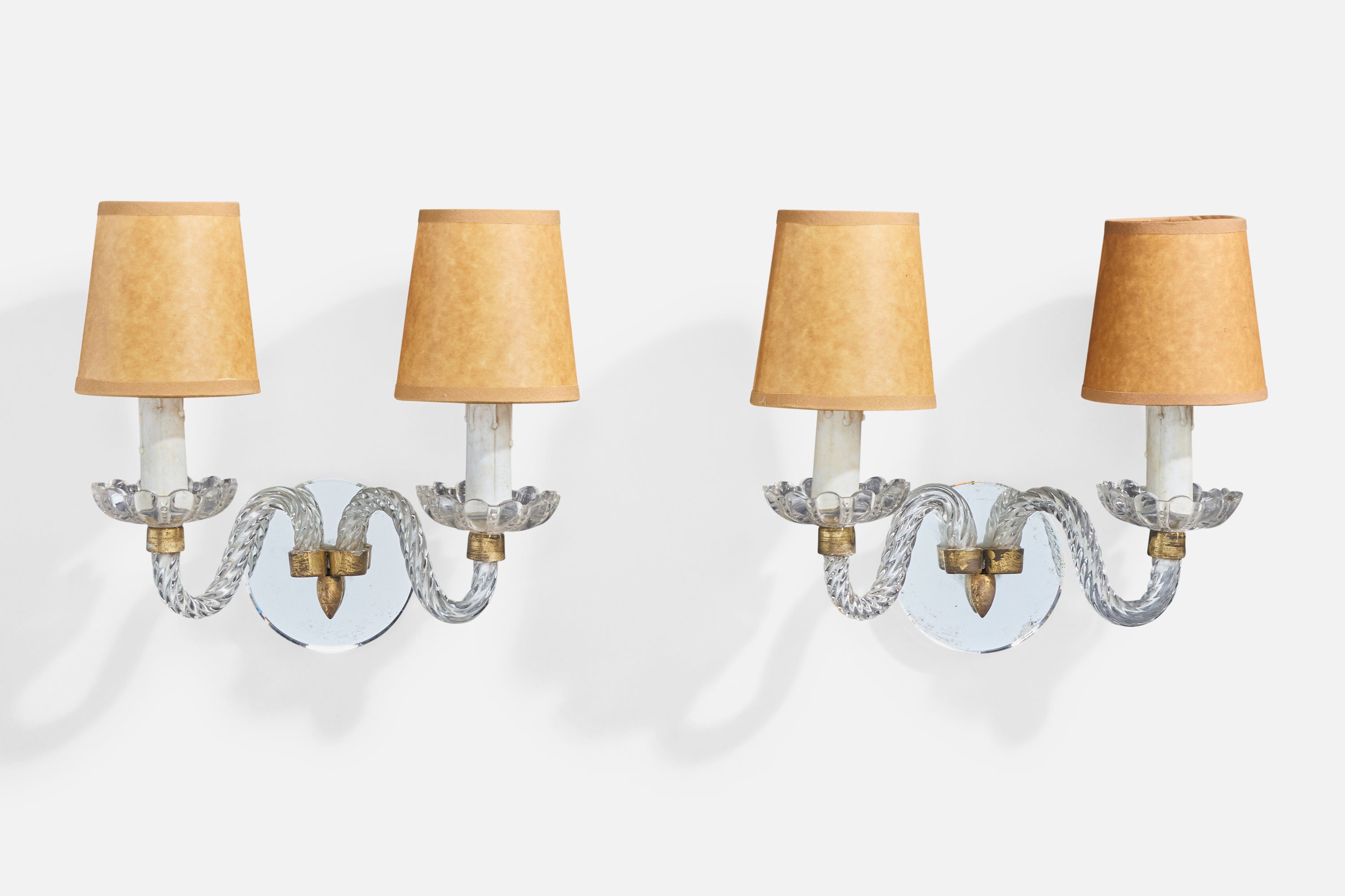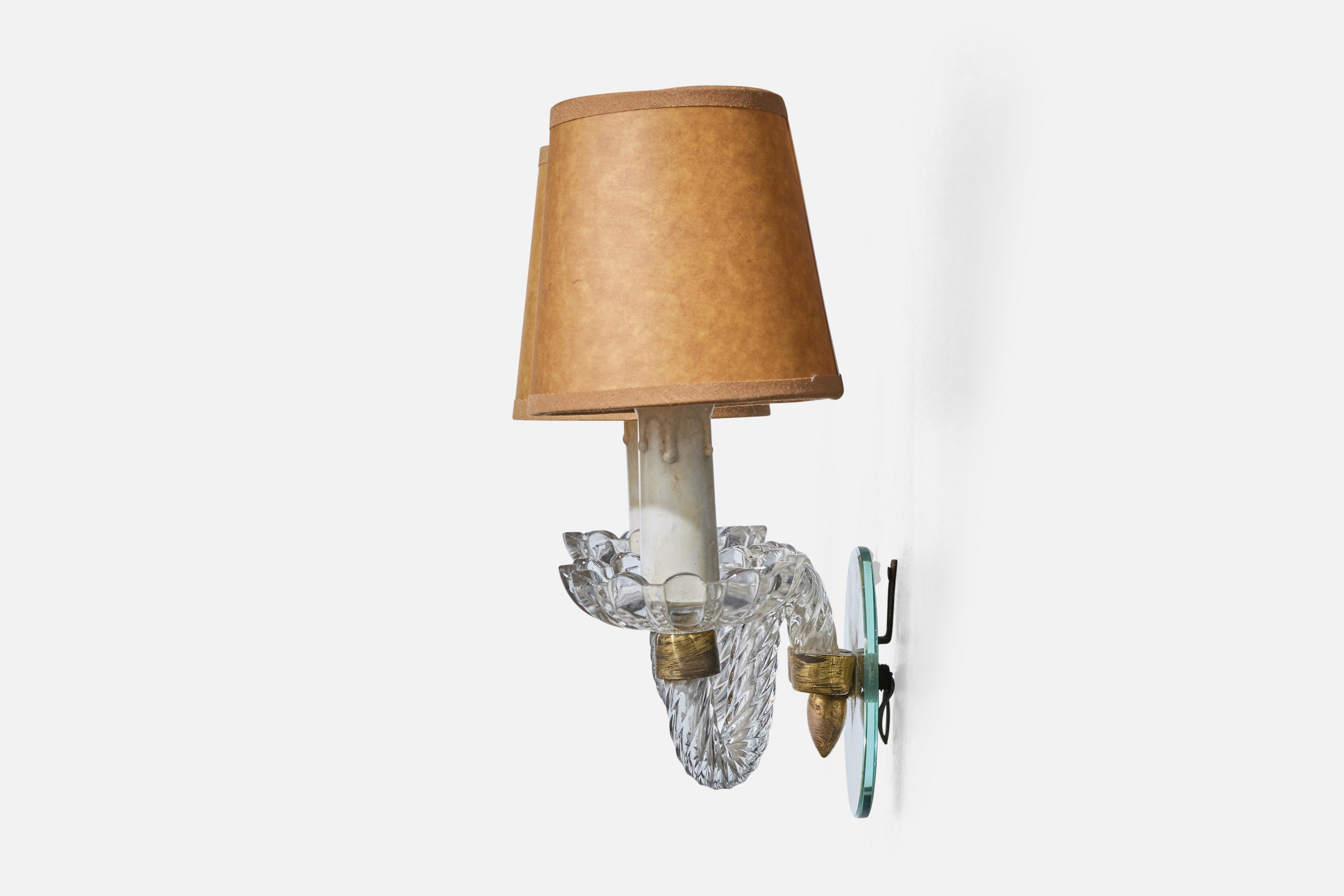 Italian Designer, Wall Lights, Glass, Brass, Mirror, Parchment, Italy, 1950s