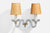 A pair of glass, mirror, brass, plastic and beige parchment paper wall lights designed and produced in Italy, c. 1950s.