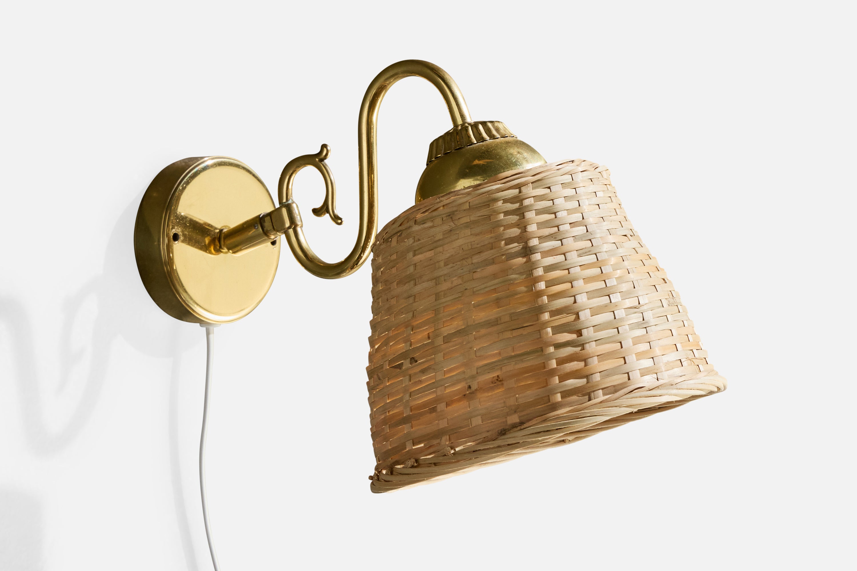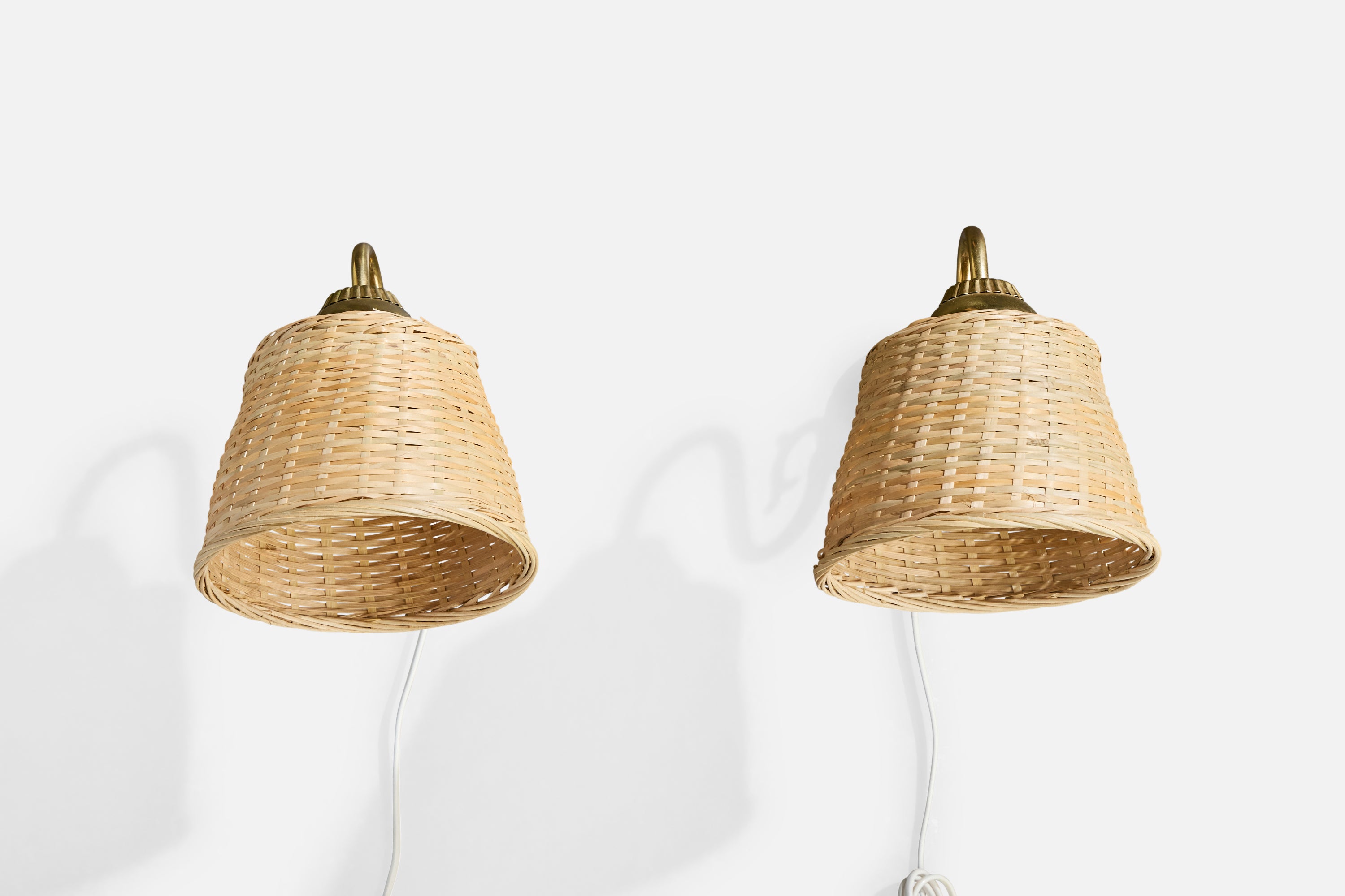 Boréns Borås, Wall Lights, Brass, Rattan, Sweden, 1970s