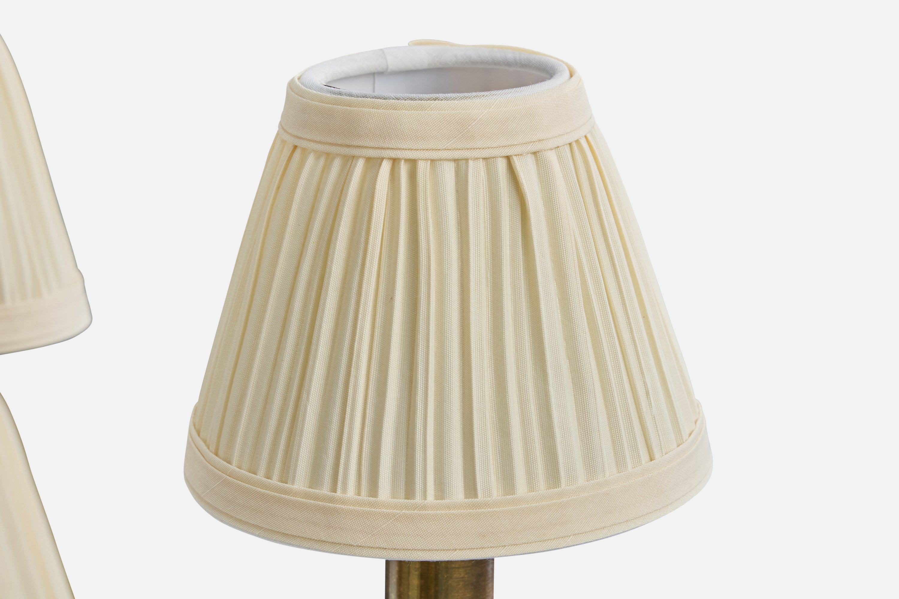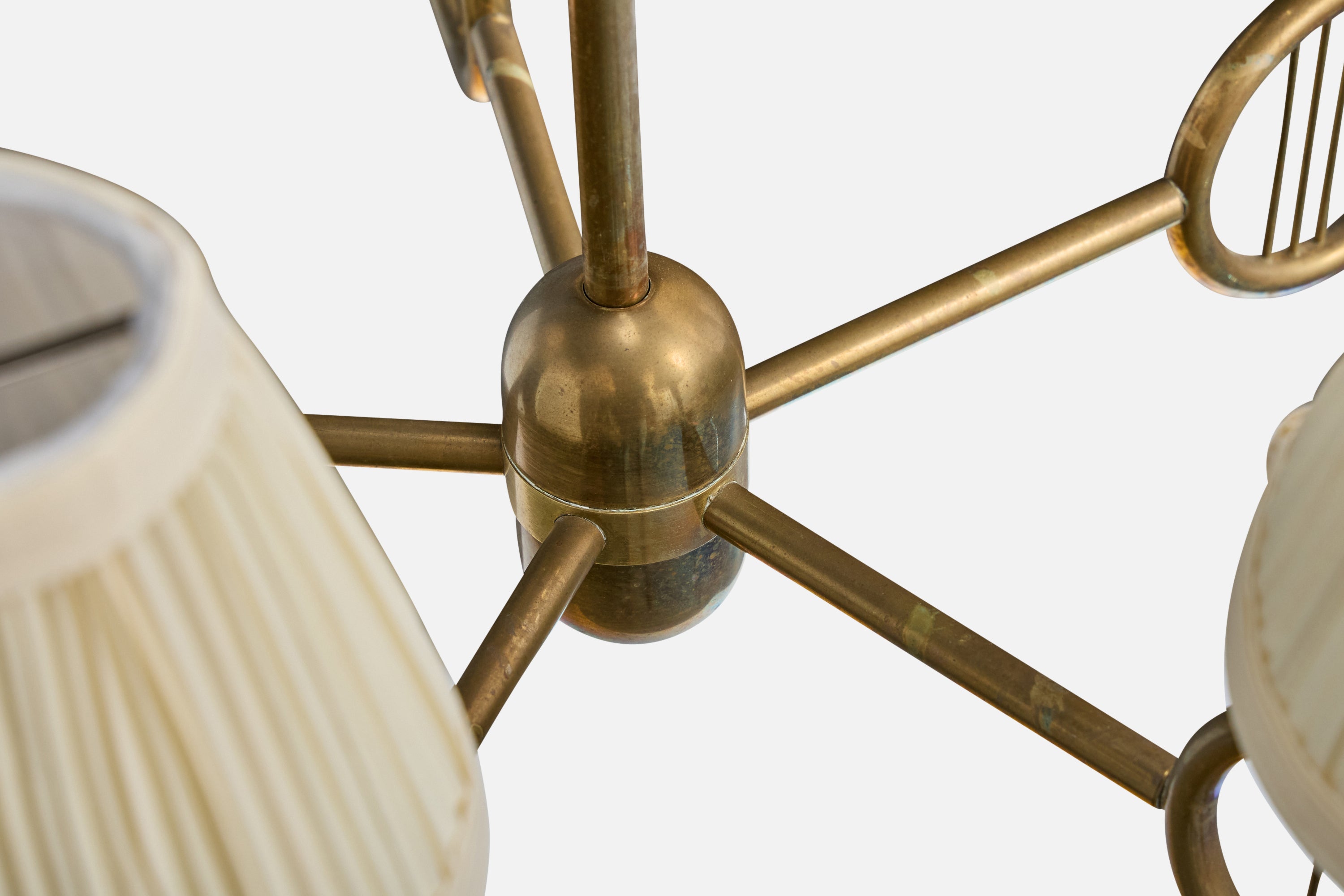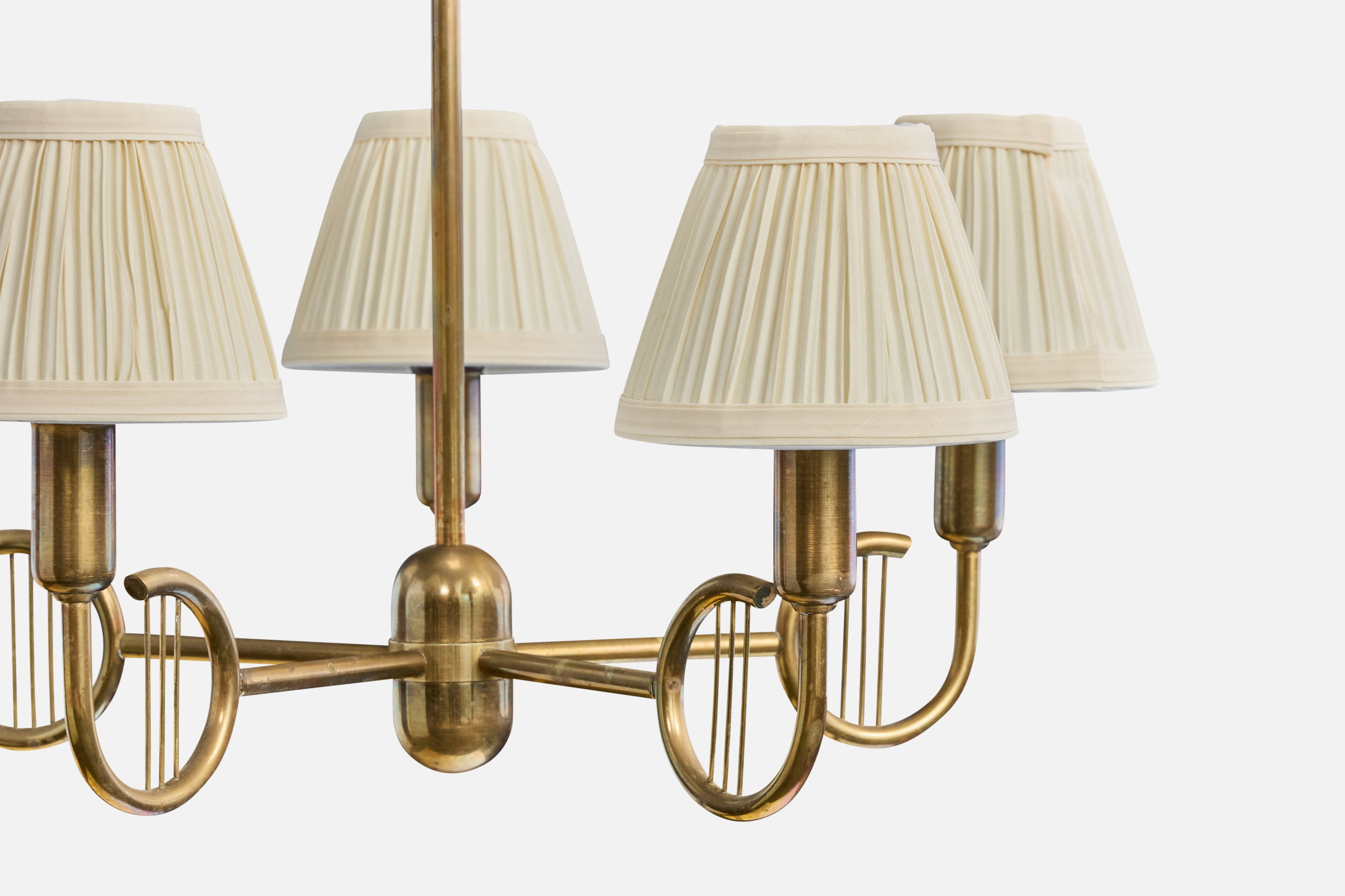 A brass and off-white fabric chandelier designed and produced in Denmark, c. 1950s.