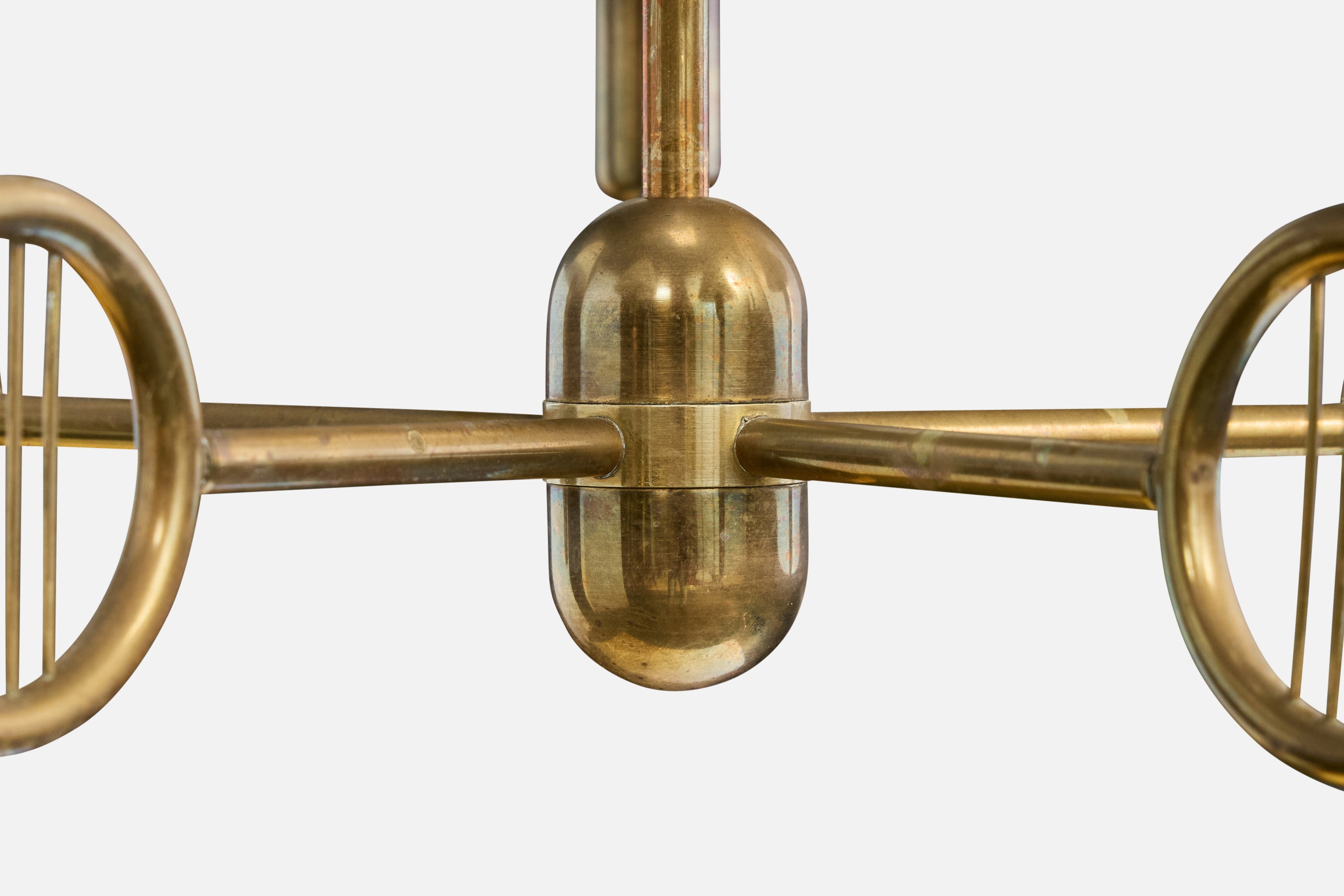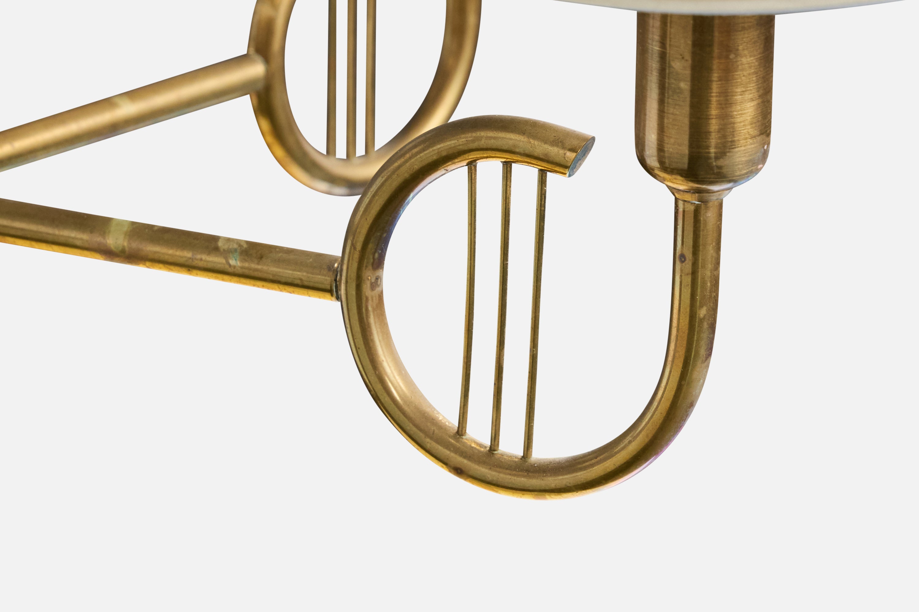 Danish Designer, Chandelier, Brass, Fabric, Denmark, 1950s