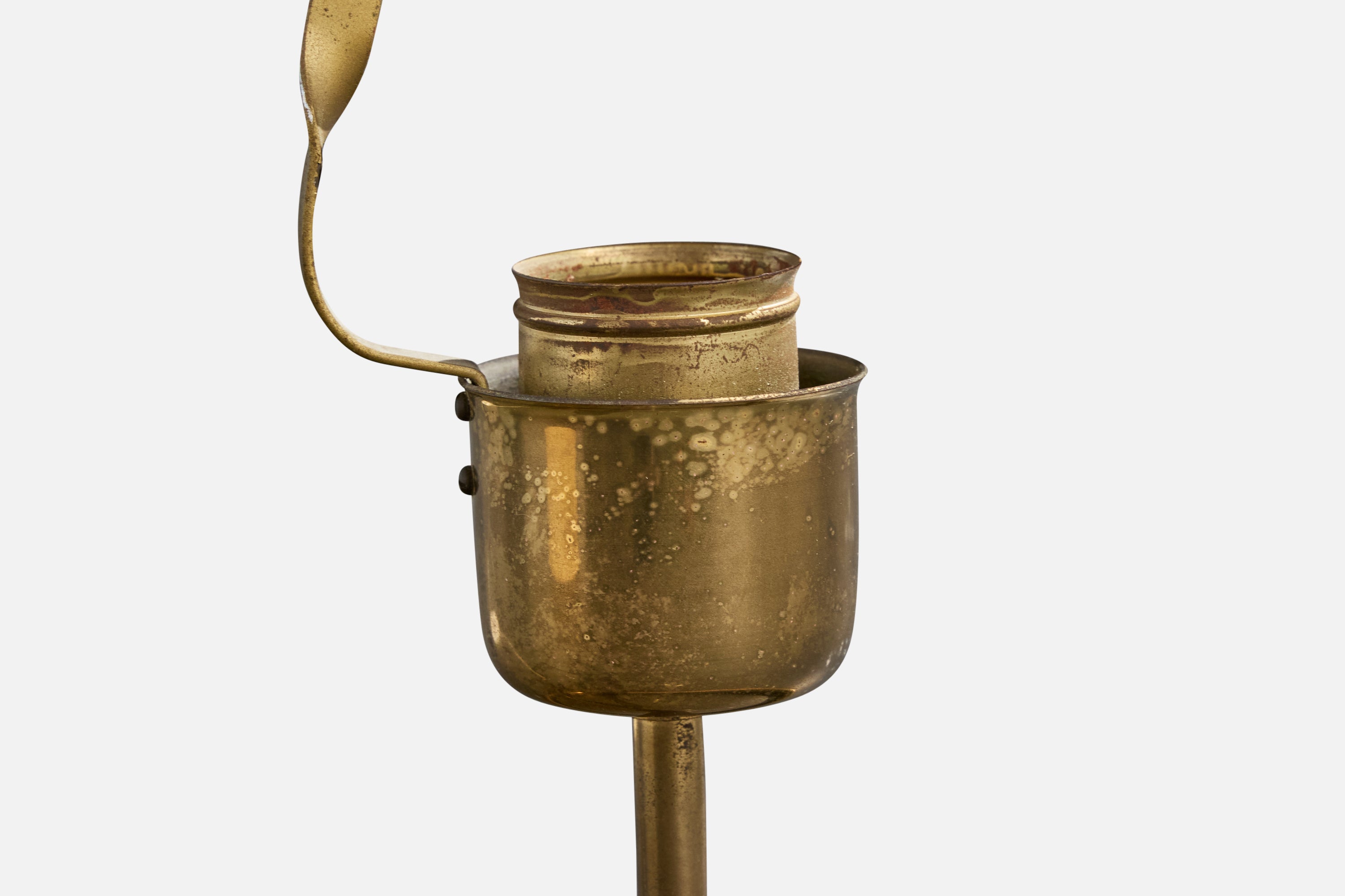 Moderate oxidation present throughout brass. Light staining to shade.