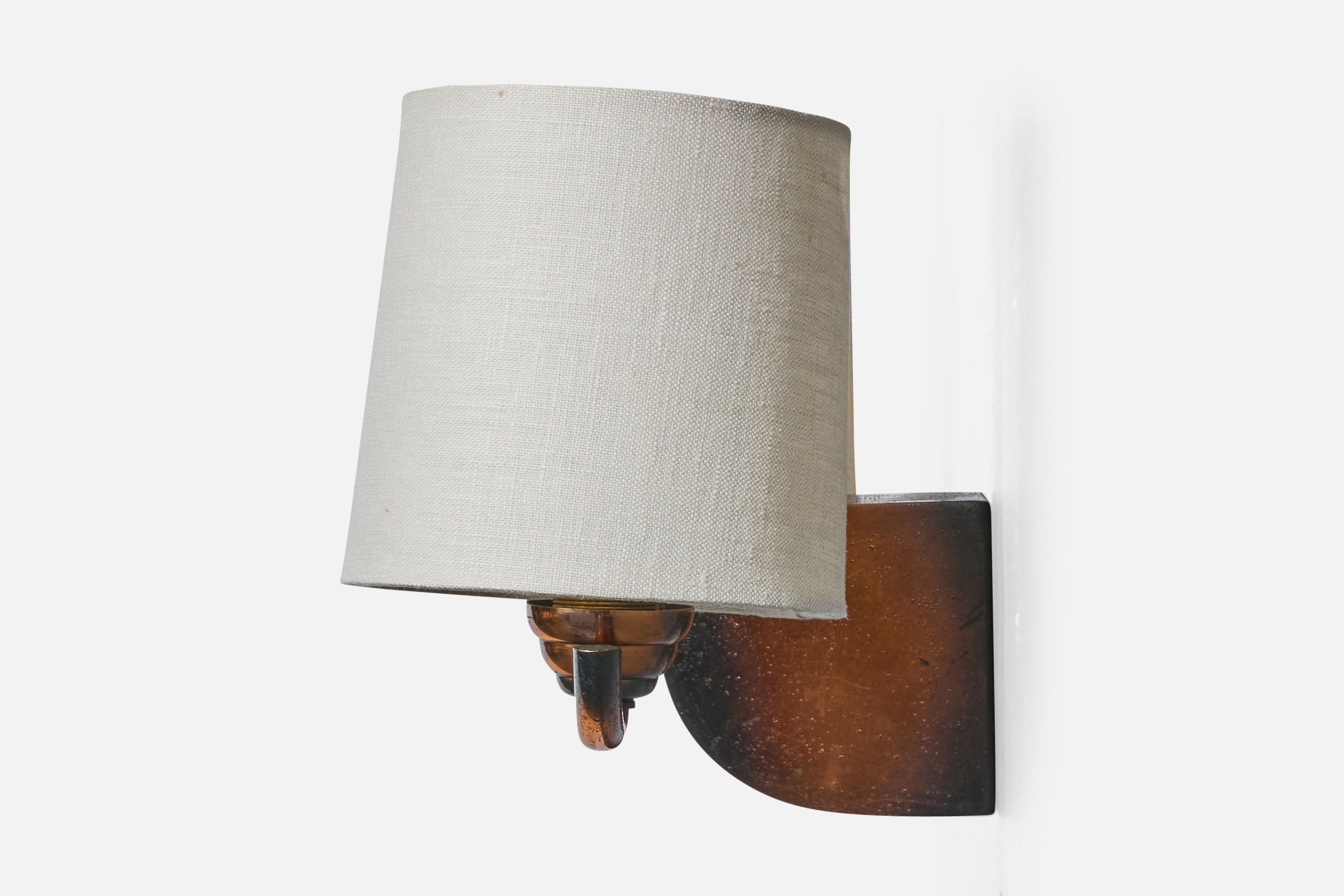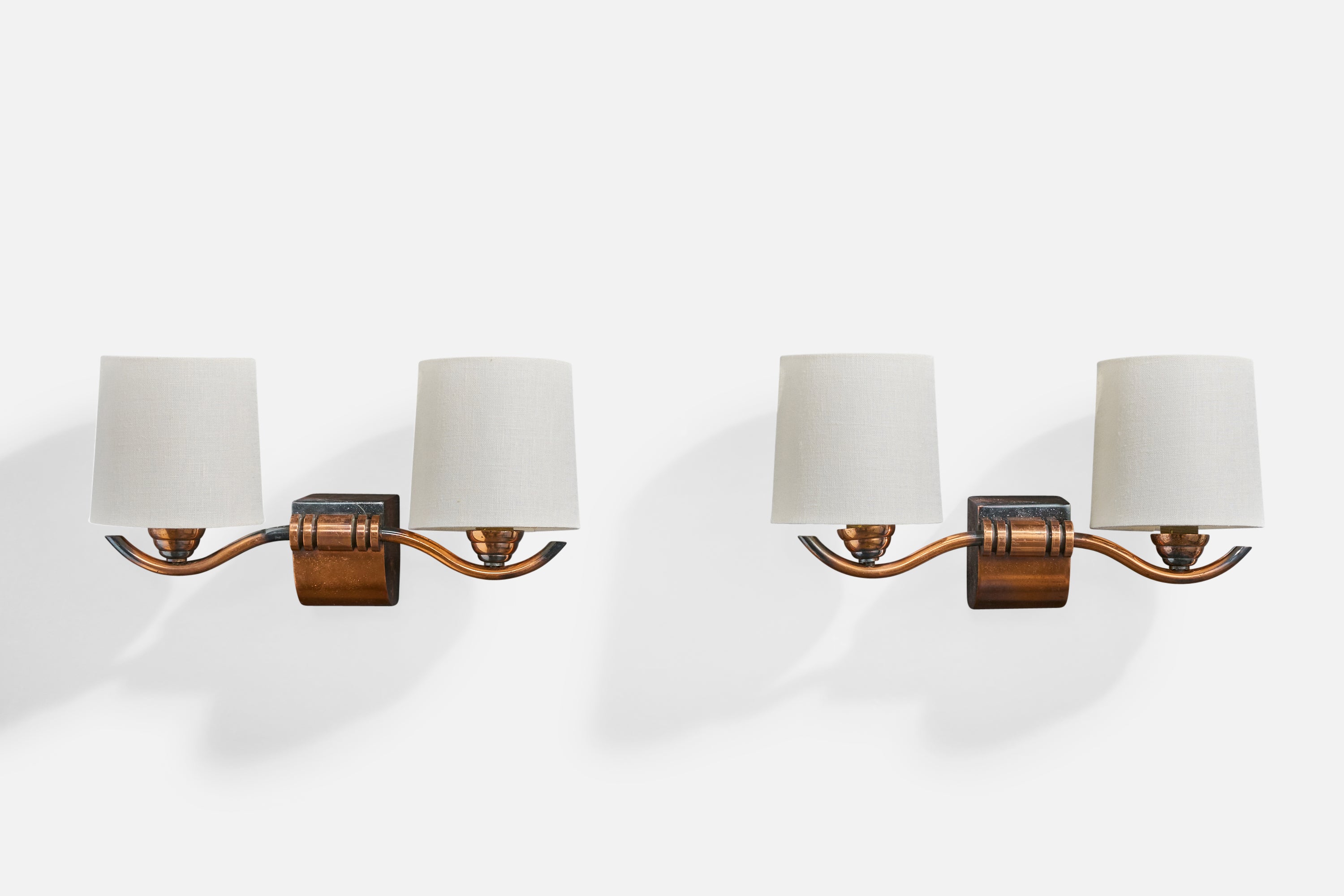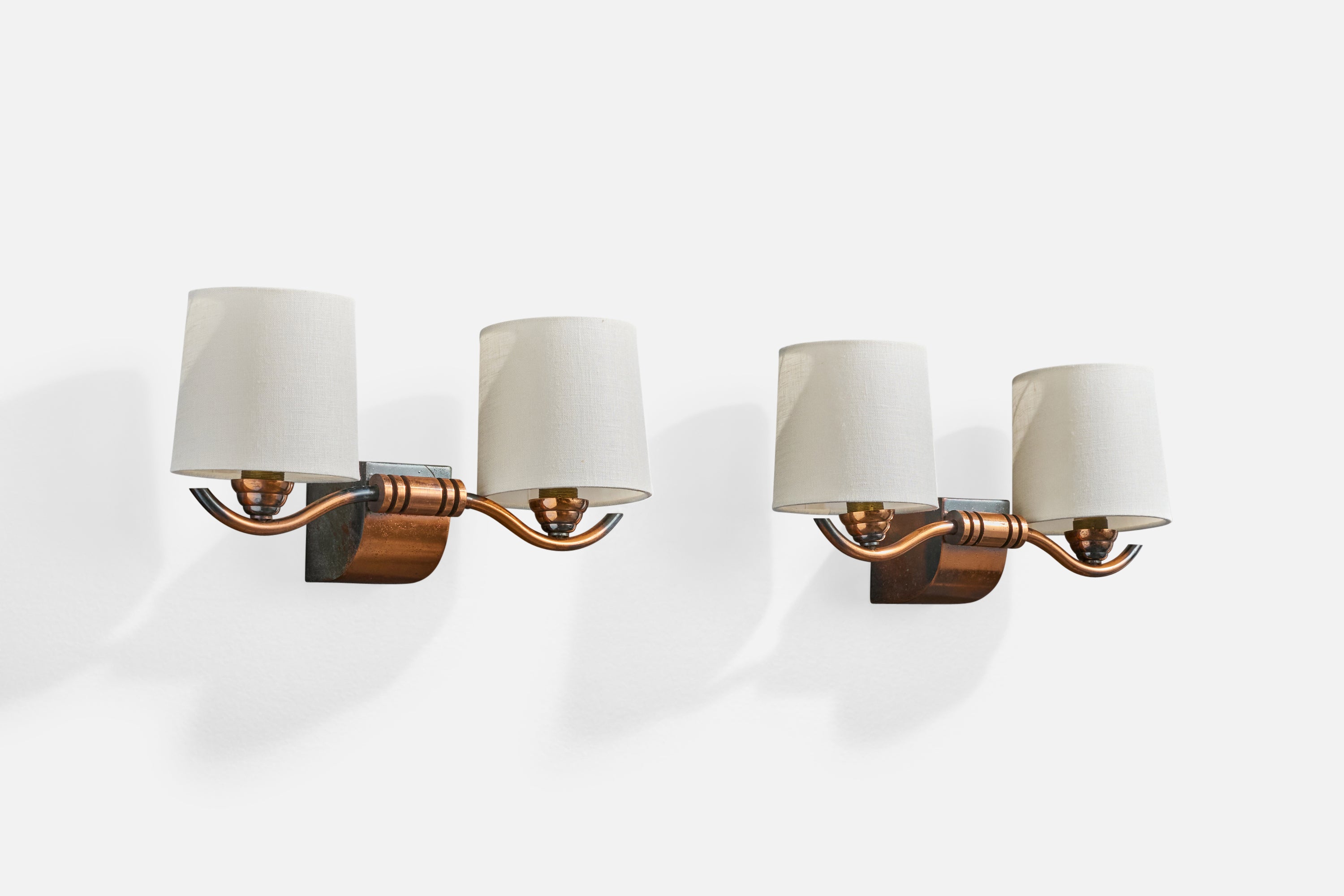 French Designer, Wall Lights, Copper, Fabric, France, 1950s