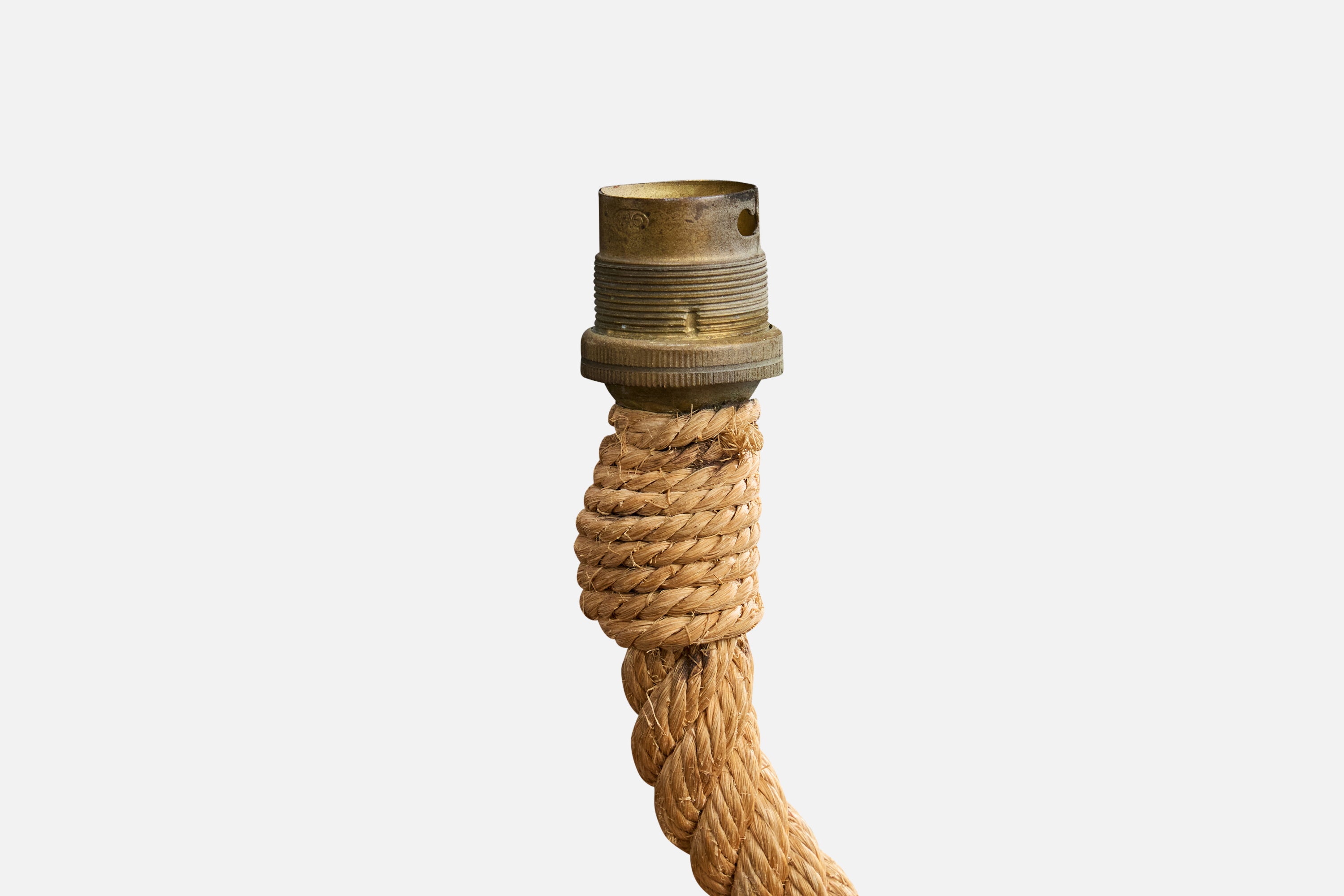A rope, brass and white fabric table lamp designed and produced in France, c. 1960s.