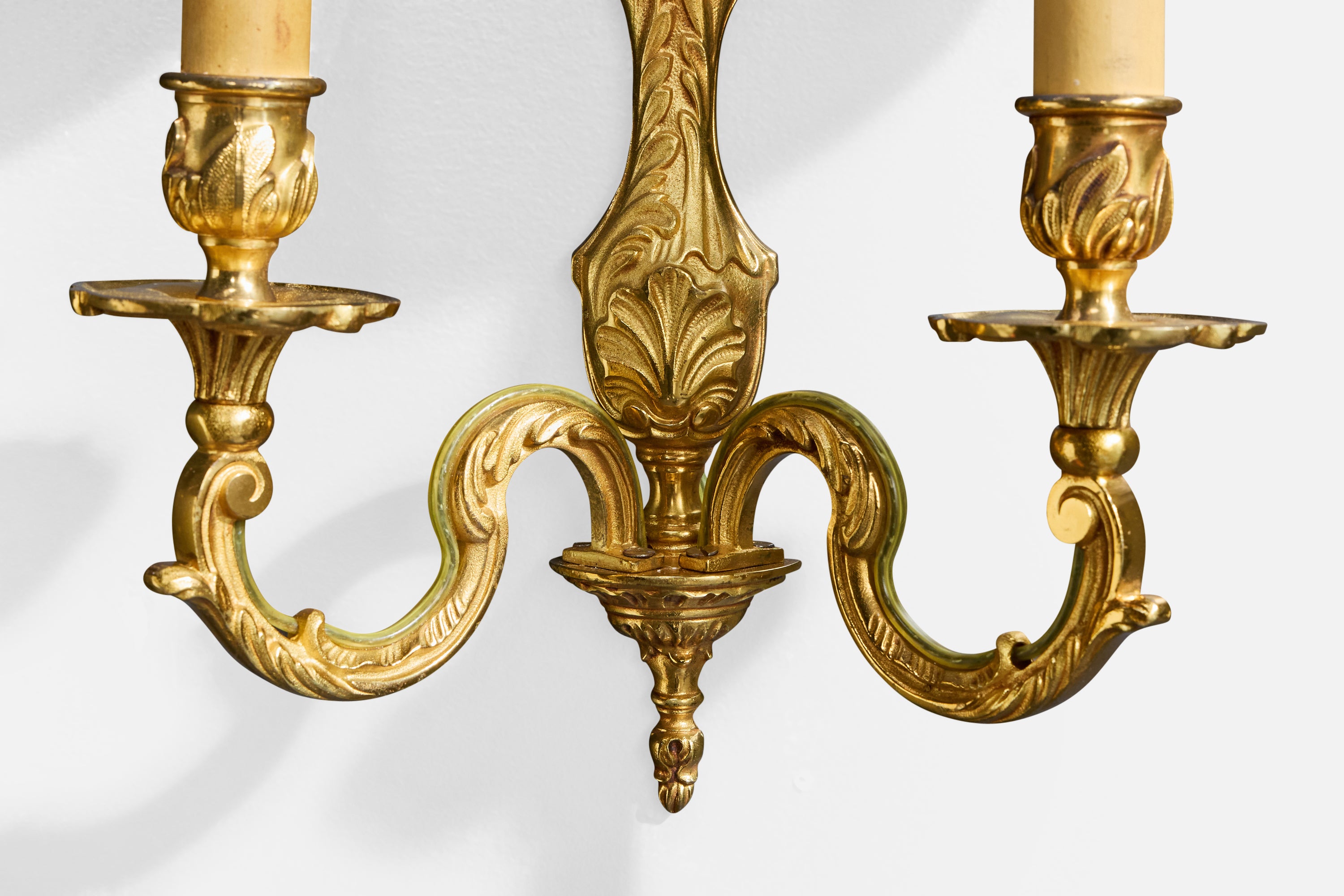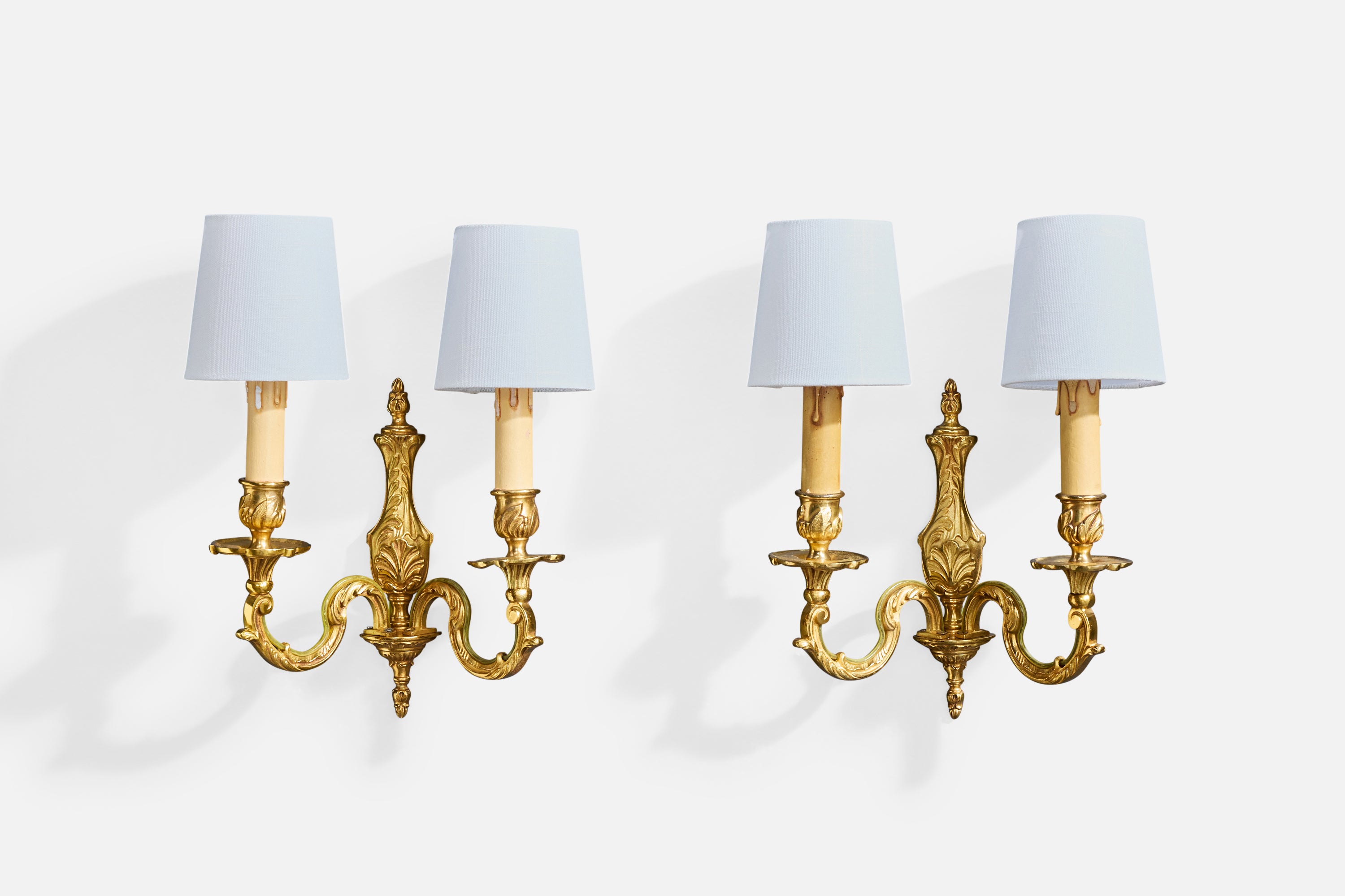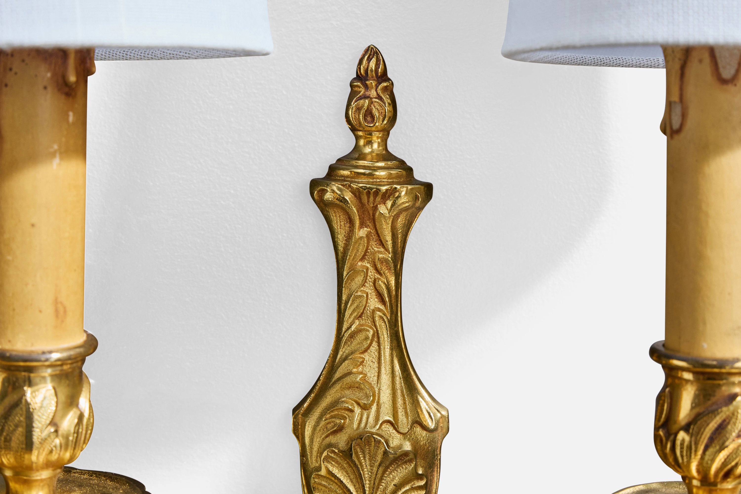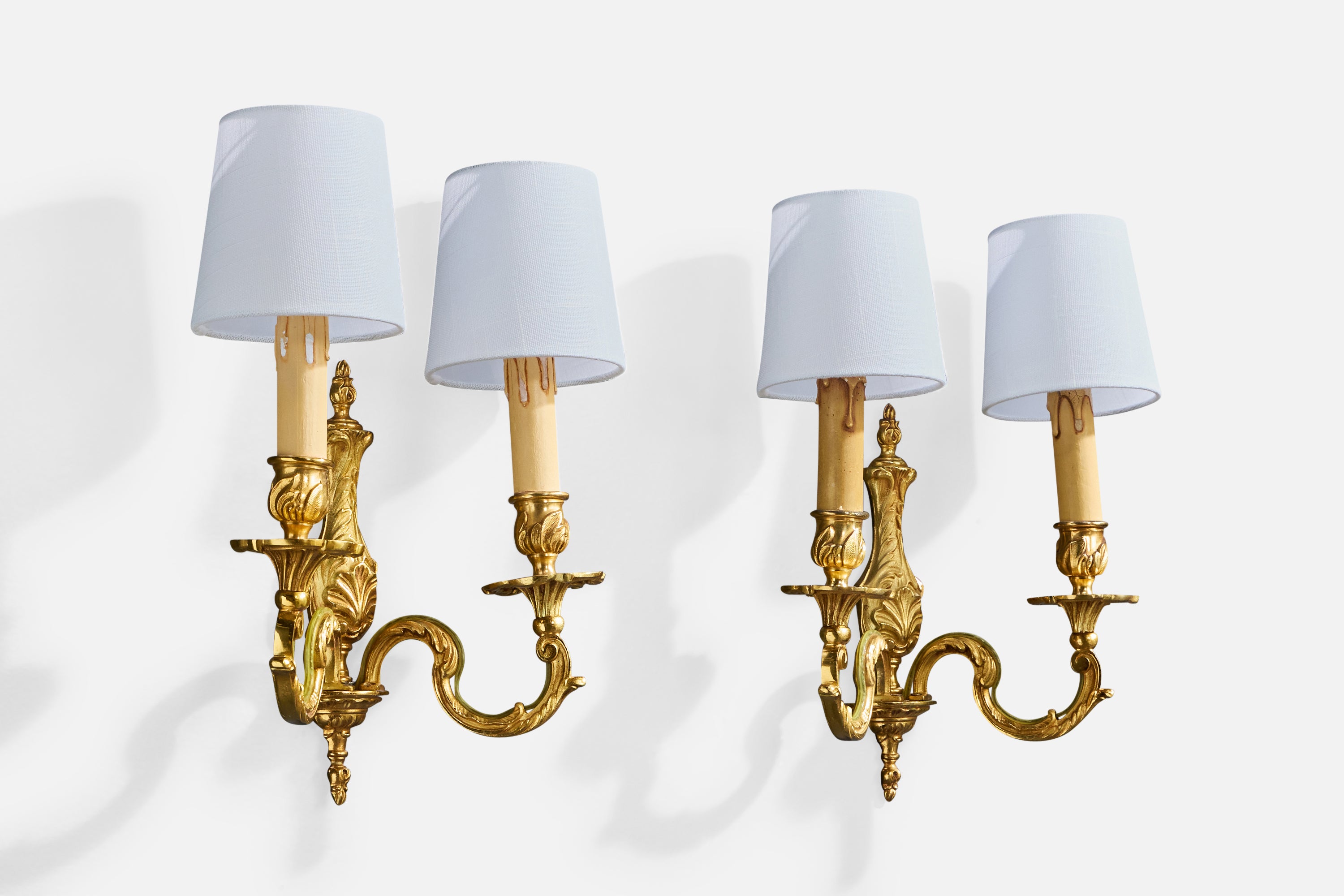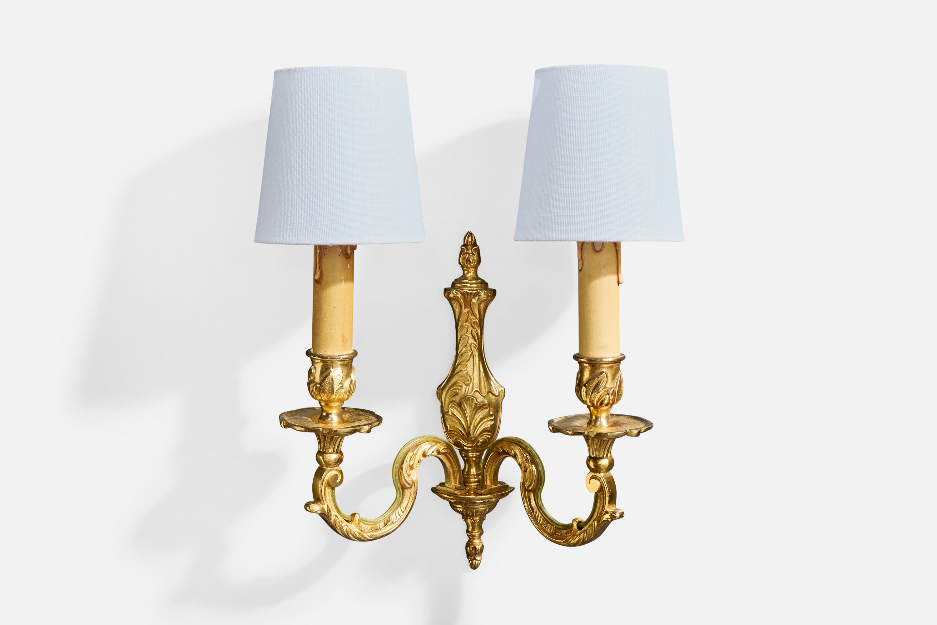 Swedish Designer, Wall Lights, Brass, Fabric, Sweden, 1940s