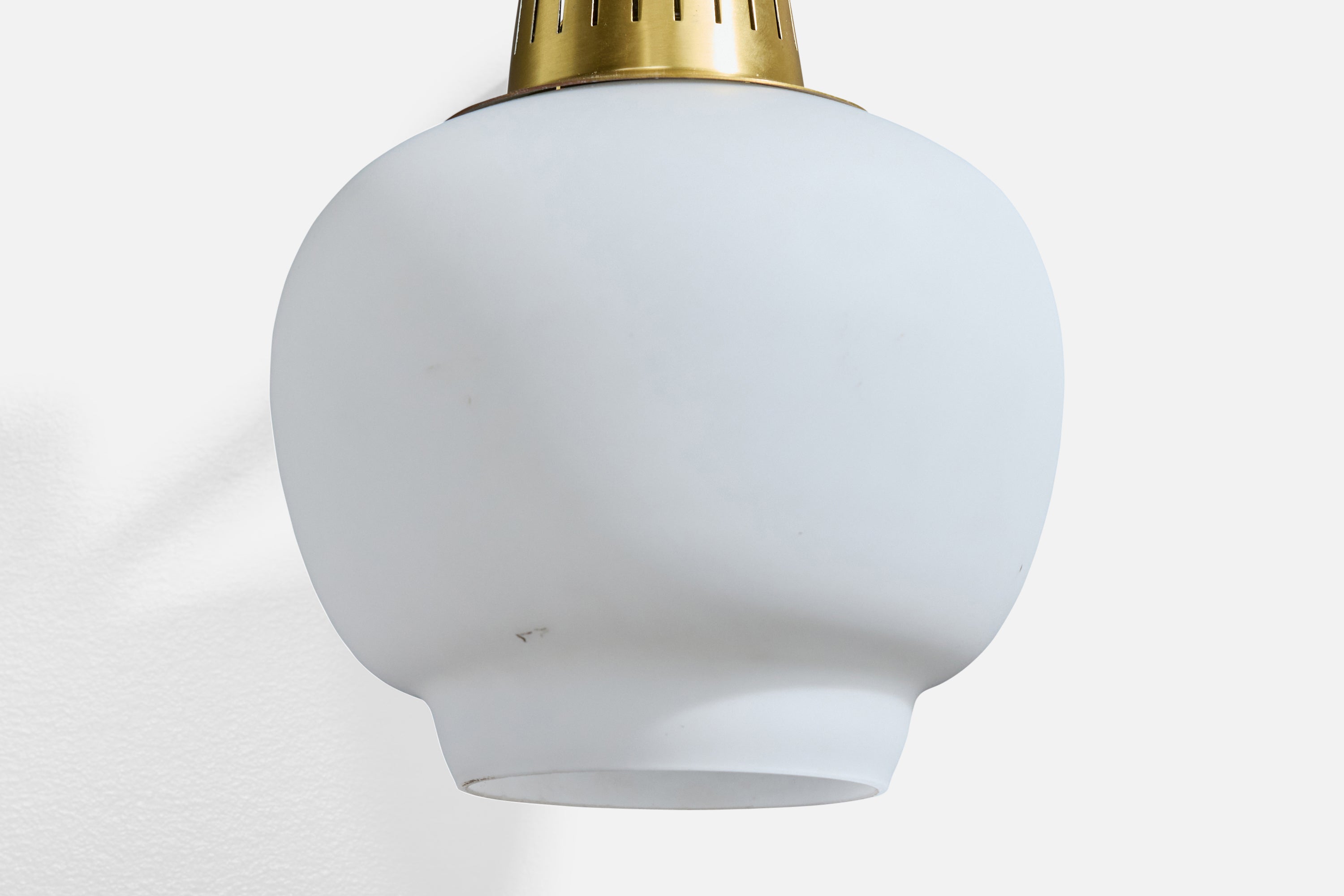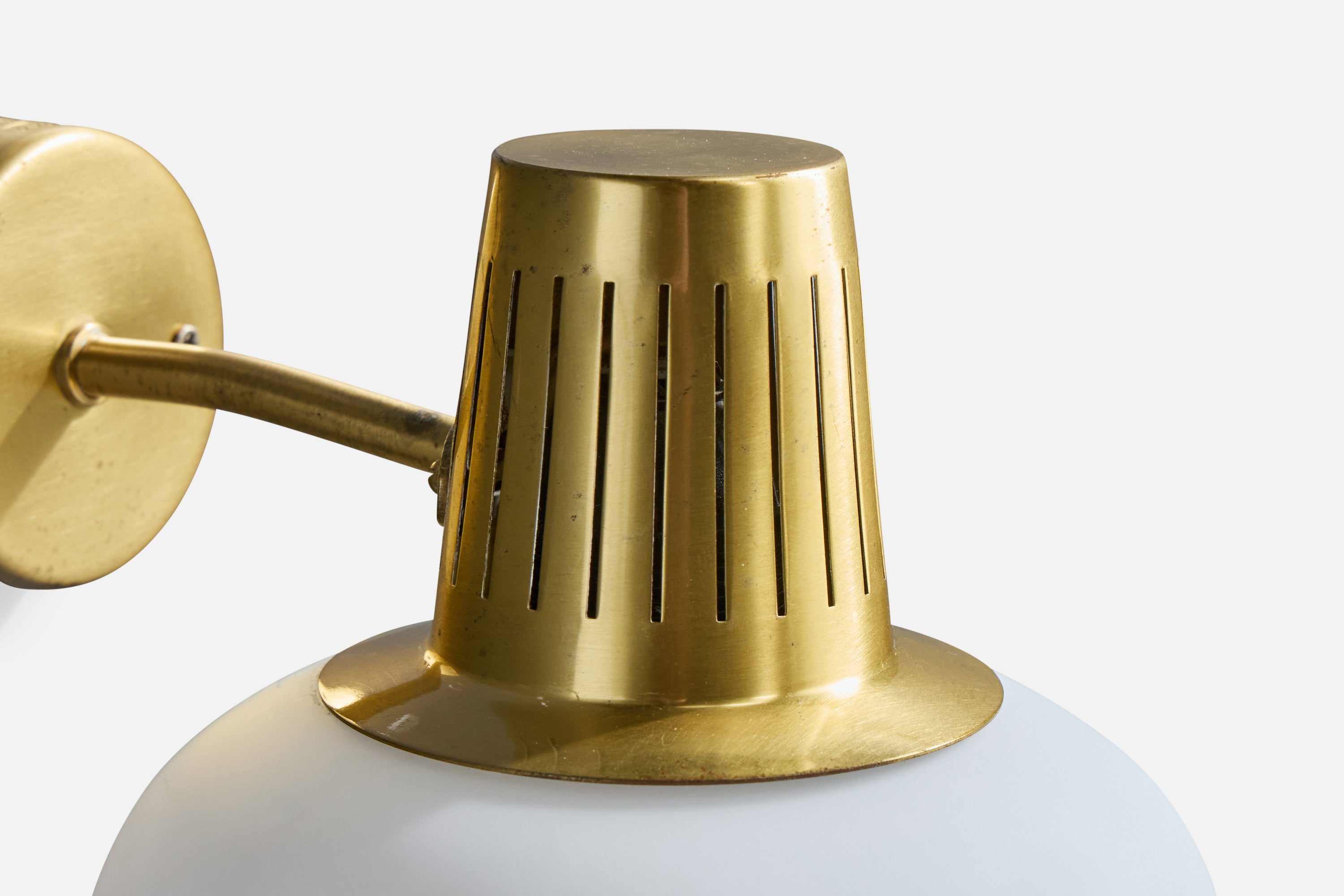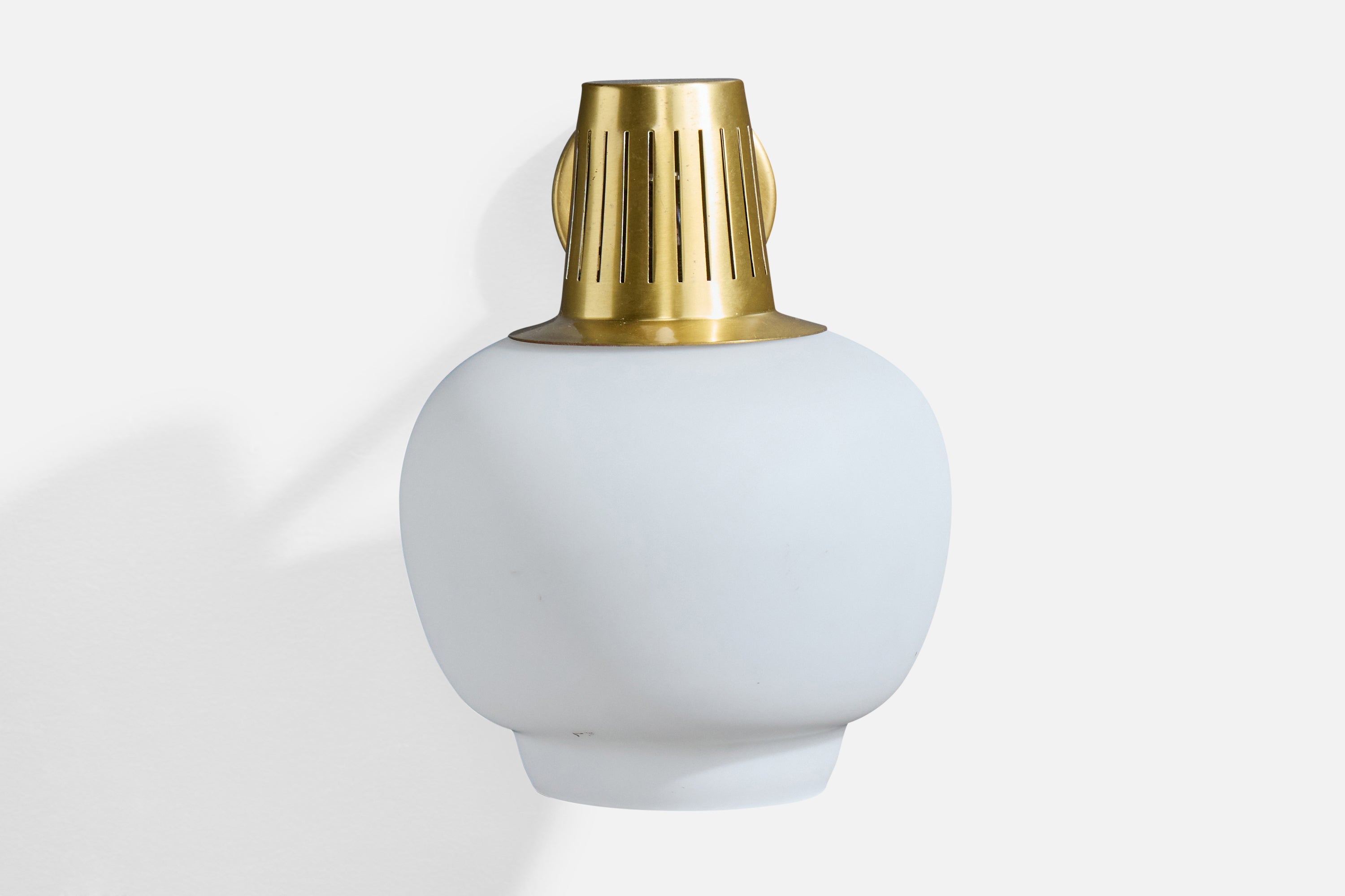 A brass and white opaline glass wall light designed by Hans Bergström and produced by Ateljé Lyktan, Åhus, Sweden, c. 1950s.