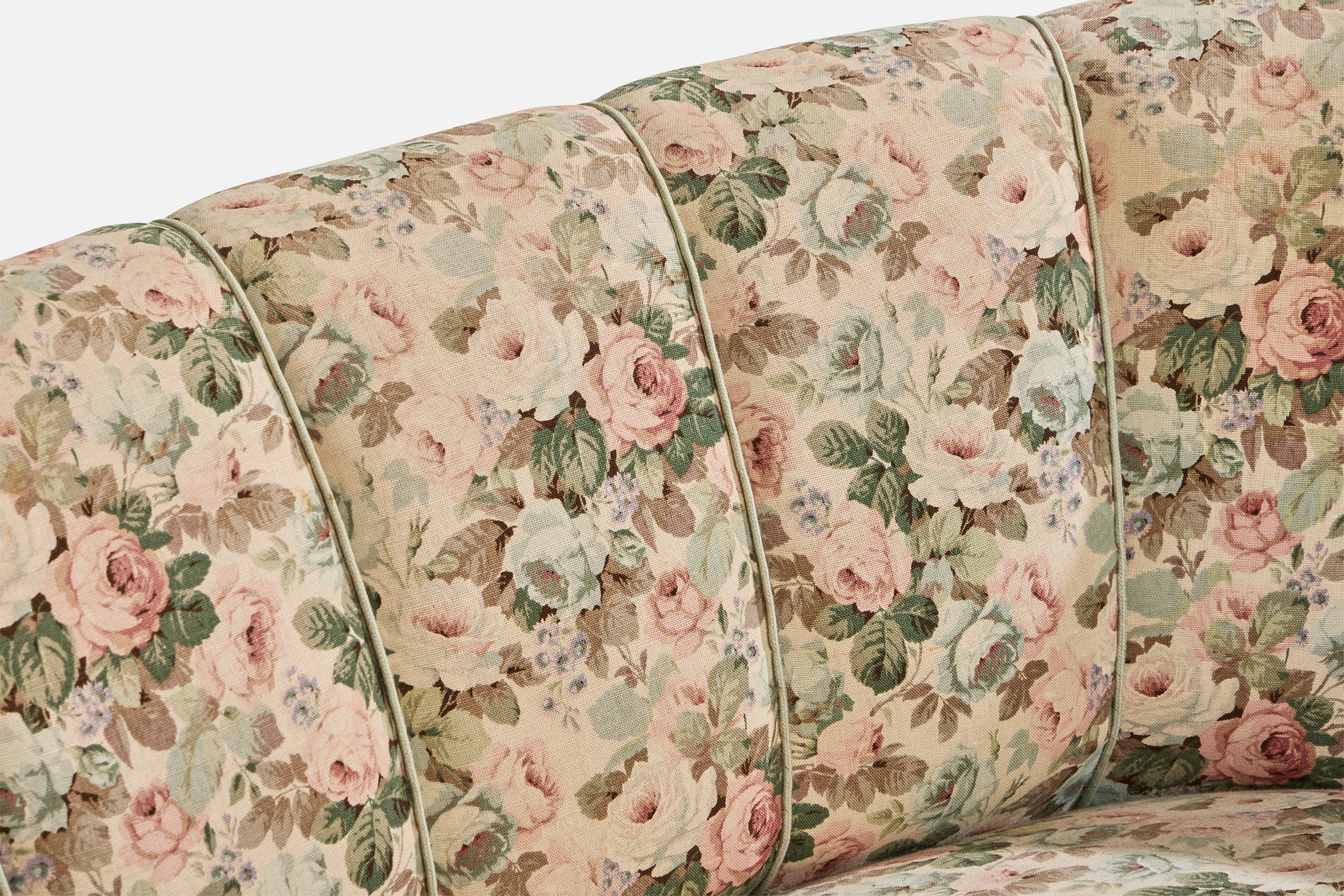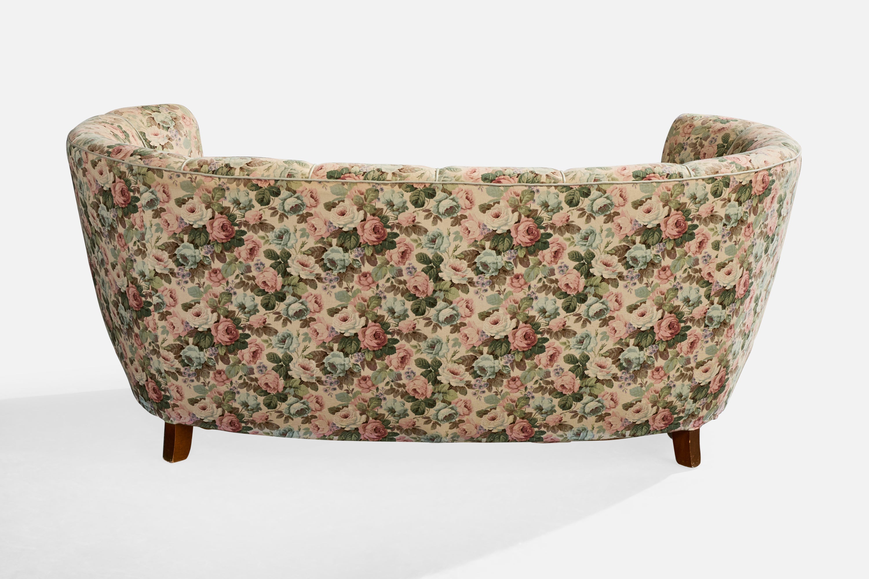 A wood and floral-printed fabric sofa designed and produced in Denmark, c. 1940s.