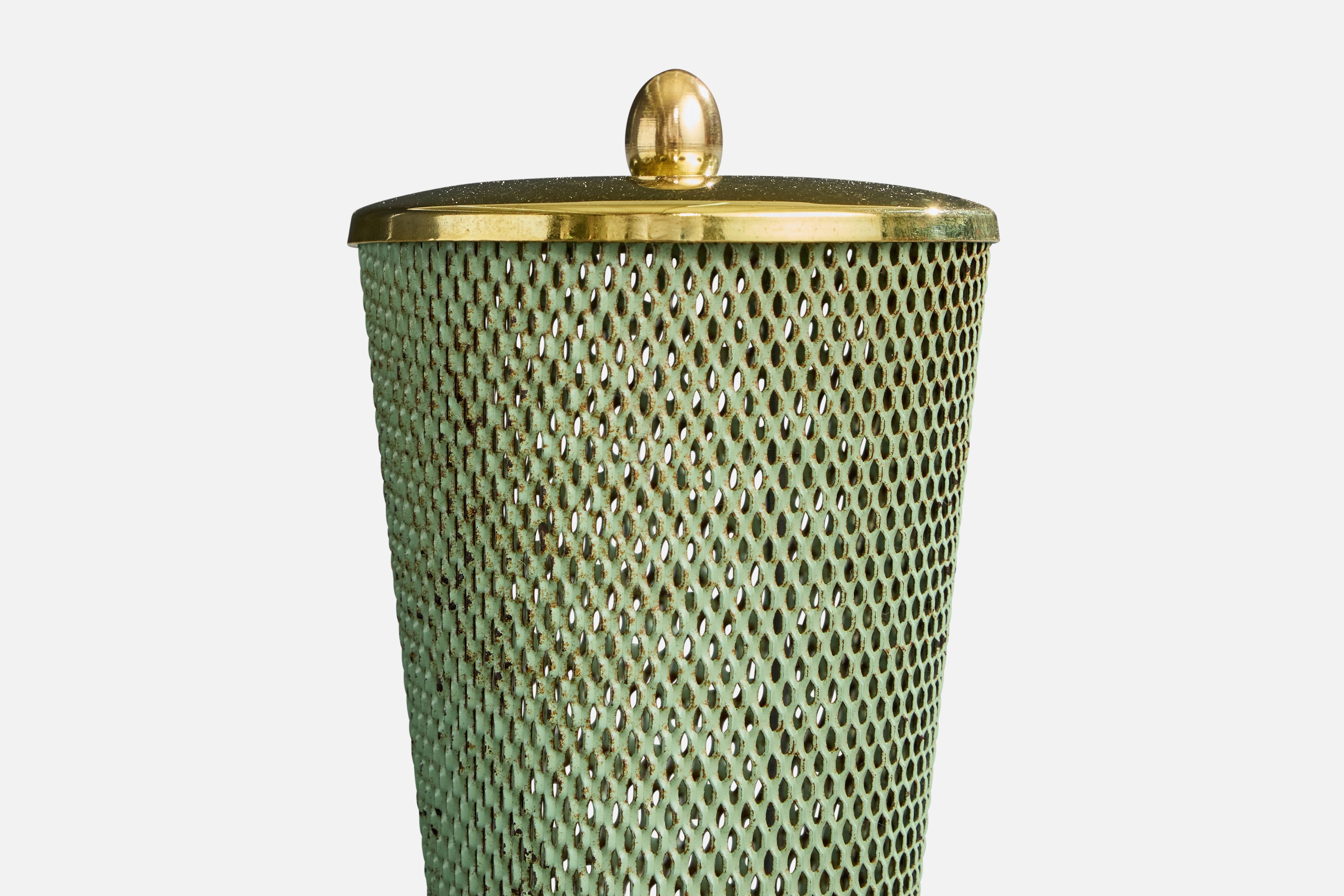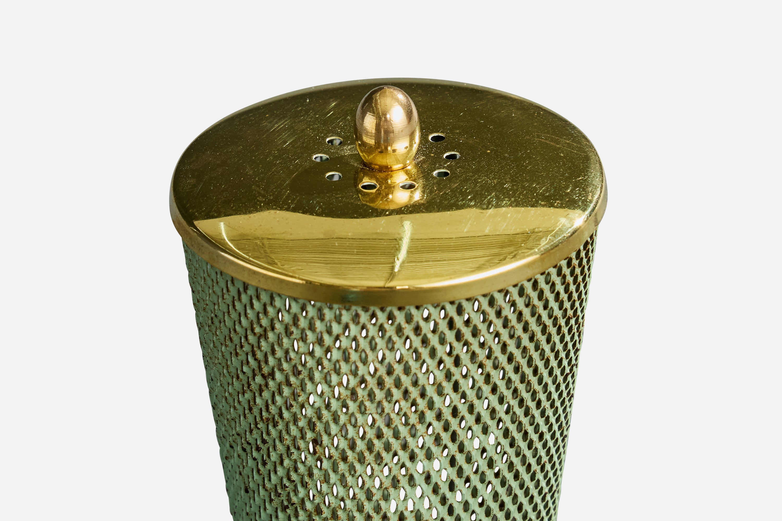 A pair of brass and green-lacquered metal table lamps likely designed and produced in Germany, c. 1950s.