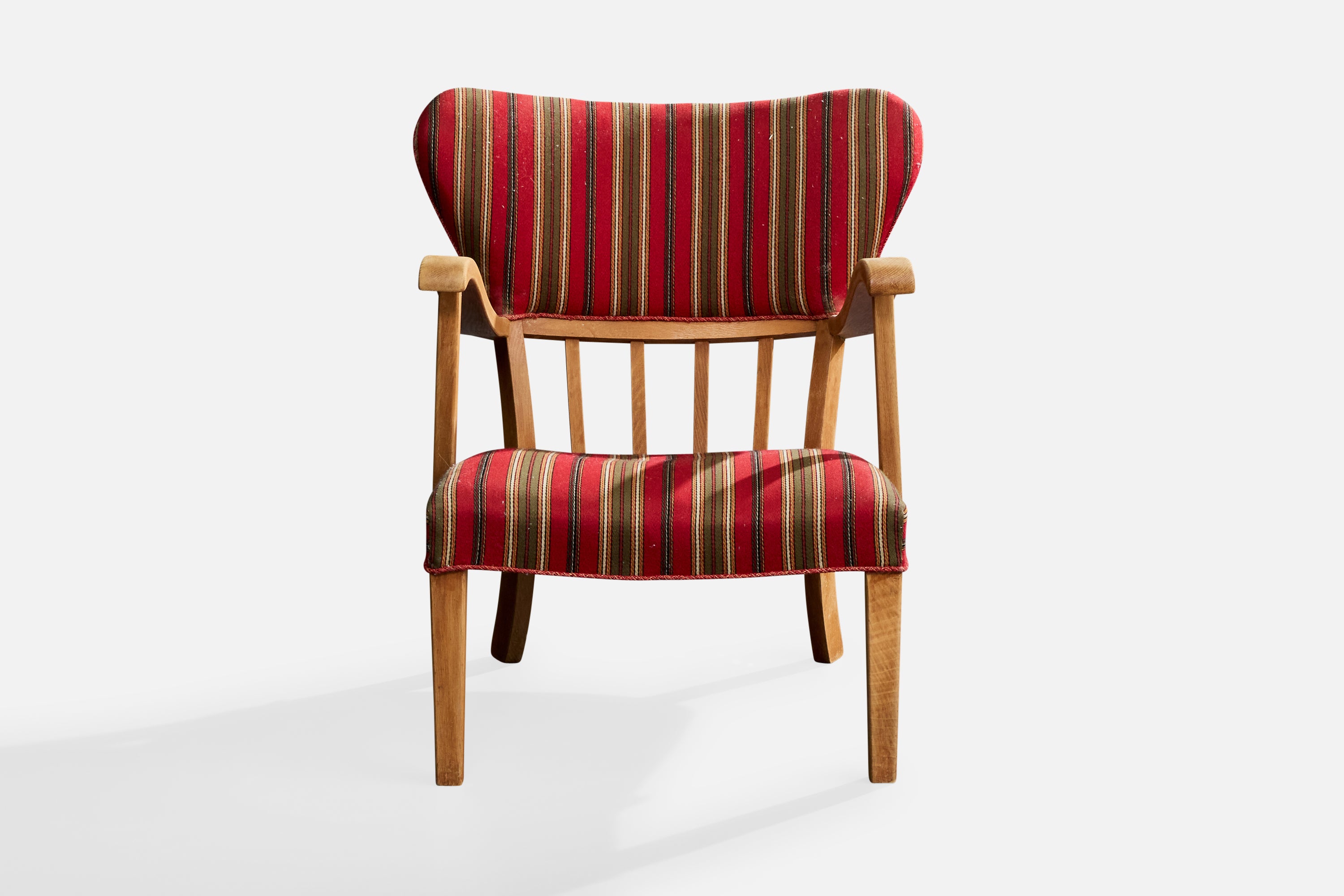 Danish Designer, Lounge Chair, Oak, Fabric, Denmark, 1940s