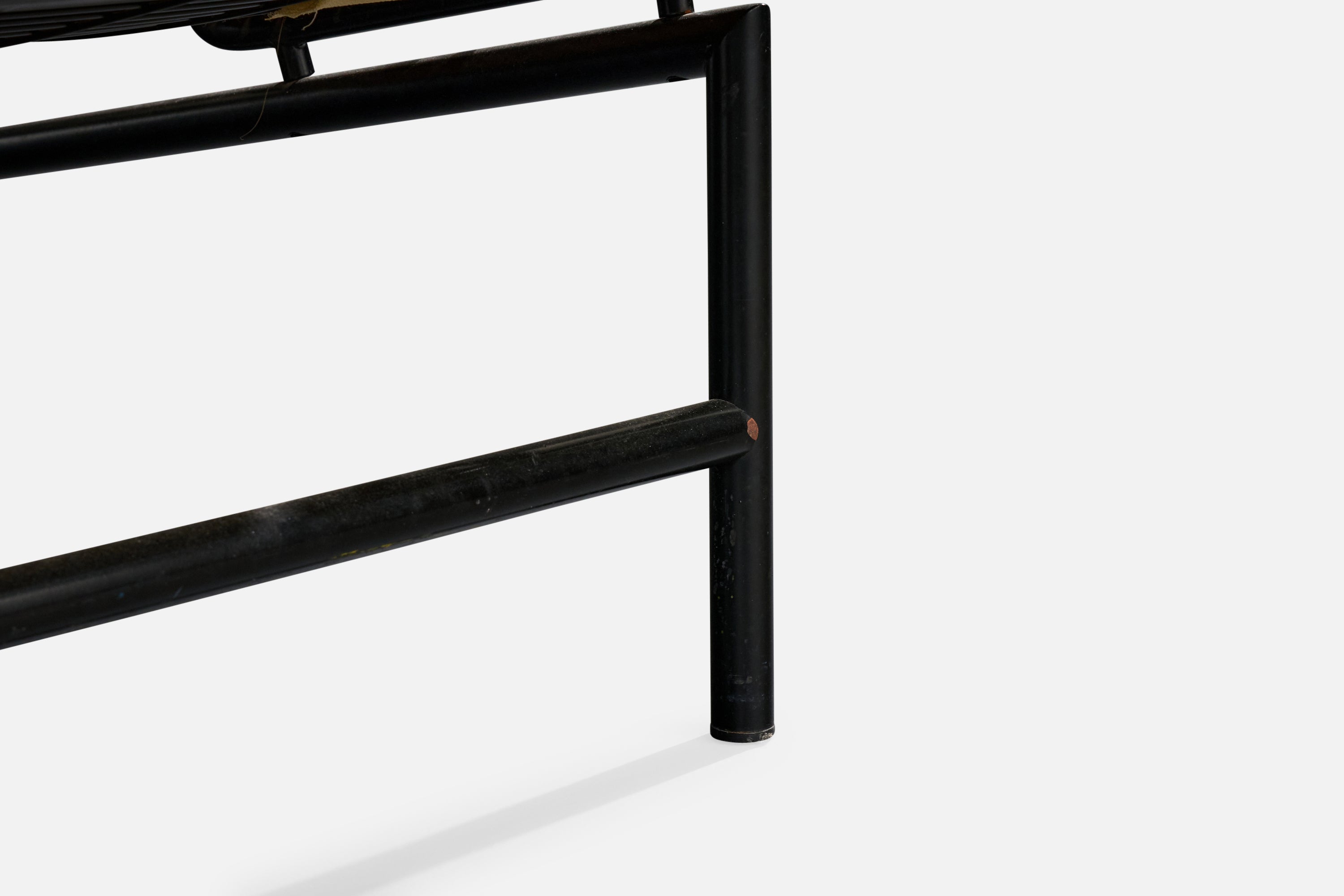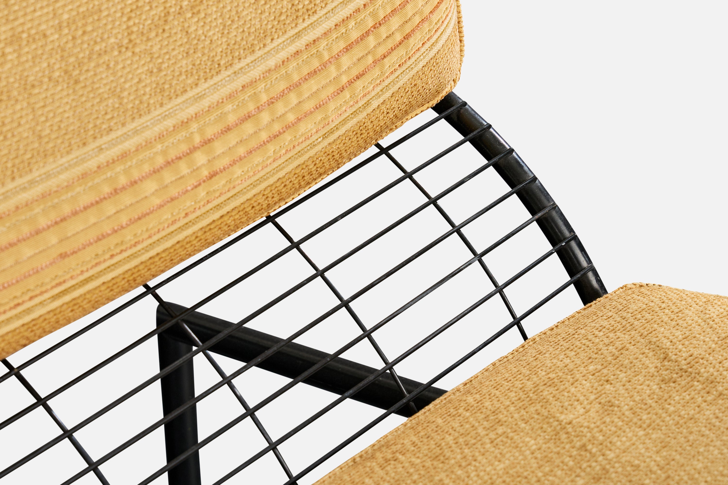 A pair of black-lacquered metal and yellow fabric lounge chairs or slipper chairs designed and produced in Italy, c. 1960s.