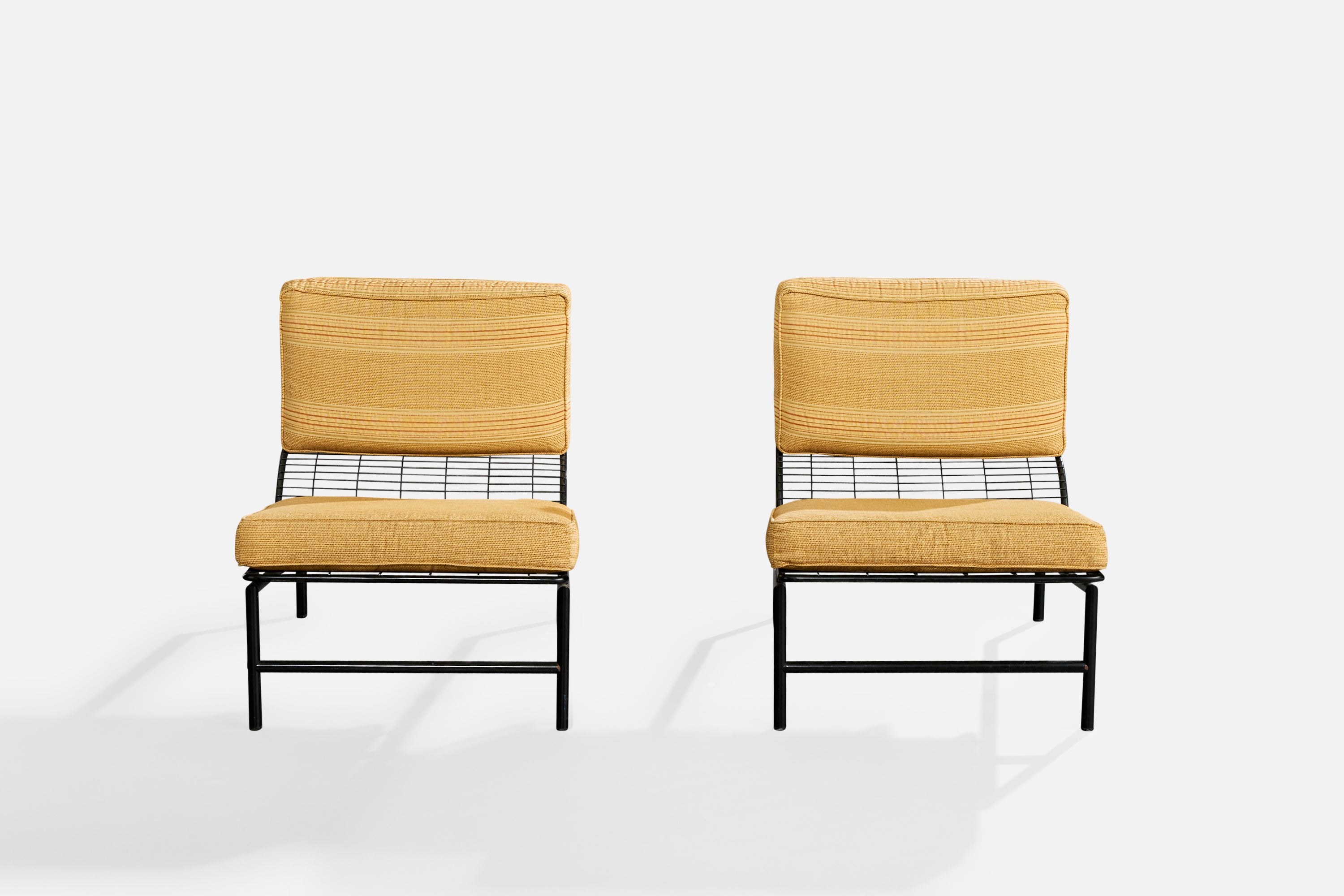 Italian Designer, Lounge Chairs, Metal, Fabric, Italy, 1960s