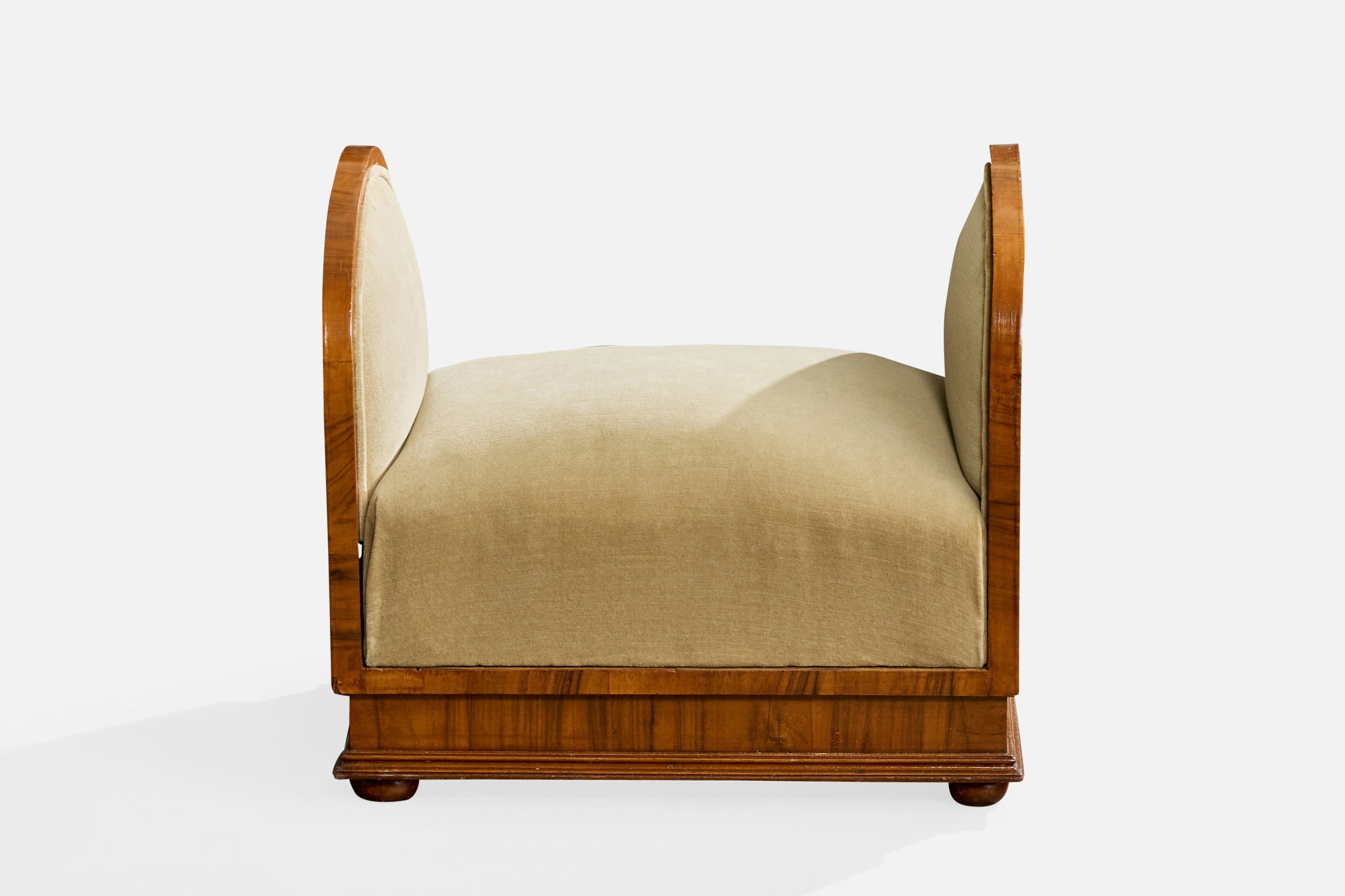 Italian Designer, Stools, Walnut, Fabric, Italy, 1930s