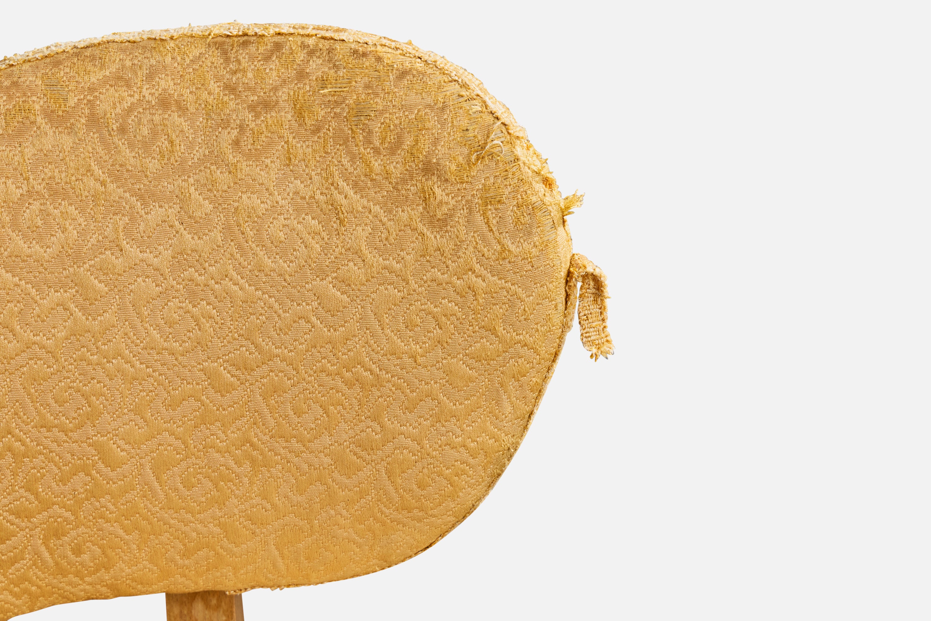 A wood and yellow fabric side chair or vanity table chair designed and produced in Denmark, c. 1940s.