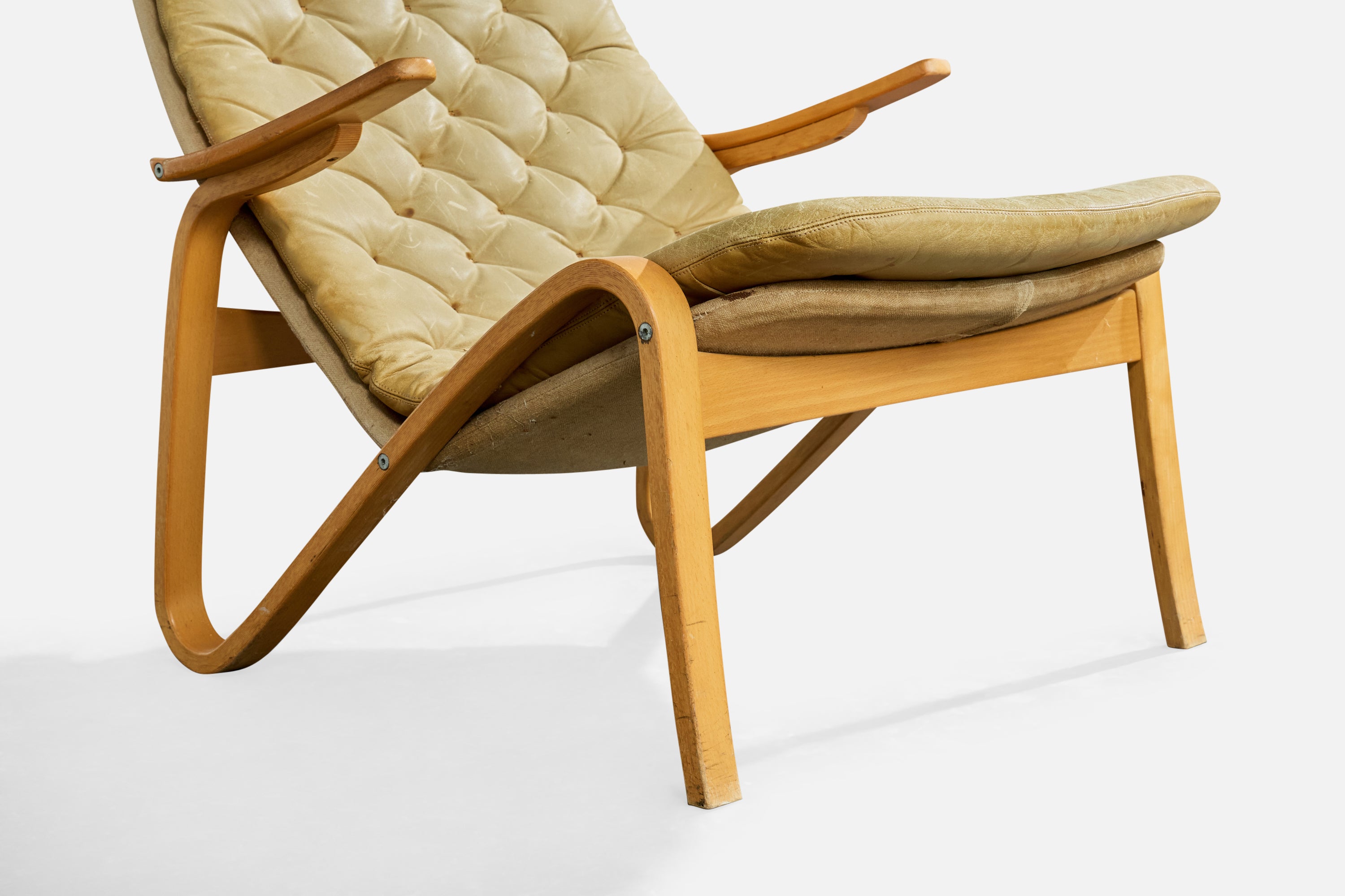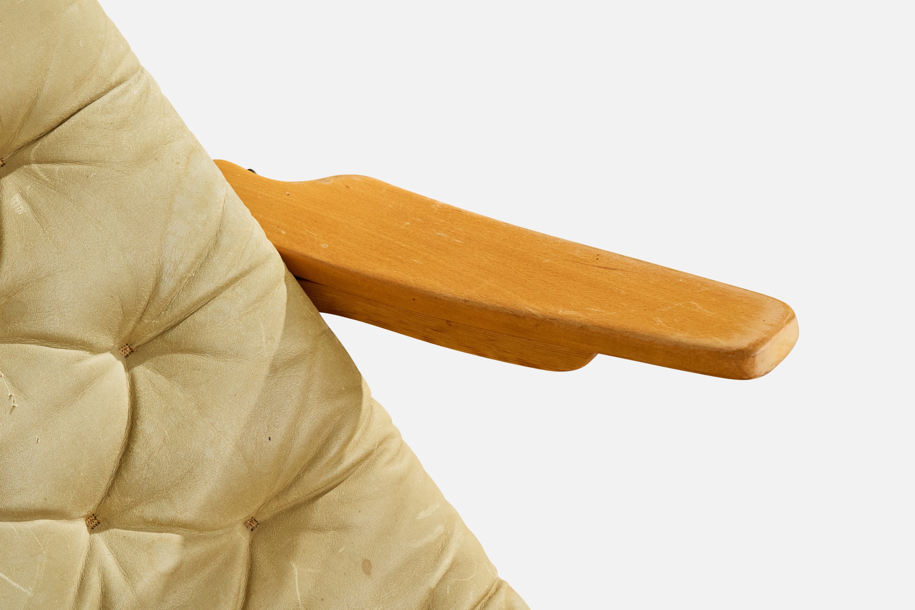 Sam Larsson, Lounge Chair, Wood, Canvas, Leather, Sweden, 1970s