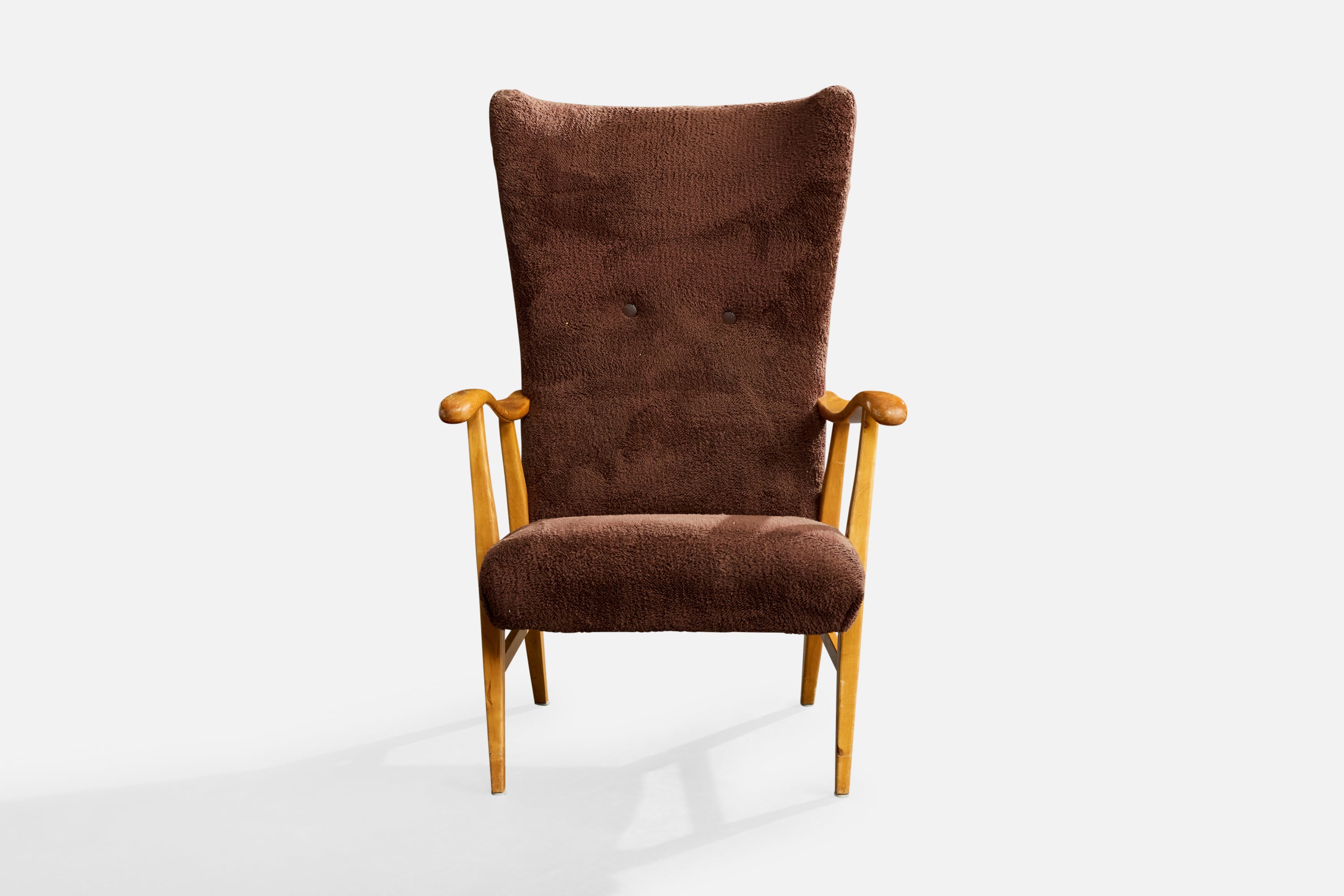 Elias Svedberg, Lounge Chair, Birch, Fabric, Sweden, 1940s