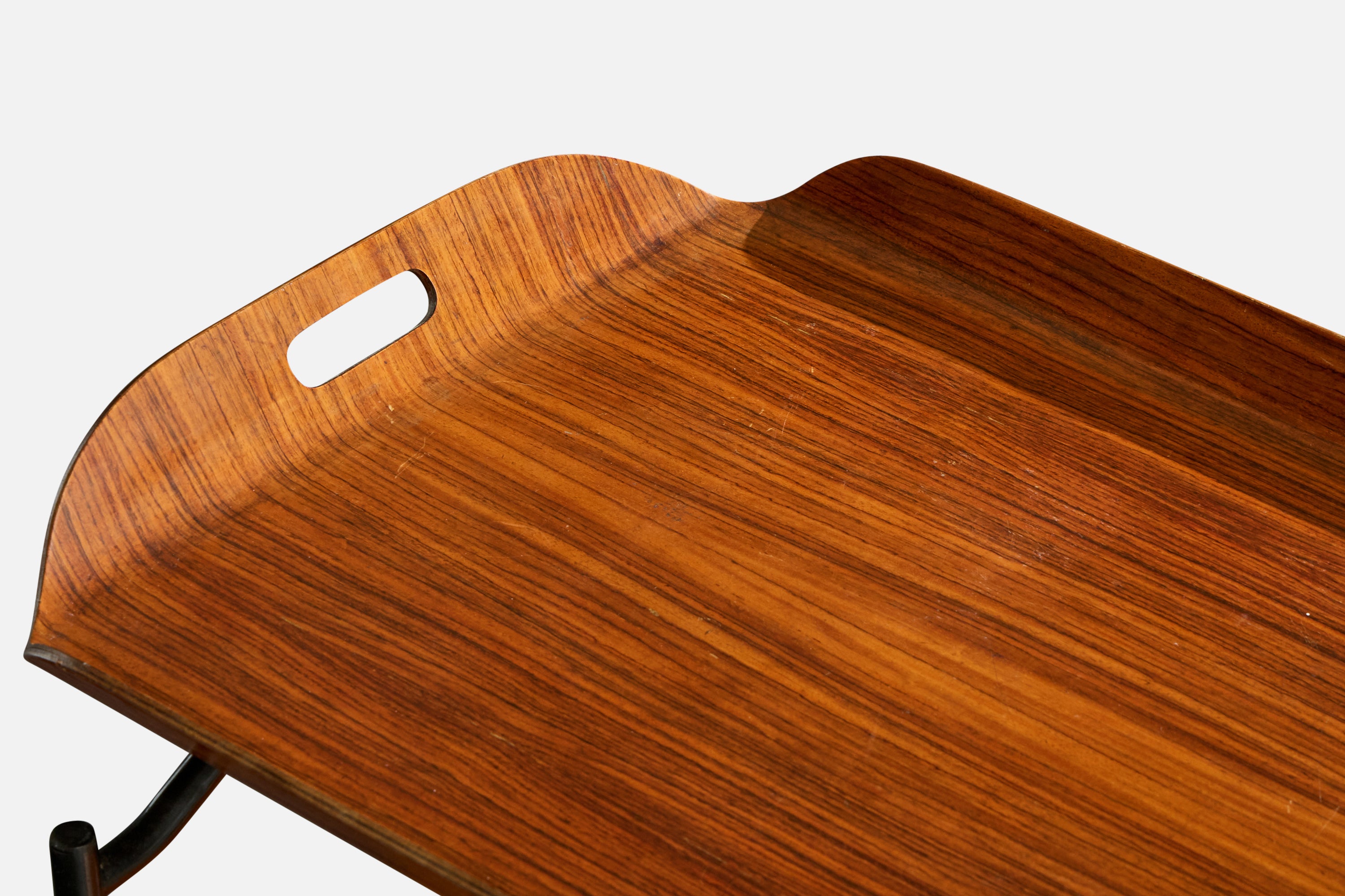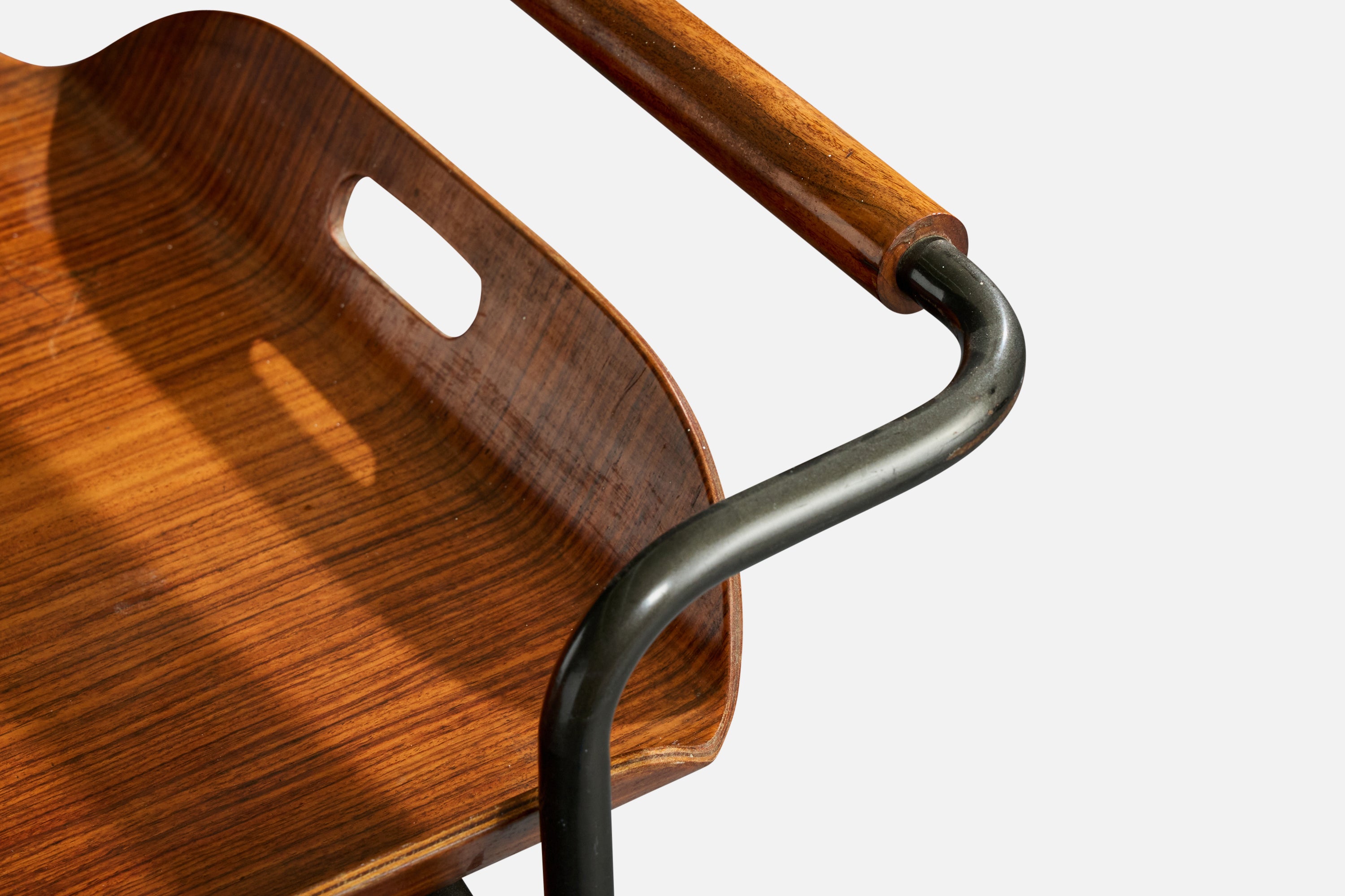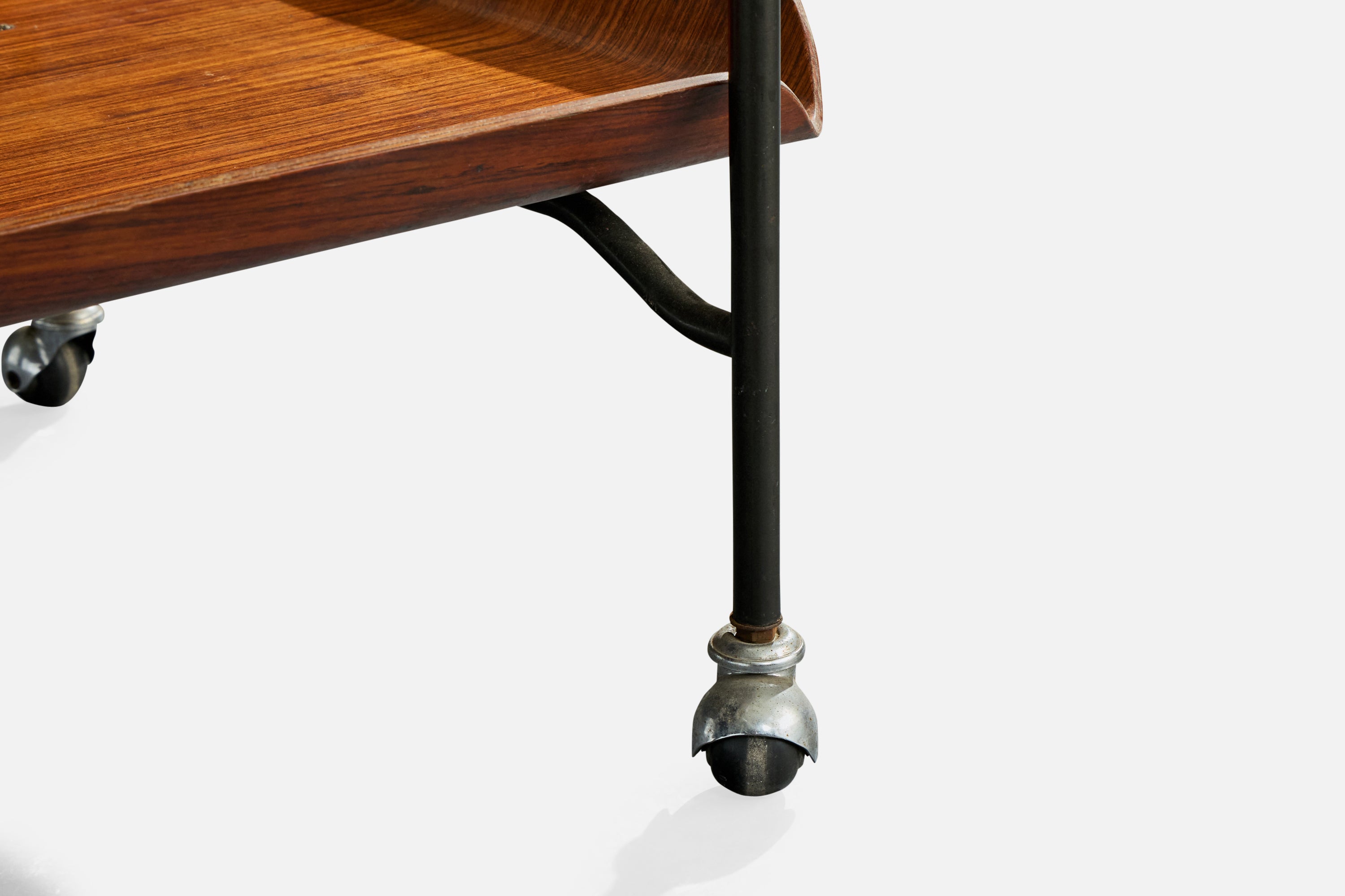 A teak and black-lacquered metal serving cart or bar cart designed and produced in Italy, c. 1950s.